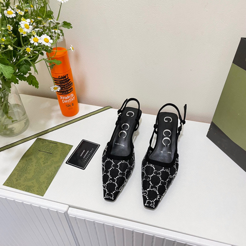 2022G 패밀리 봄과 여름 조커 새로운 핫 라인 석 고양이 힐 빈 샌들 여성용 메쉬 Baotou 미들 힐 샌들