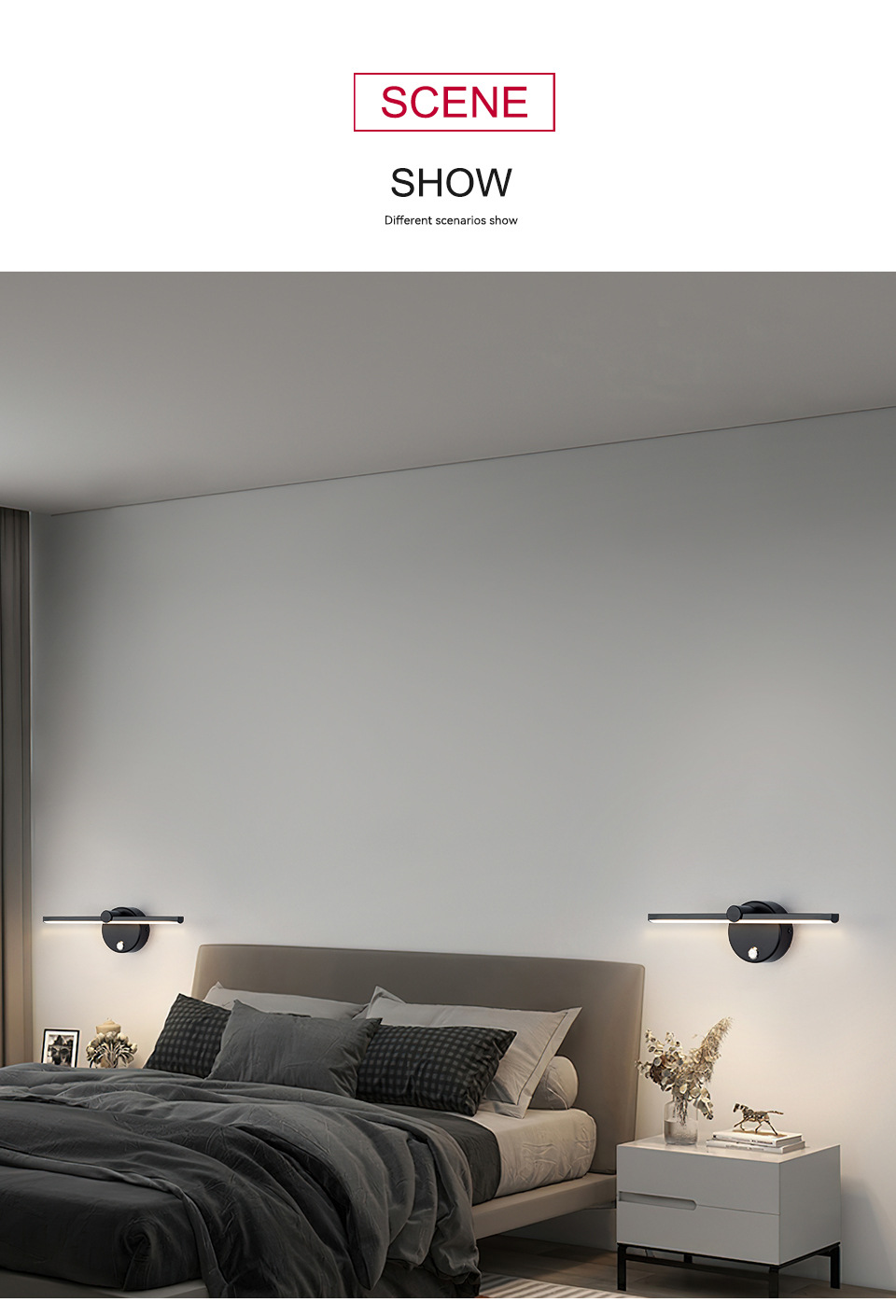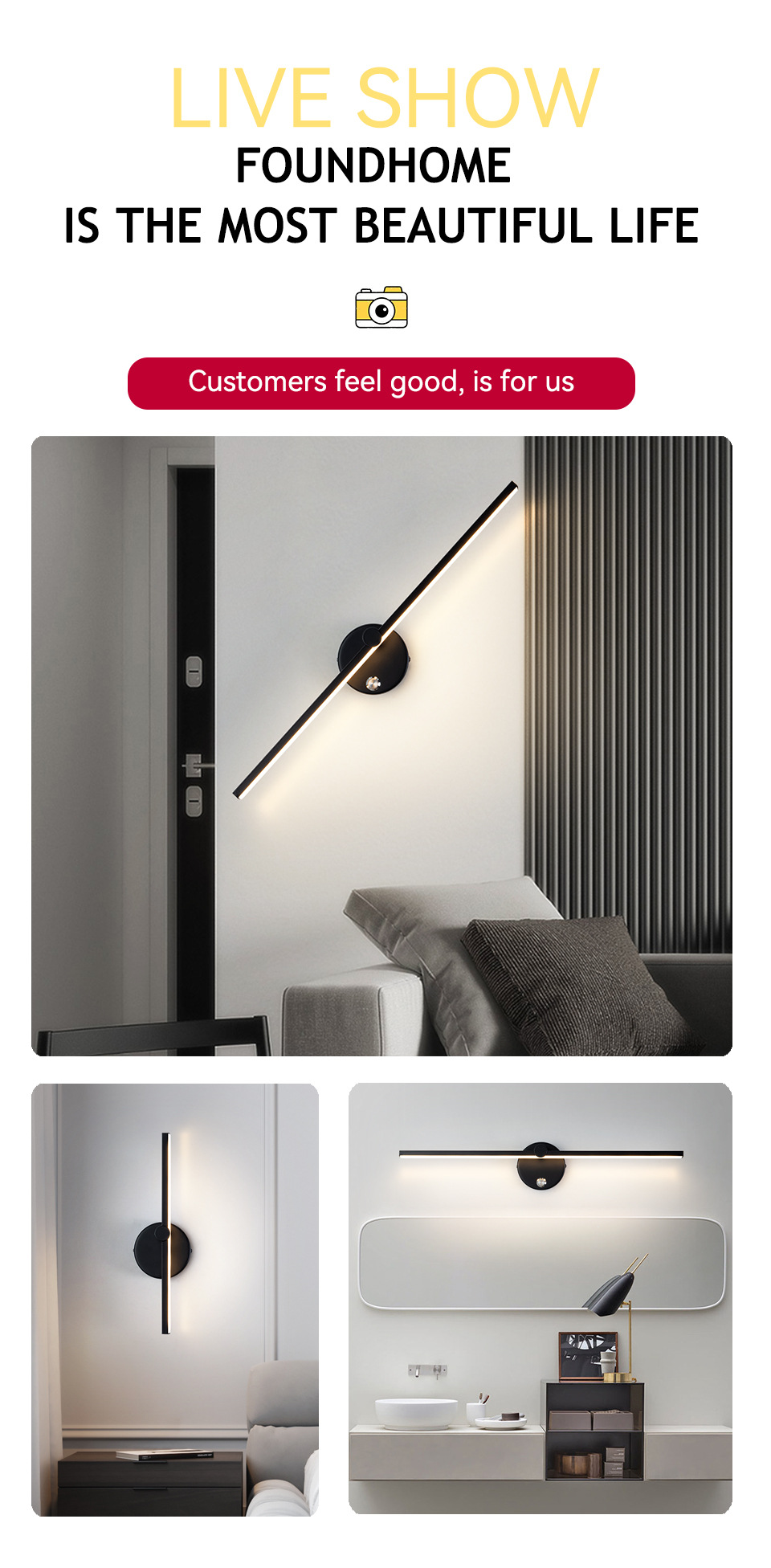 현대 미니멀 한 연구 침실 침대 옆 램프 거울 헤드 라이트 거실 배경 벽 분위기 조명 LED 미니멀 스트립 벽 램프스토어 가기