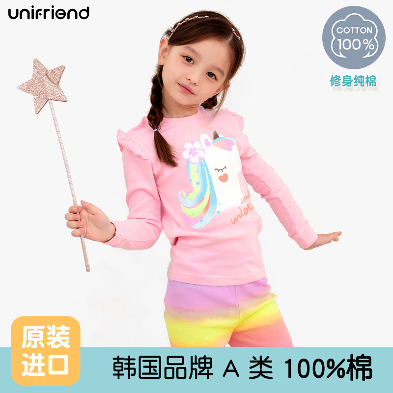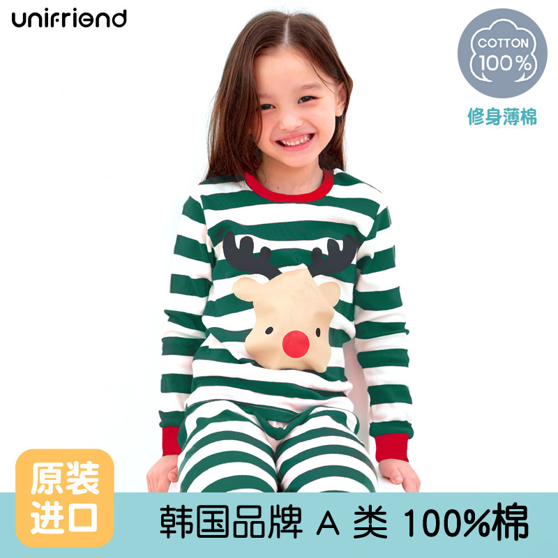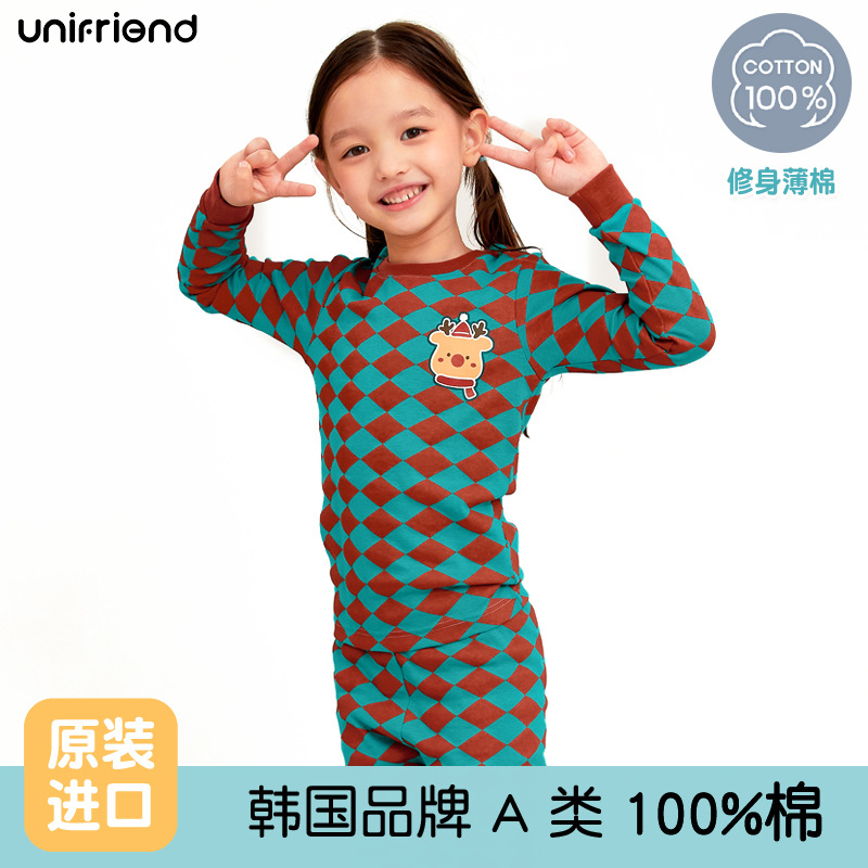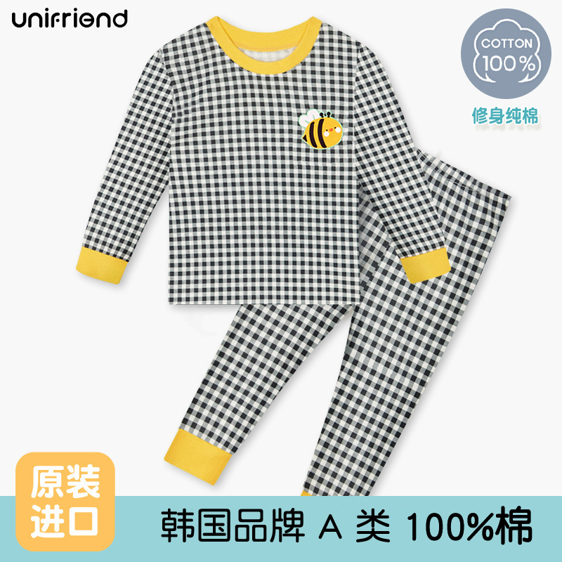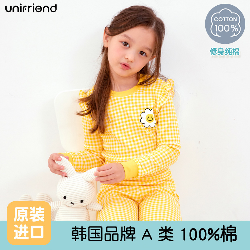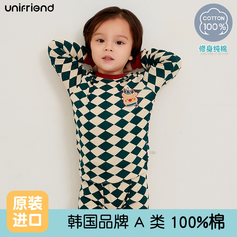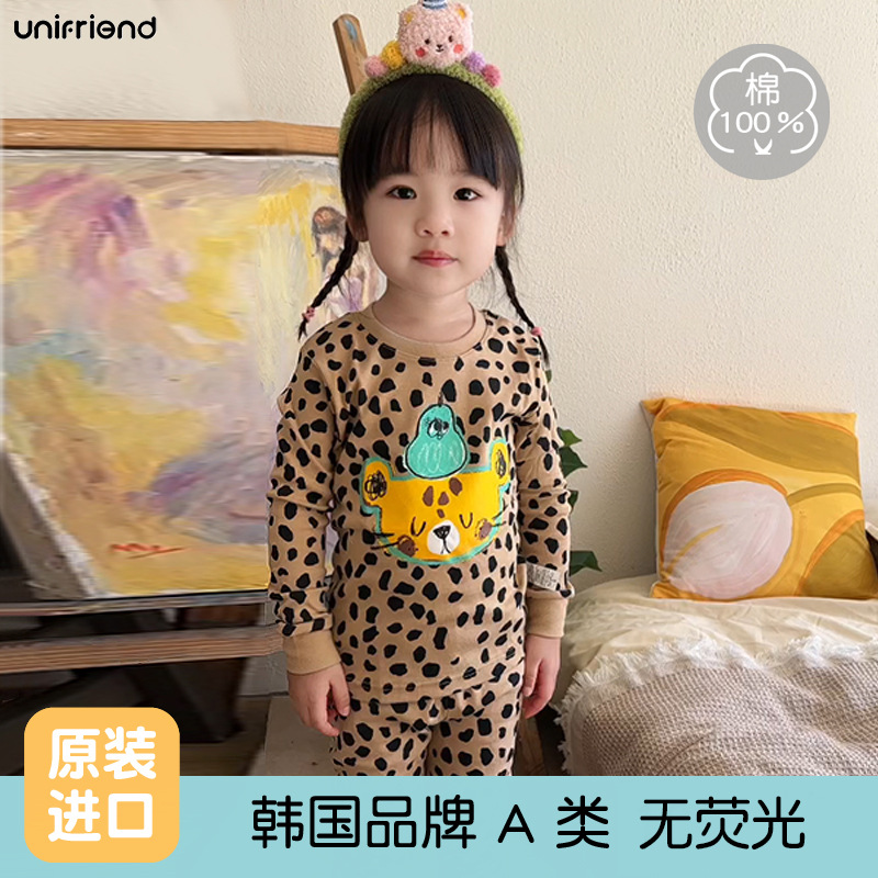 유니프렌드 한국 아동용 가을옷 바지 세트 홈웨어 세트 남녀 아기용 A급 100% 순면