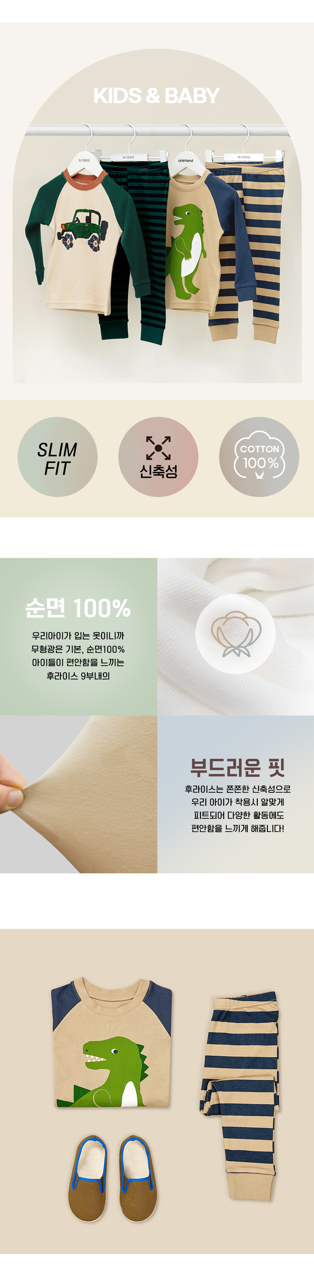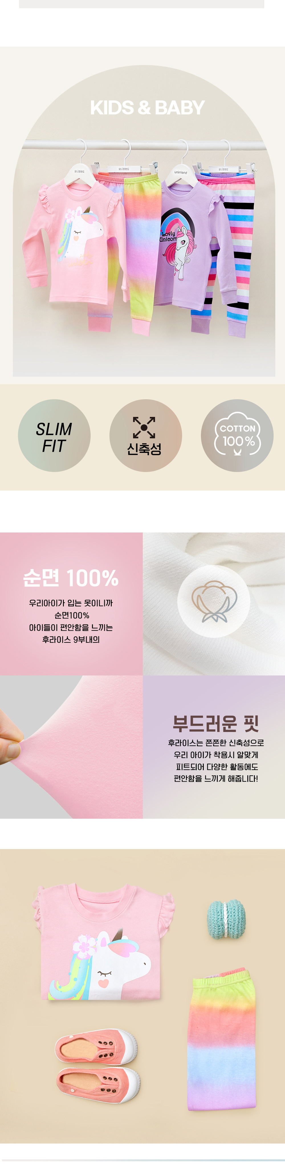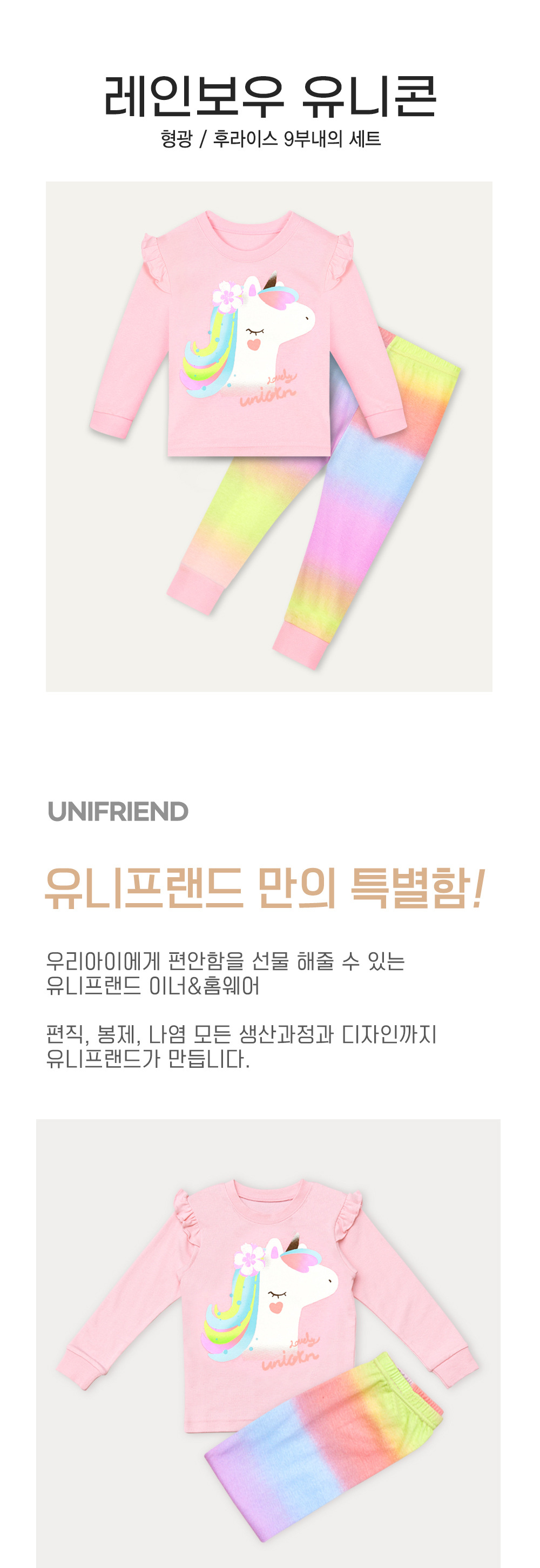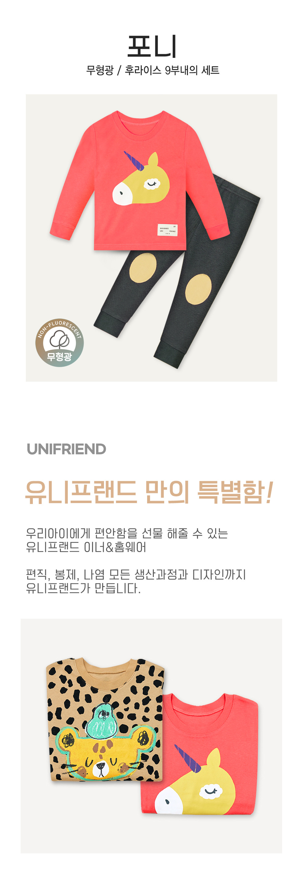 유니프렌드 한국 아동용 가을옷 바지 세트 홈웨어 세트 남녀 아기용 A급 100% 순면
