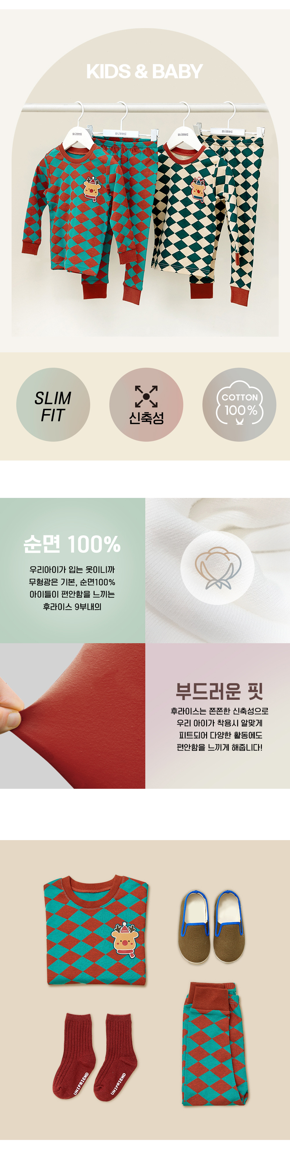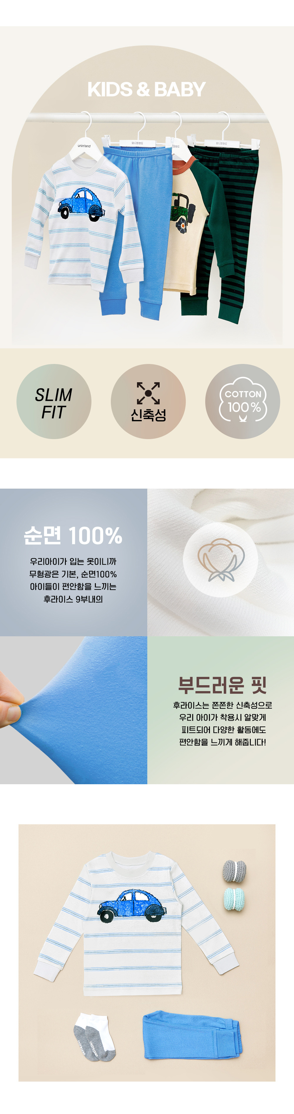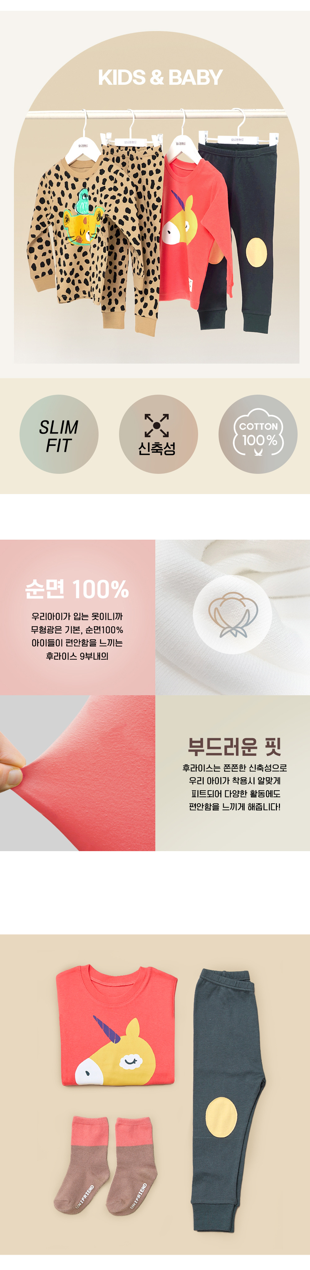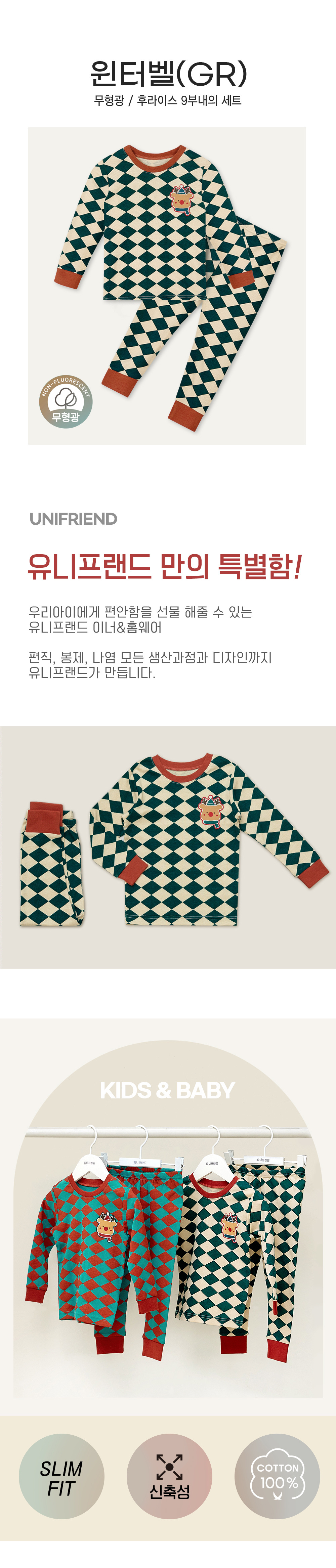 유니프렌드 한국 아동용 가을옷 바지 세트 홈웨어 세트 남녀 아기용 A급 100% 순면