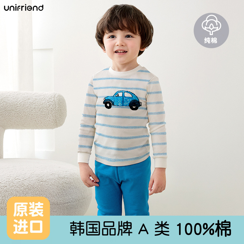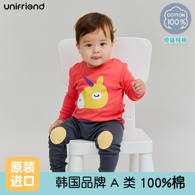 유니프렌드 한국 아동용 가을옷 바지 세트 홈웨어 세트 남녀 아기용 A급 100% 순면스토어 가기