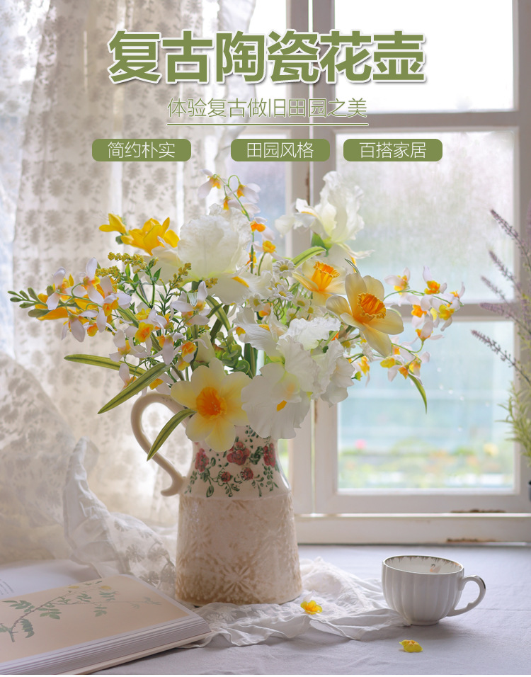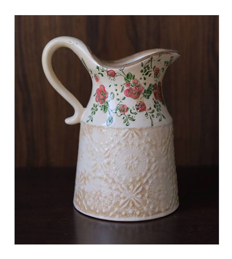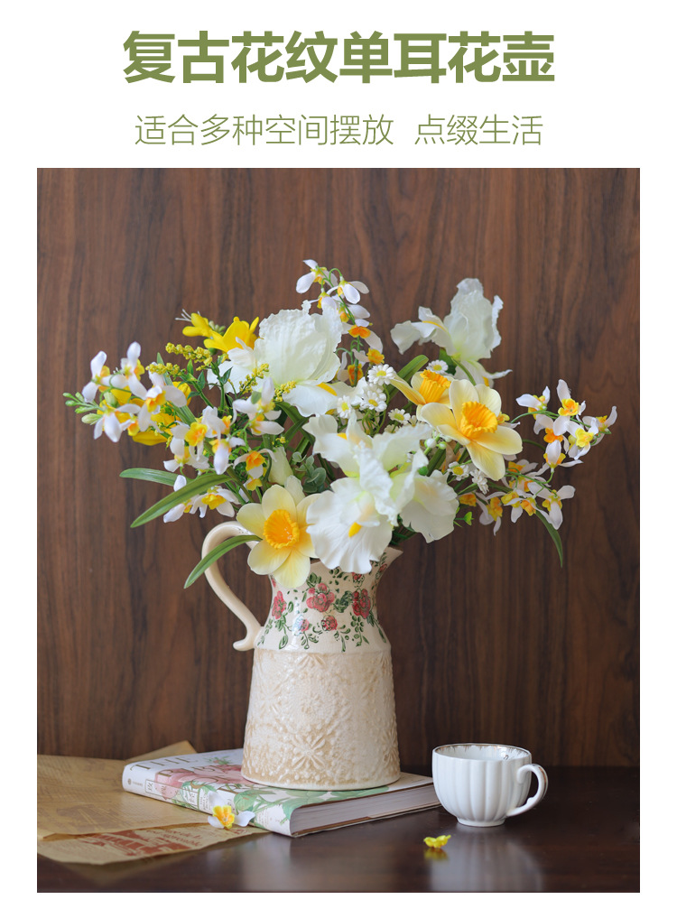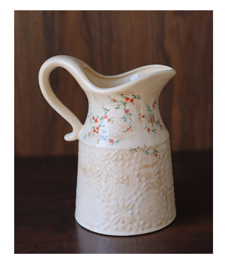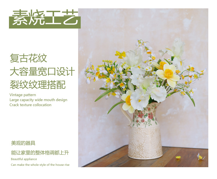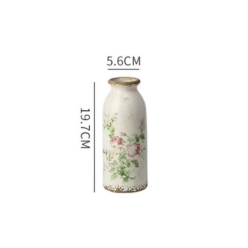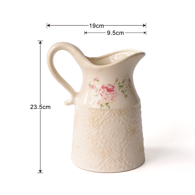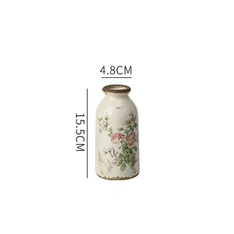 빈티지 꽃병 세라믹 단일 귀 꽃병 창조적 인 화분 오래 된 얼음 균열 유약 데칼 공예 홈 장식 꽃꽂이