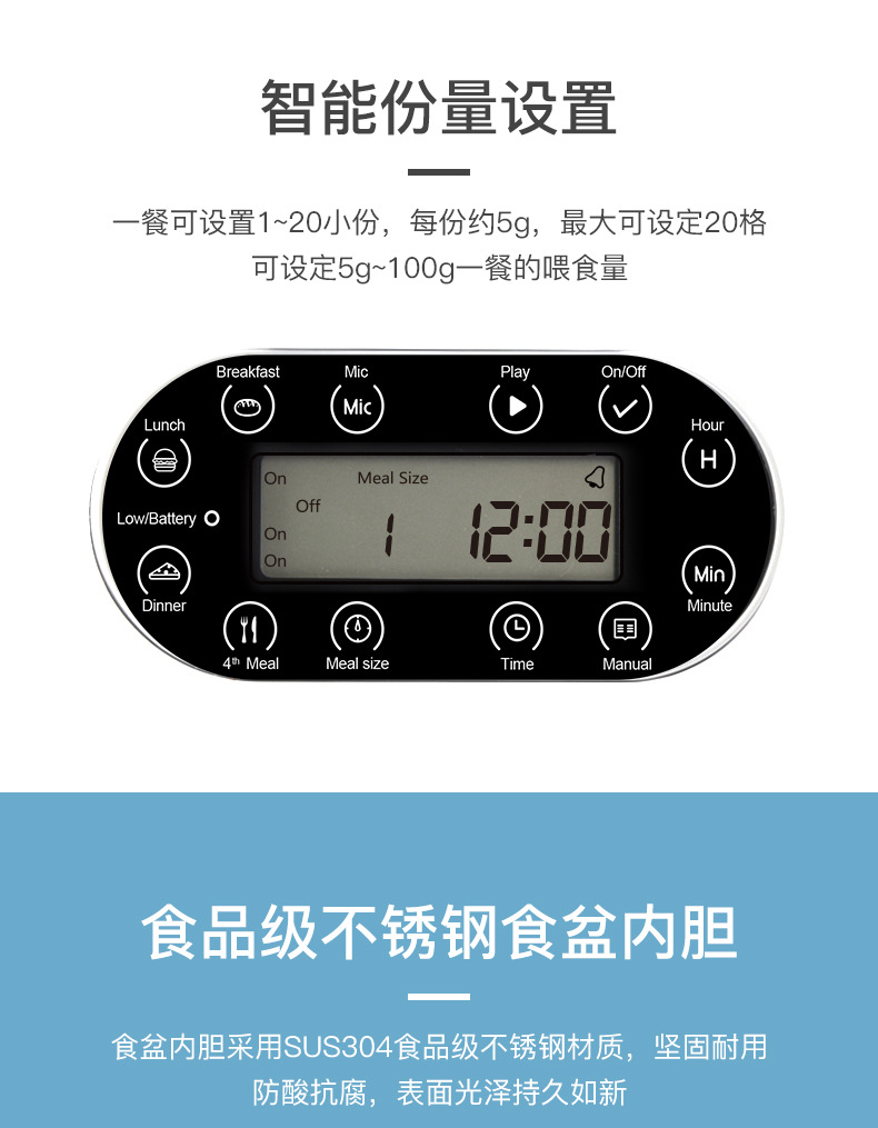 아마존 인기 스마트 애완동물 급식기 고양이 강아지 급식기 타이머 설정 및 음성 급식 기능이 있는 스마트 급식기