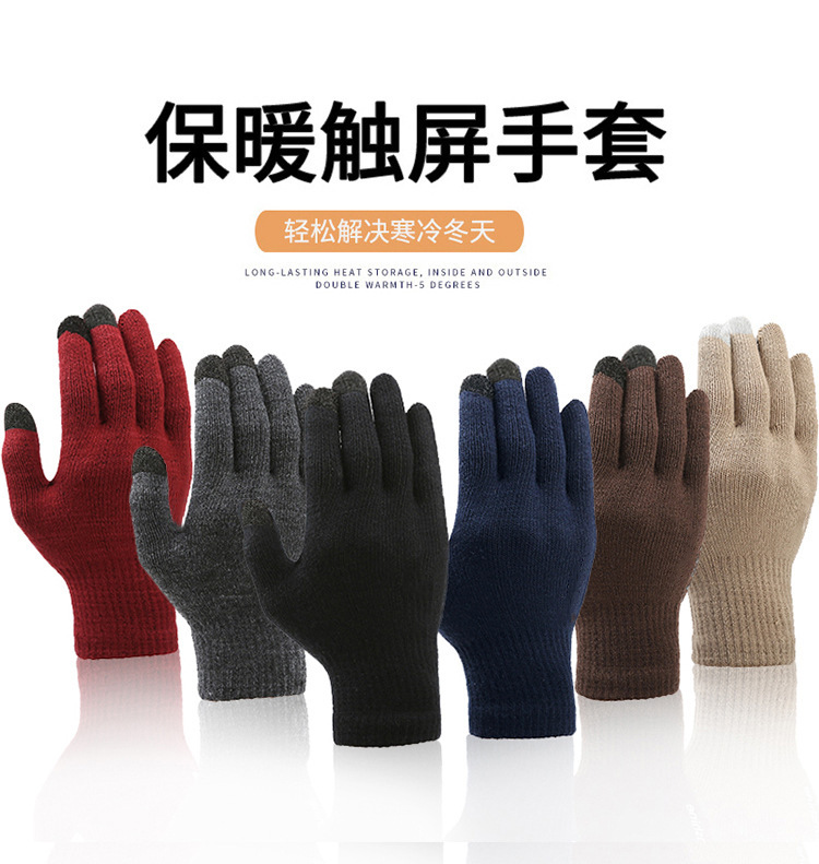 크로스 보더 니트 울 장갑 남성용 가을과 겨울 따뜻한 방한 운전 터치 스크린 손가락 미끄럼 방지 고무 손목 장갑
