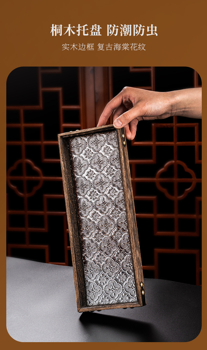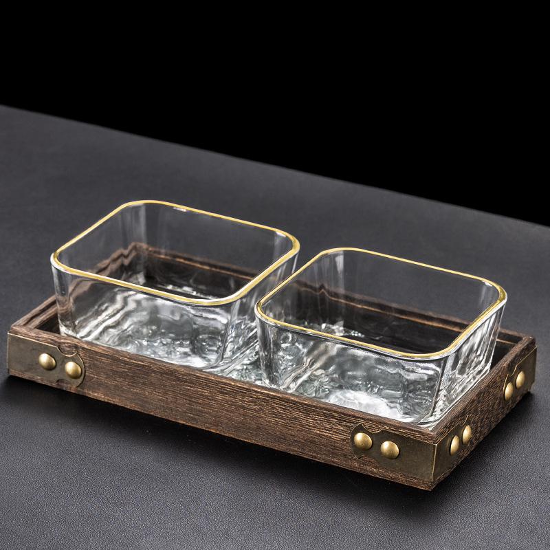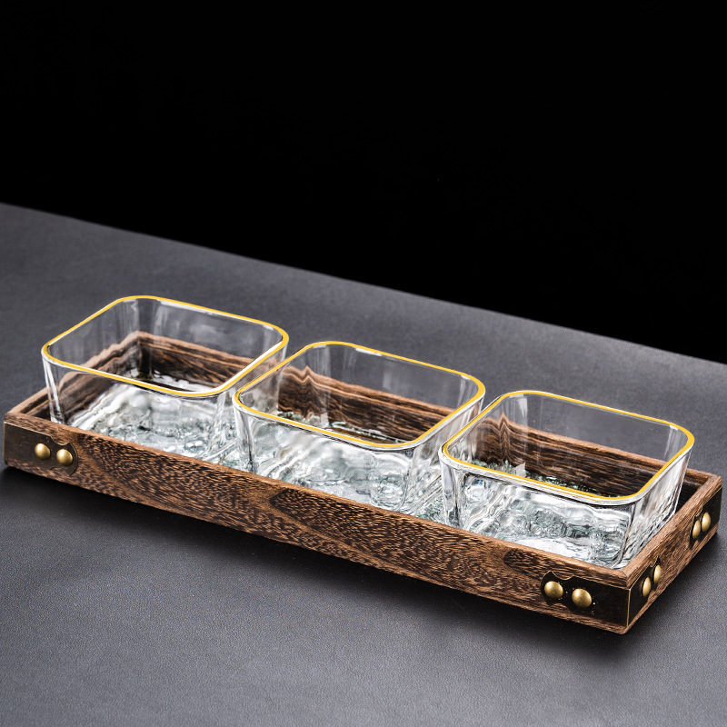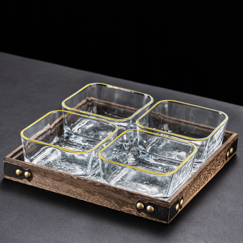 • 황금 가장자리 사각 그릇 4 + 4 그리드 오동 트레이
