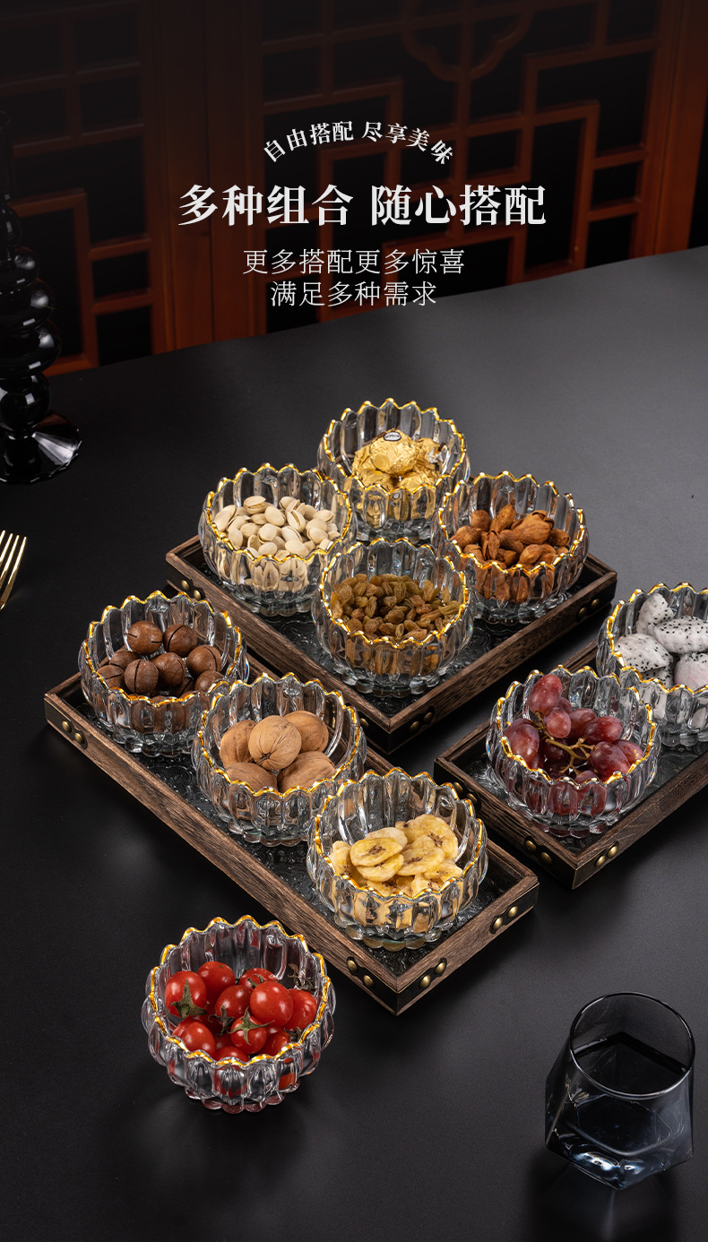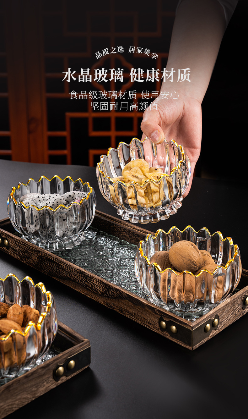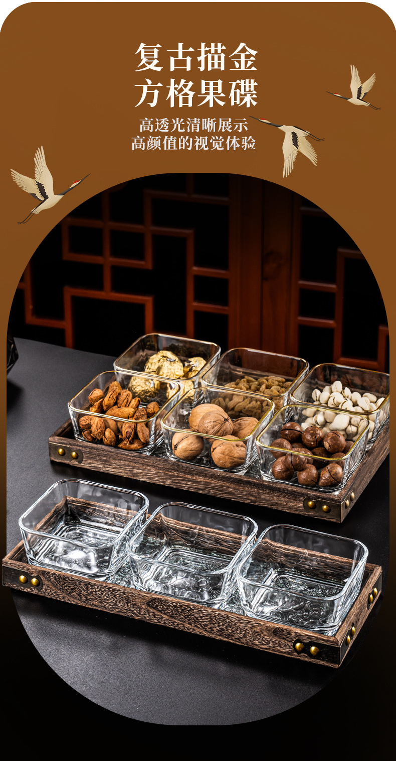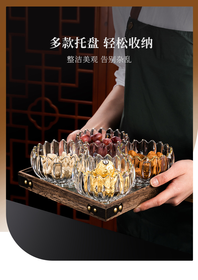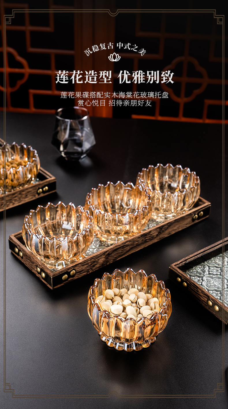 원목 유리 과일 접시, 거실용 가정용 고급 건과일 접시, 스낵/간식/사탕 보관함, 새로운 중국 스타일