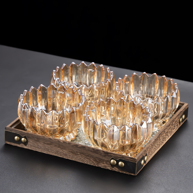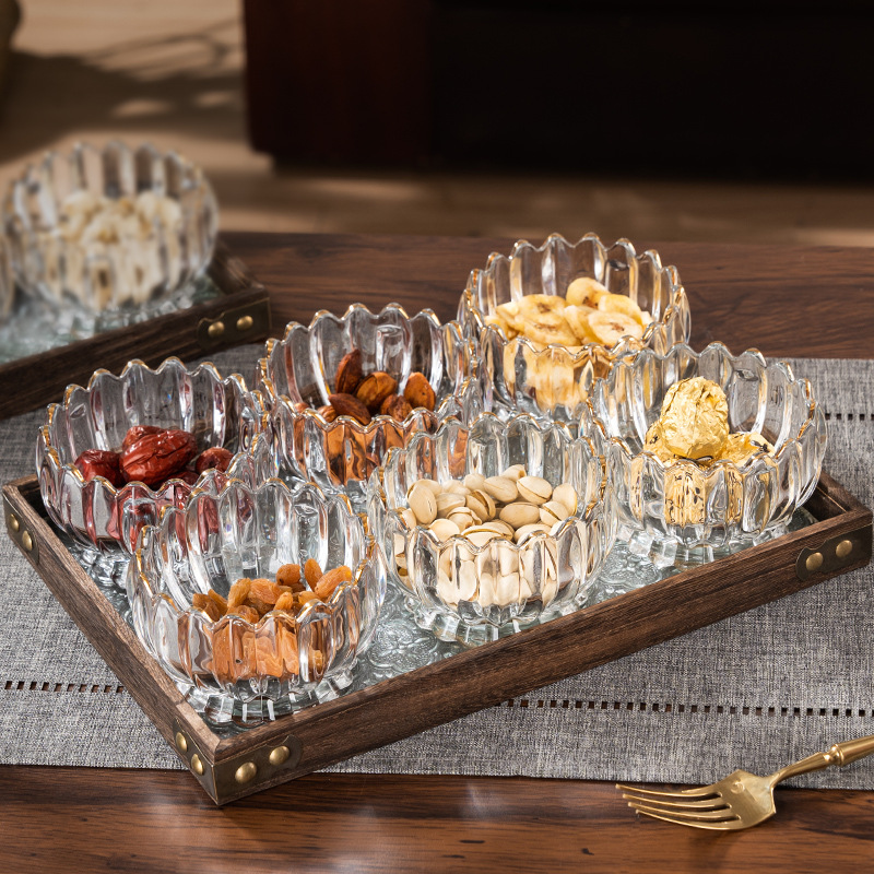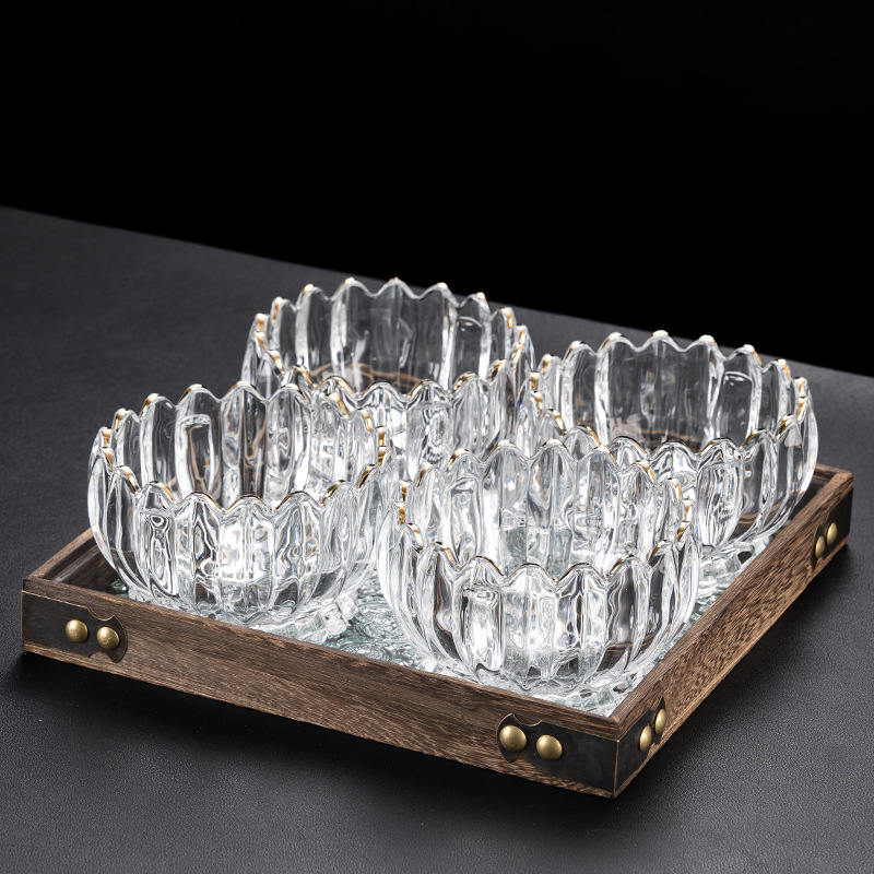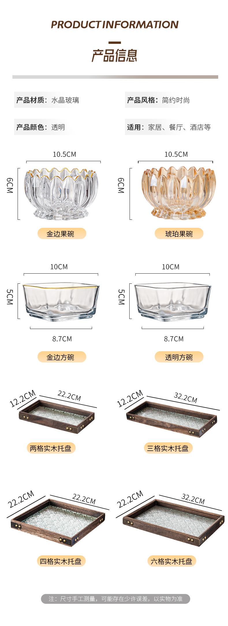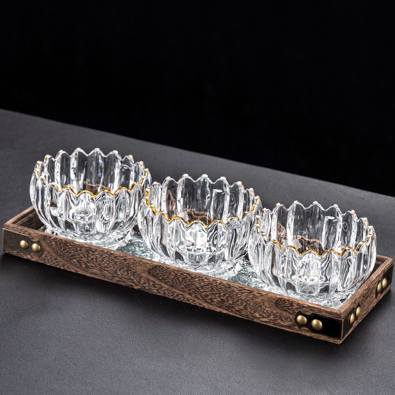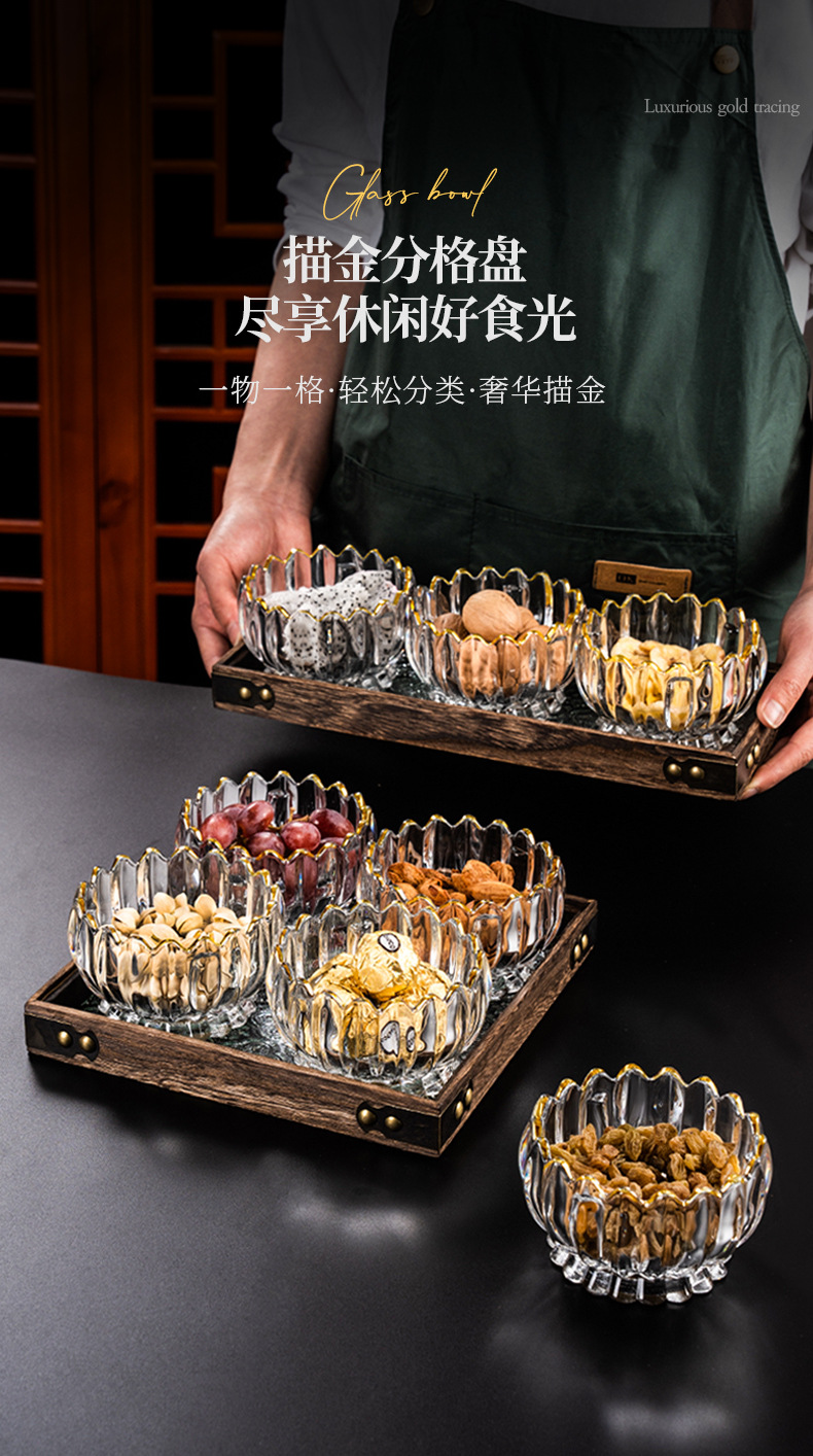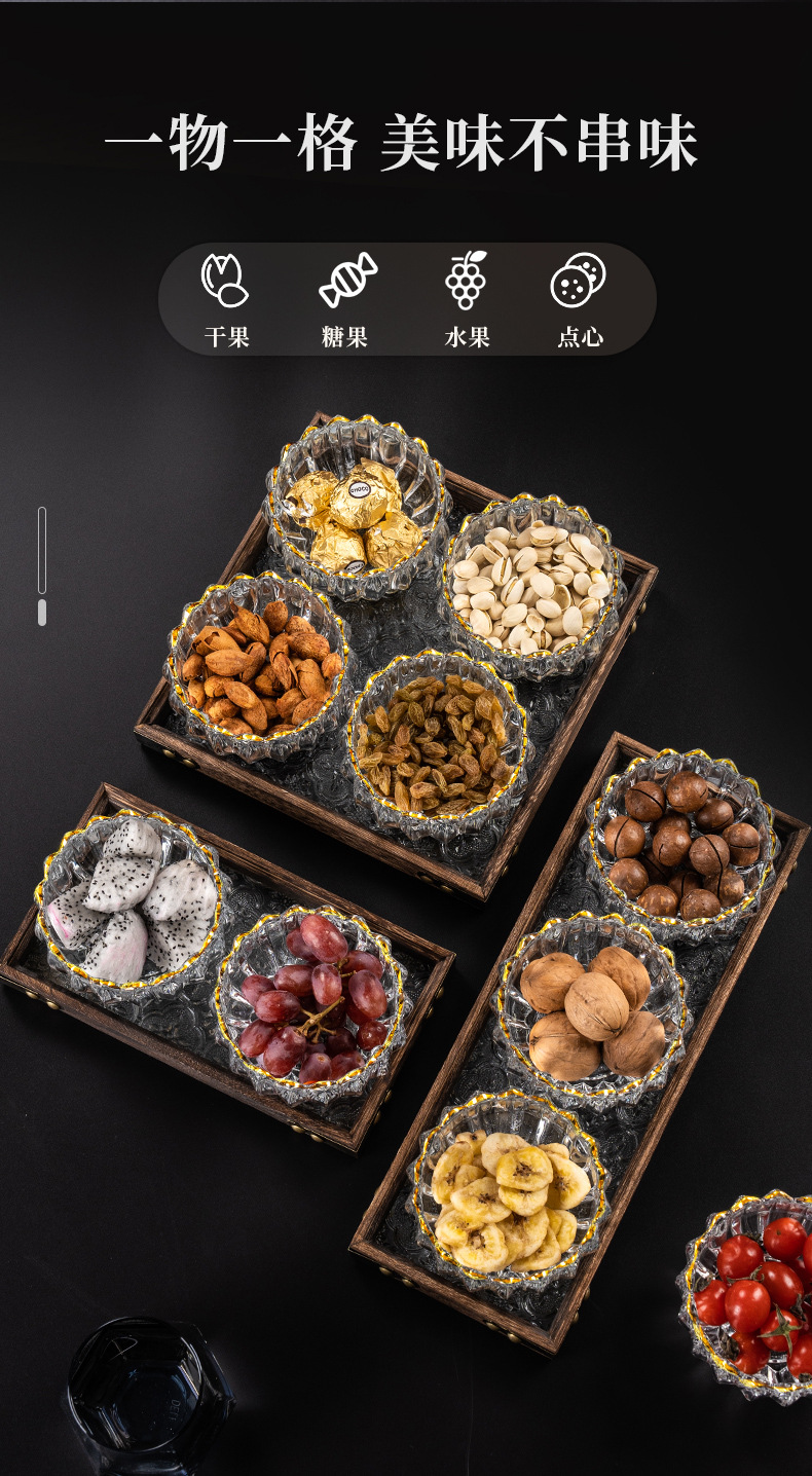 원목 유리 과일 접시, 거실용 가정용 고급 건과일 접시, 스낵/간식/사탕 보관함, 새로운 중국 스타일