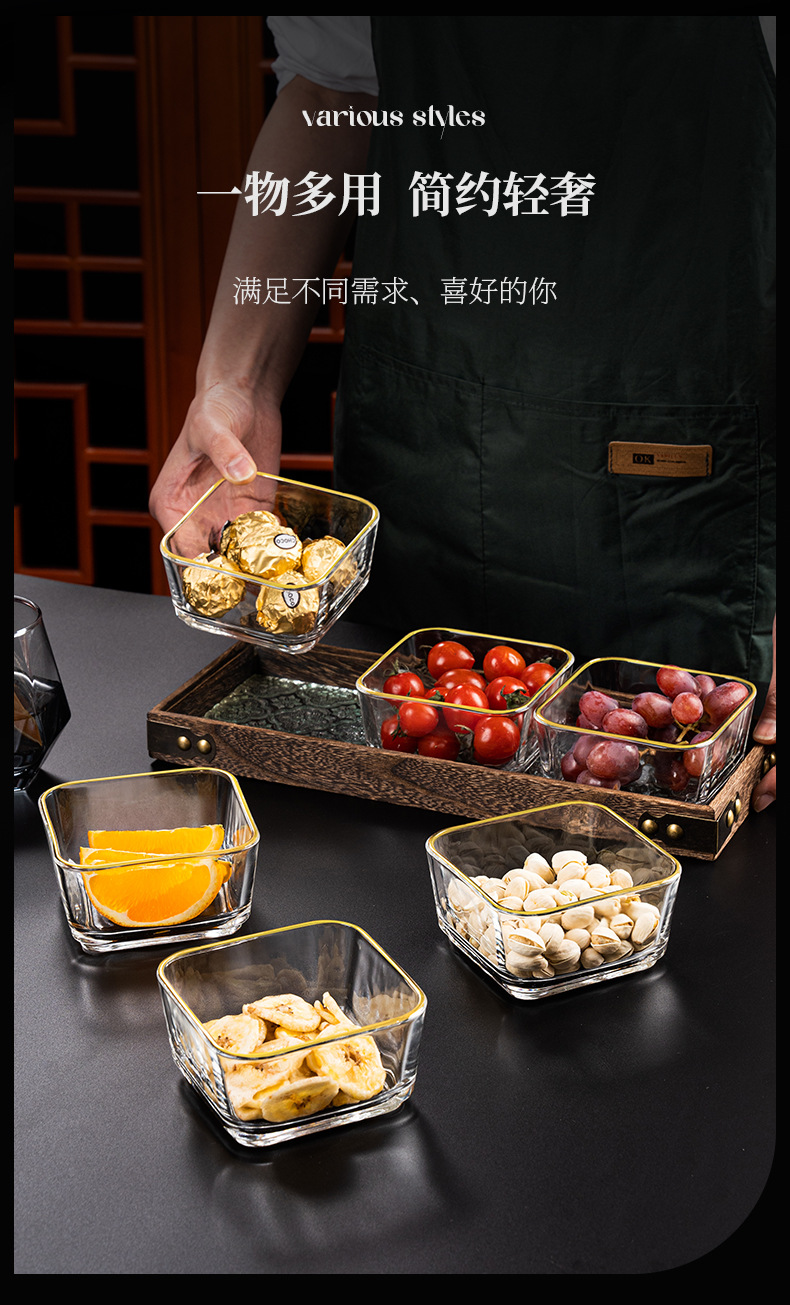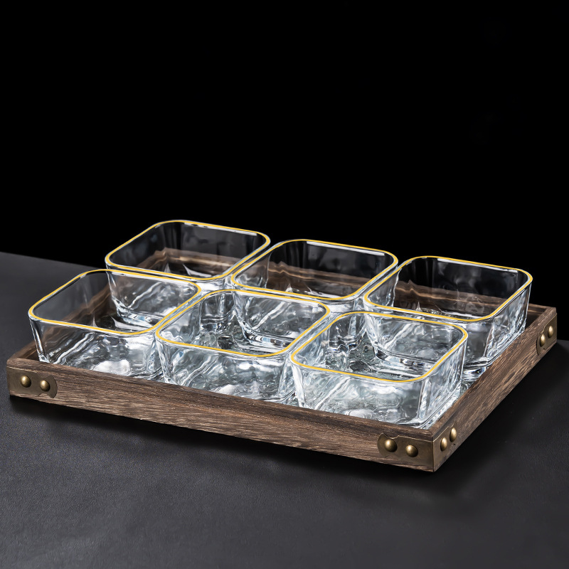 • 6 개의 황금 가장자리 사각 그릇 + 6 개의 그리드 오동 트레이