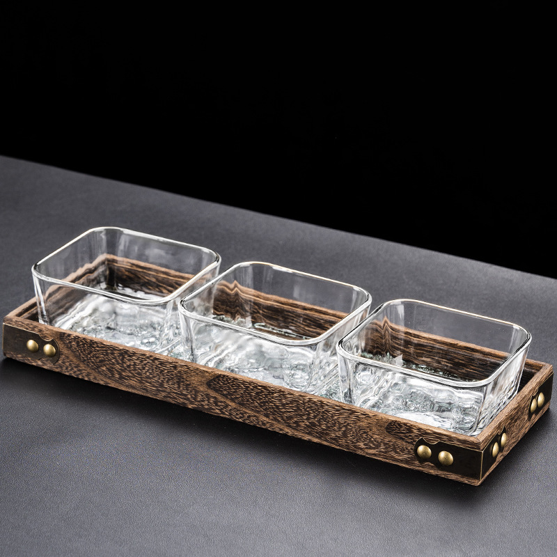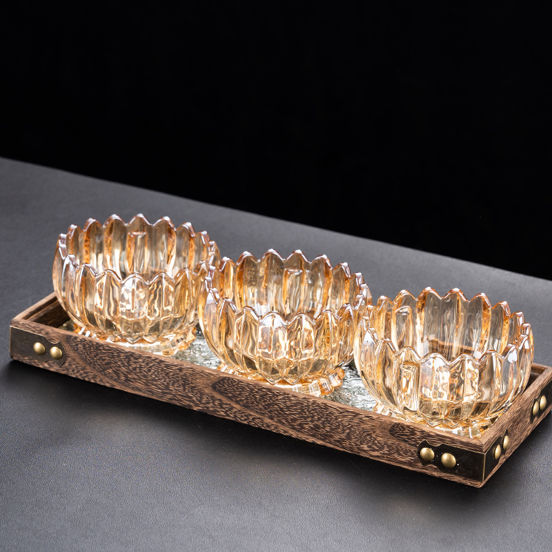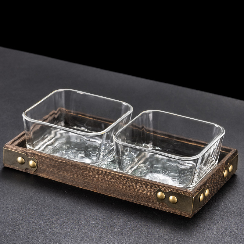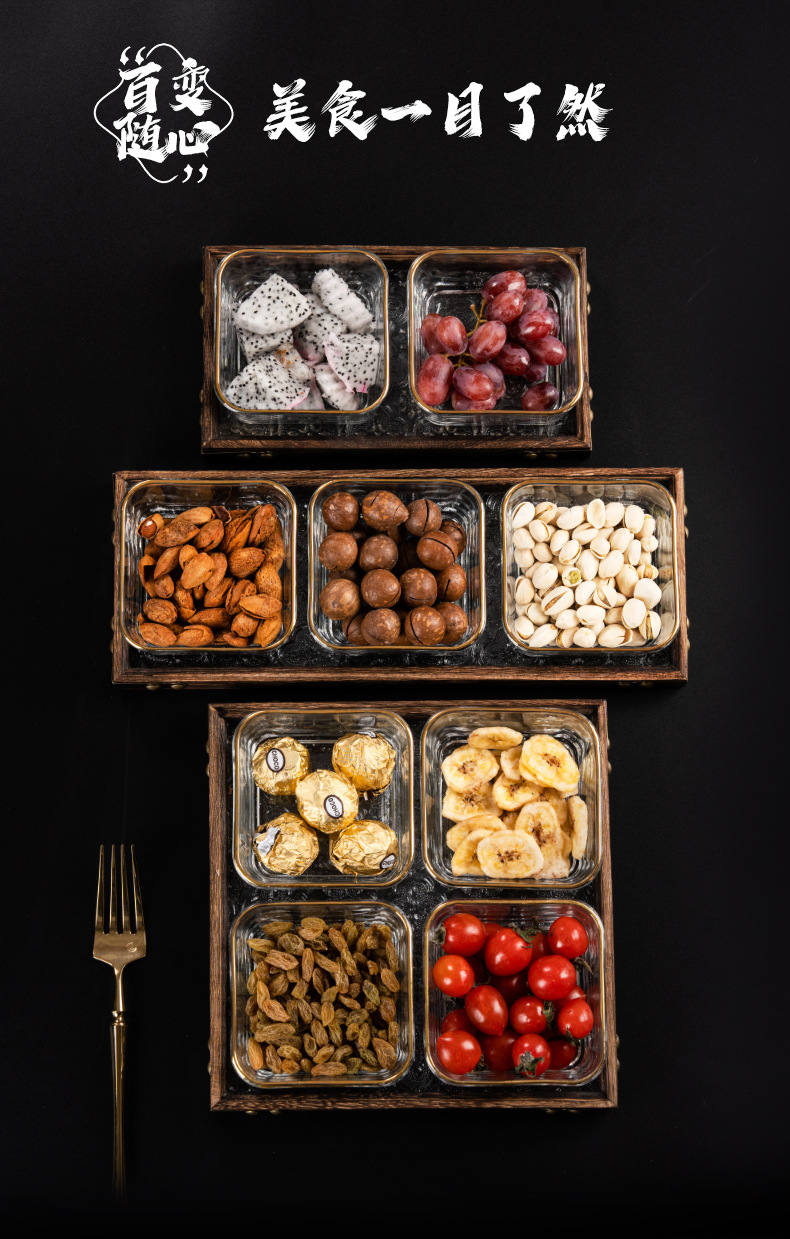 원목 유리 과일 접시, 거실용 가정용 고급 건과일 접시, 스낵/간식/사탕 보관함, 새로운 중국 스타일스토어 가기