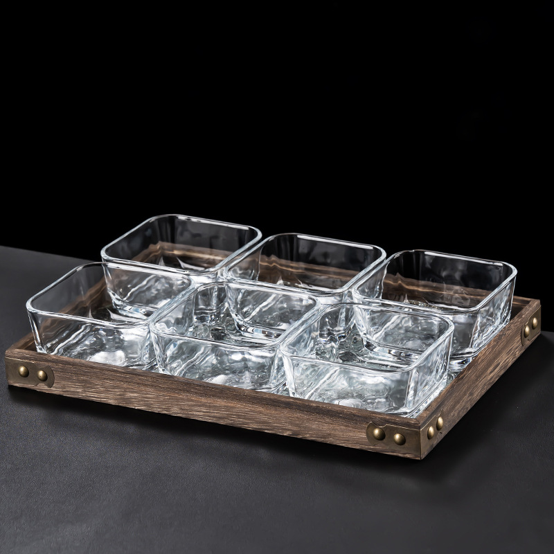 • 투명 사각 그릇 6 개 + 그리드 오동 트레이 6 개