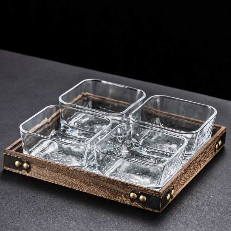 • 투명 사각 그릇 2 개 + 그리드 오동 트레이