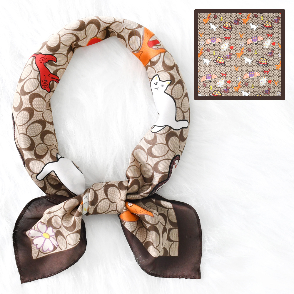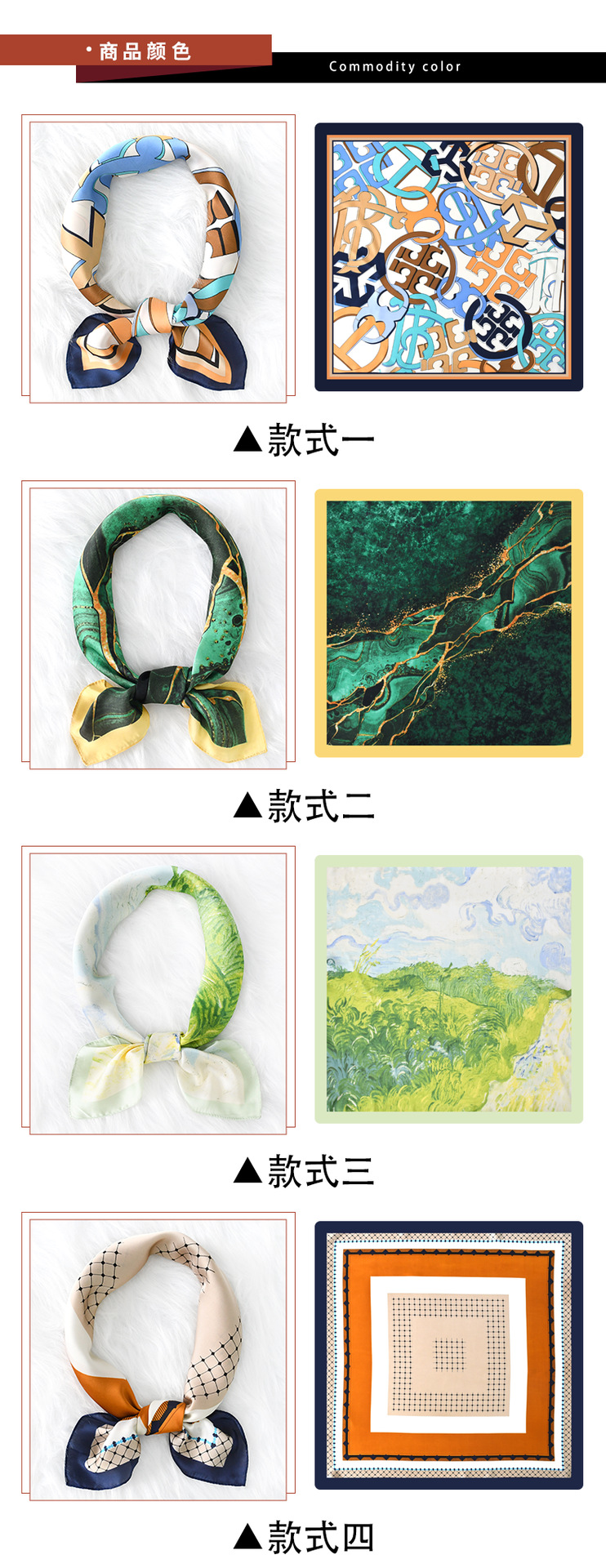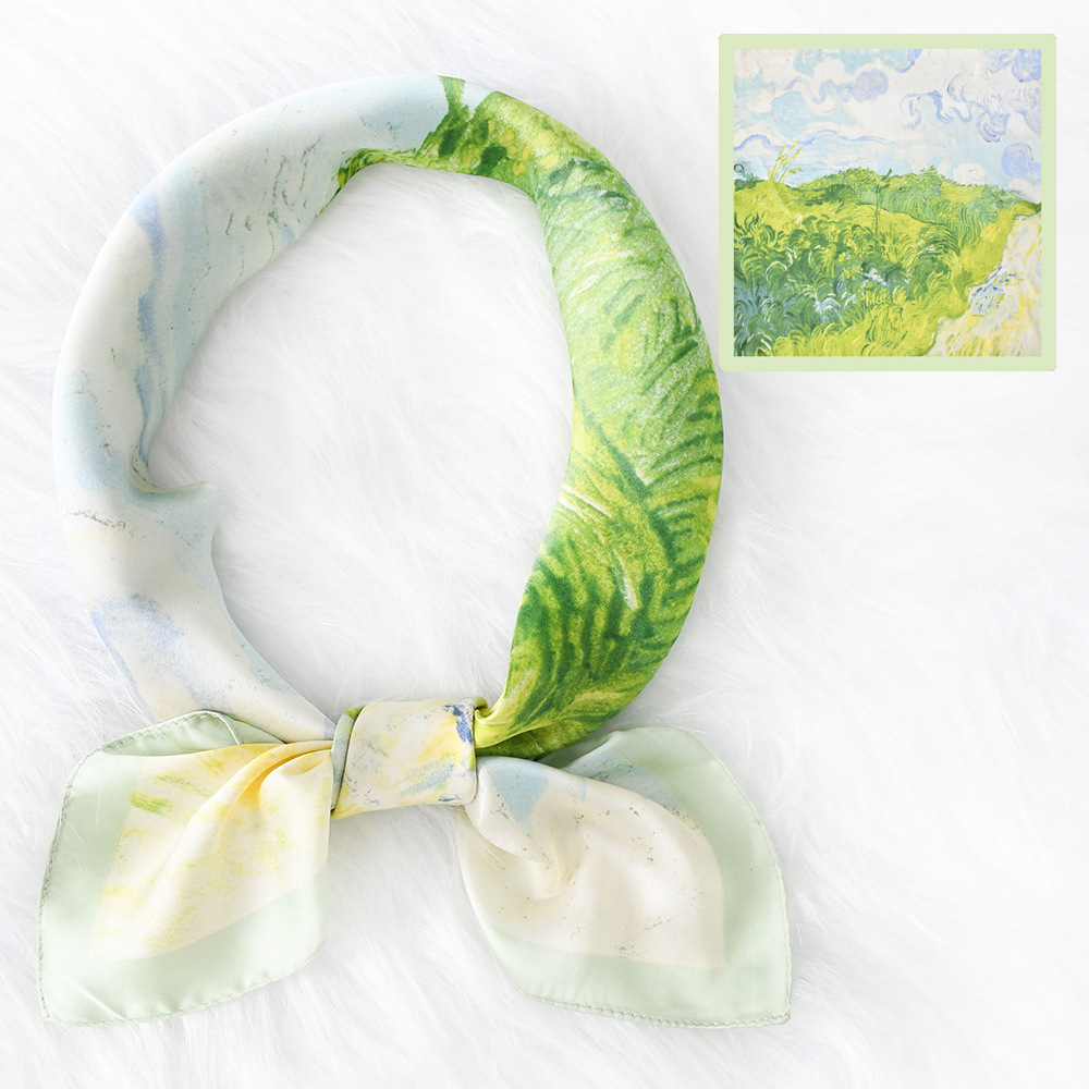 하이엔드감 작은 신선한 유화 풍경 스퀘어 스카프 여성 한국 일본 봄 가을 실크 스카프 70cm 실크 스카프 도매