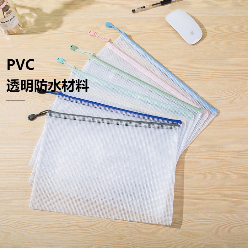 A4 투명 파일 가방 그리드 백 대용량 PVC 방수 지퍼 가방 학생 시험 종이 재료 보관 가방 도매스토어 가기