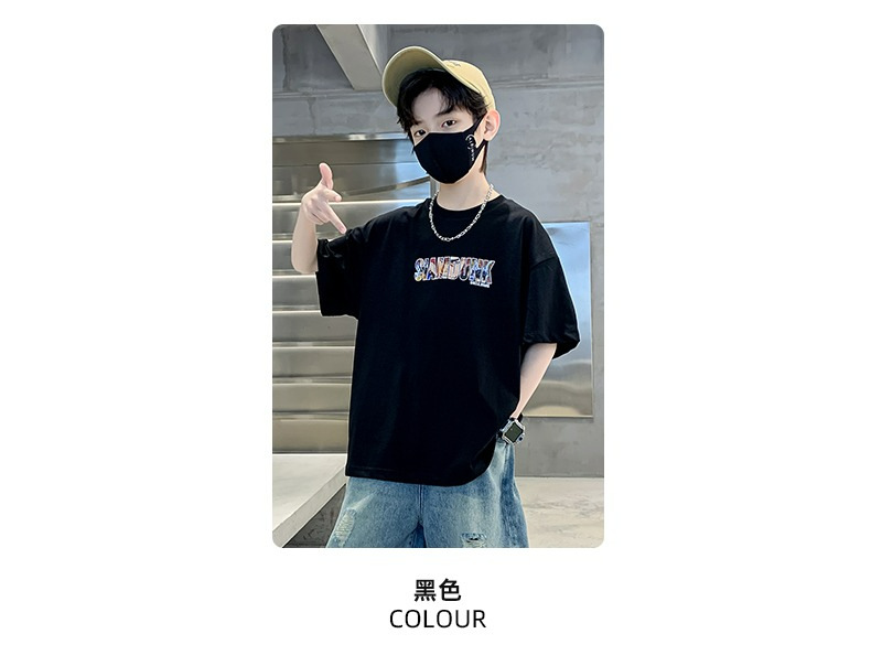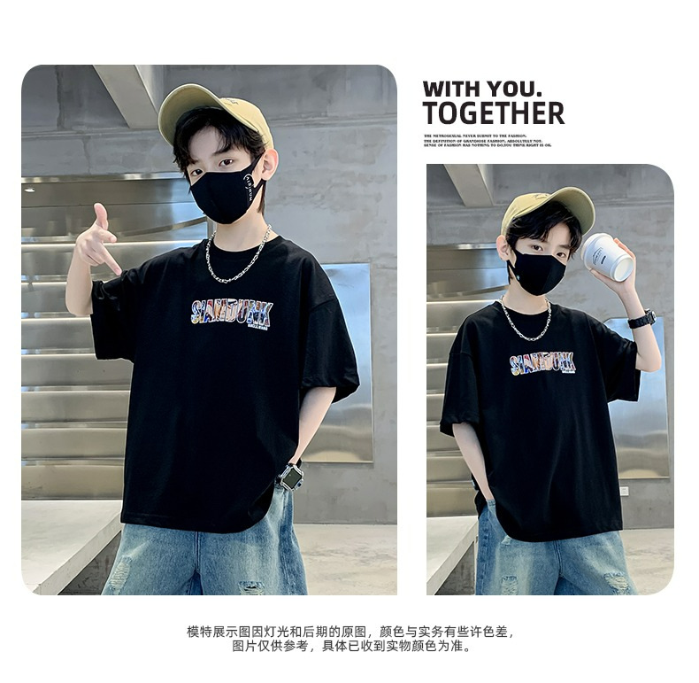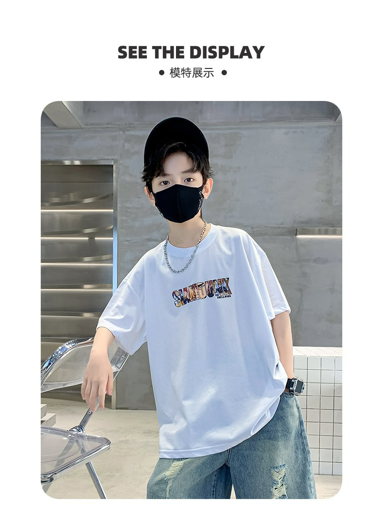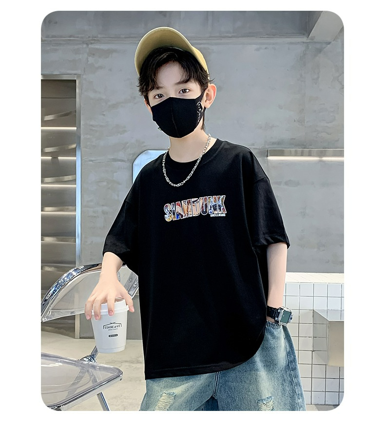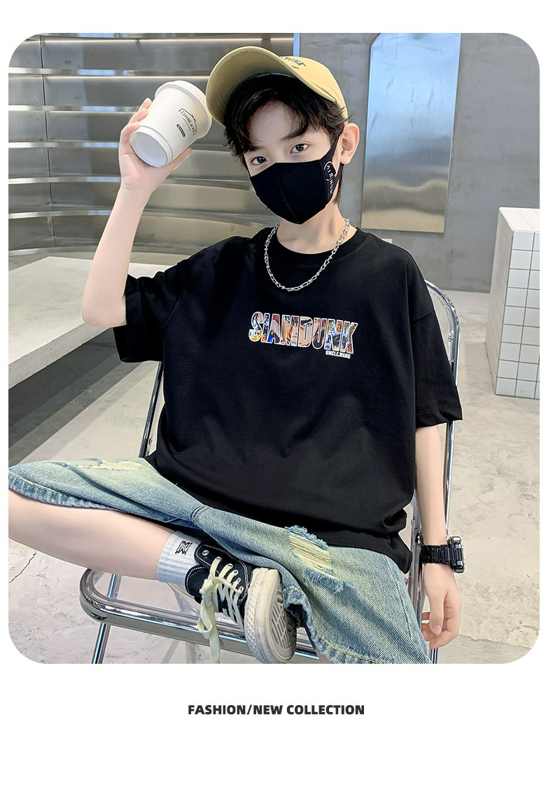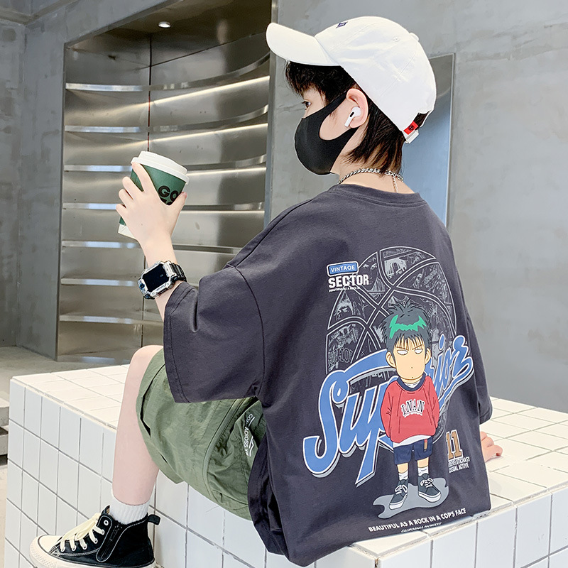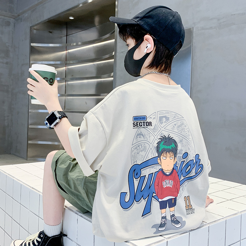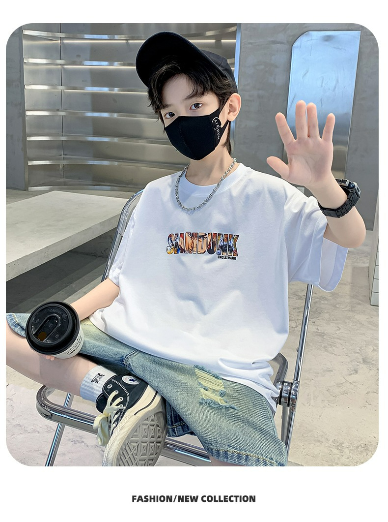 [면 100%] 아동복 남아 티셔츠 반소매 여름 어린이 중간 및 큰 소년 셔츠 반 소매 여름 패션