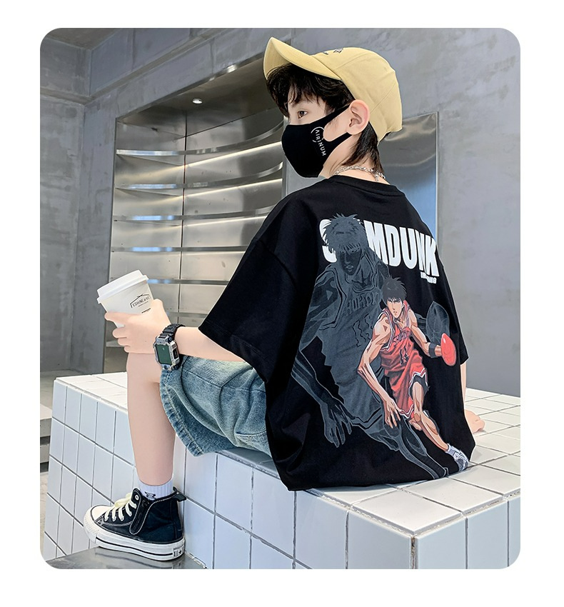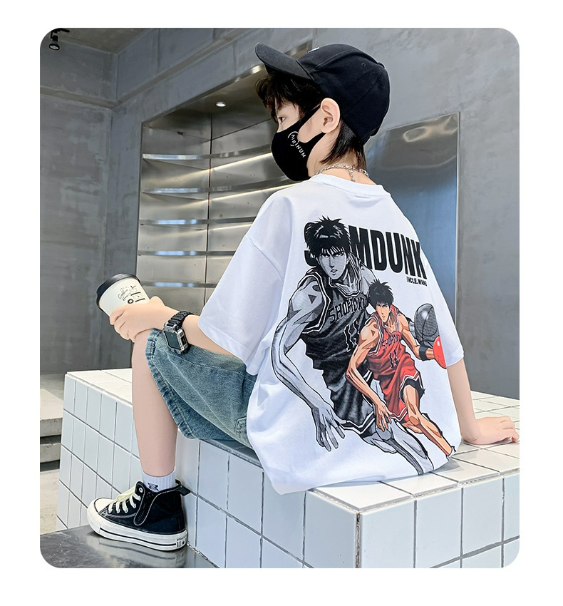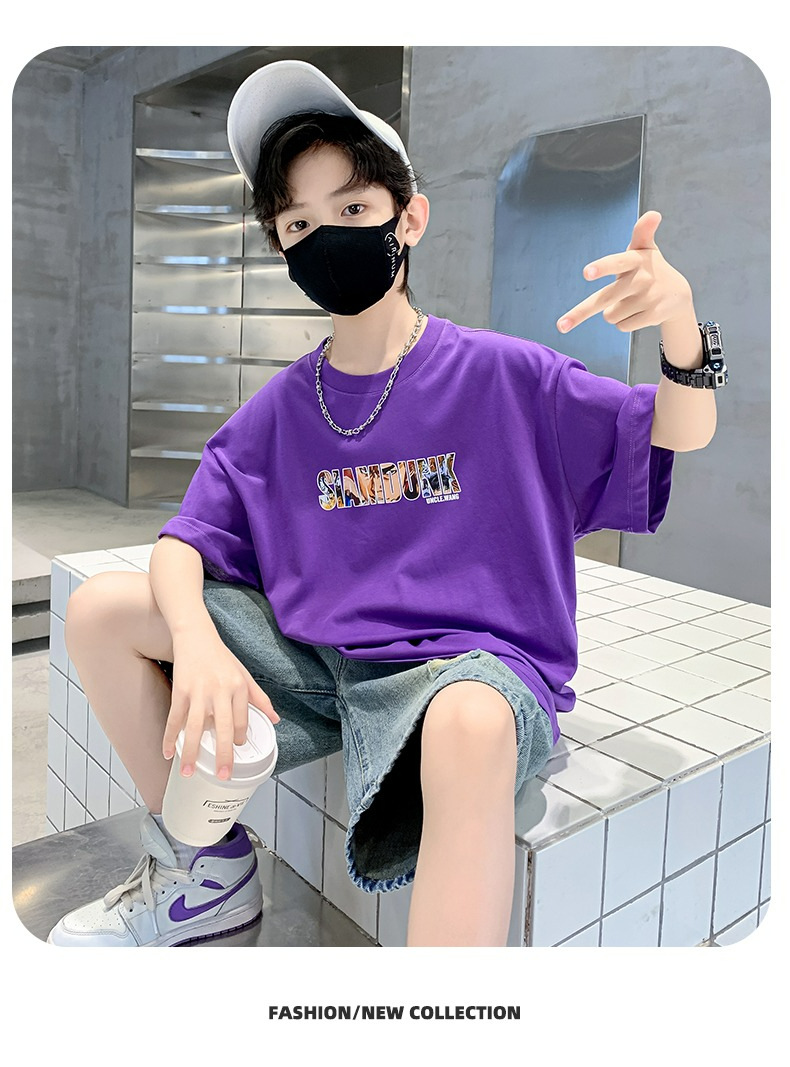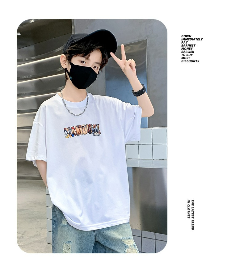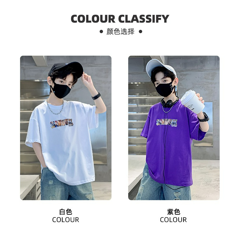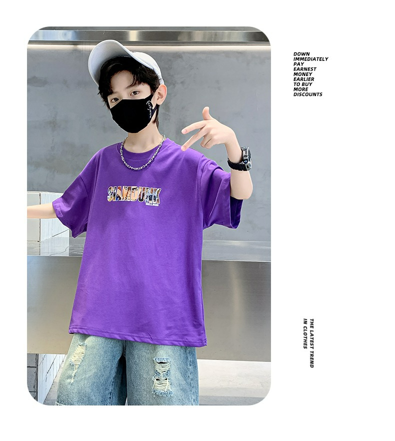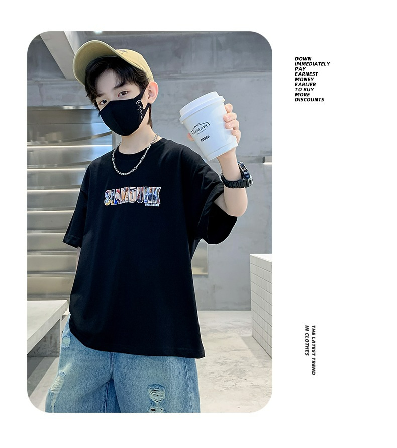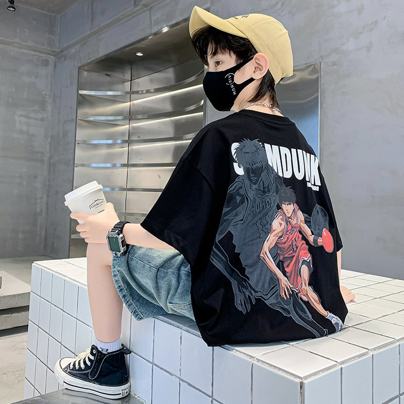 [면 100%] 아동복 남아 티셔츠 반소매 여름 어린이 중간 및 큰 소년 셔츠 반 소매 여름 패션