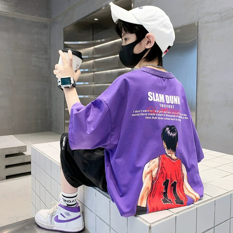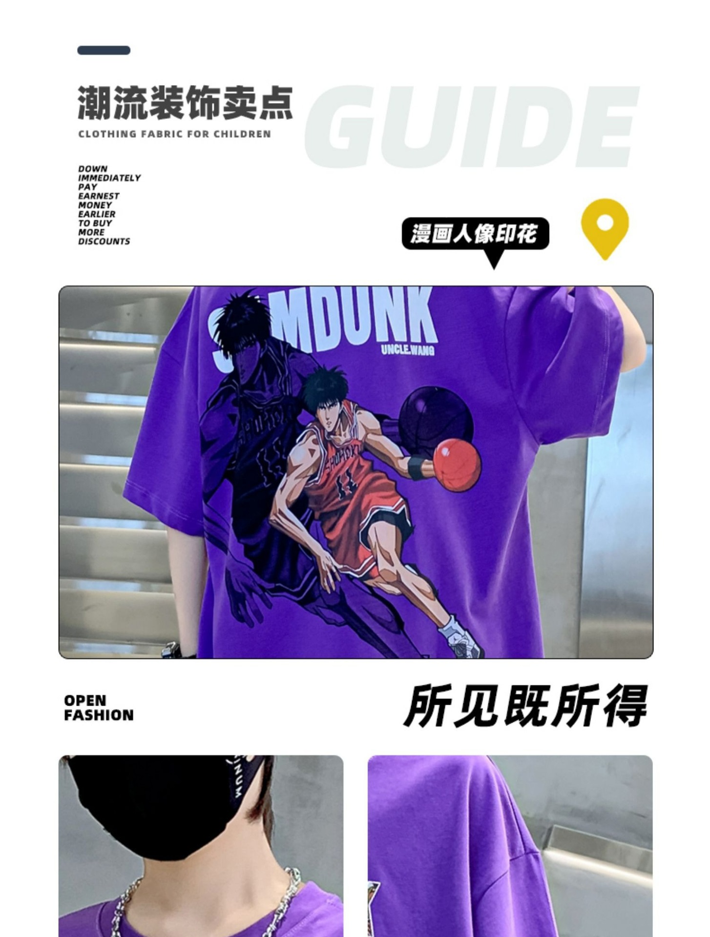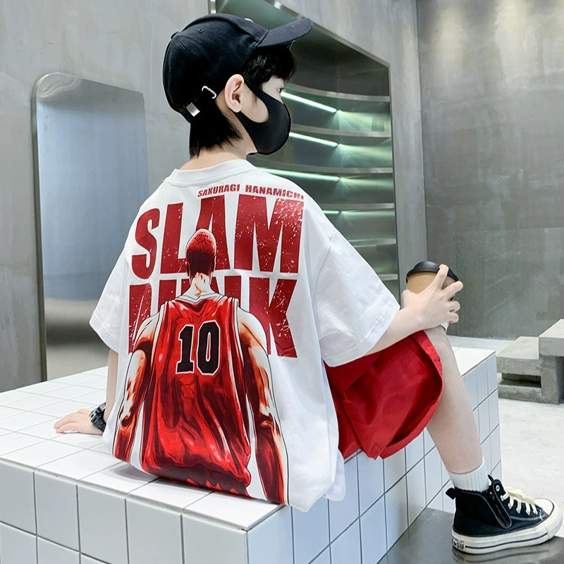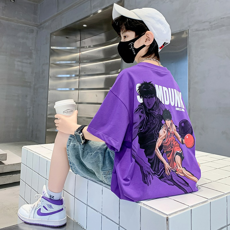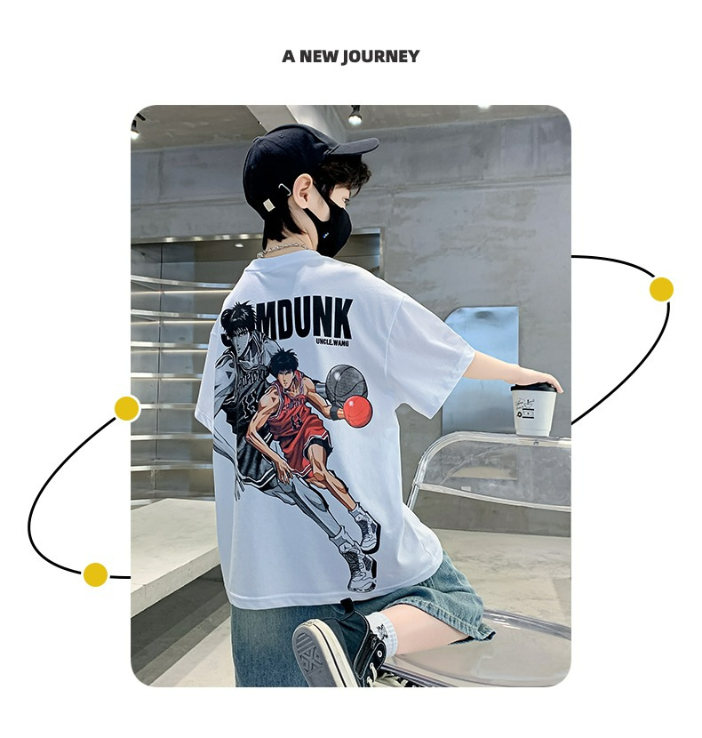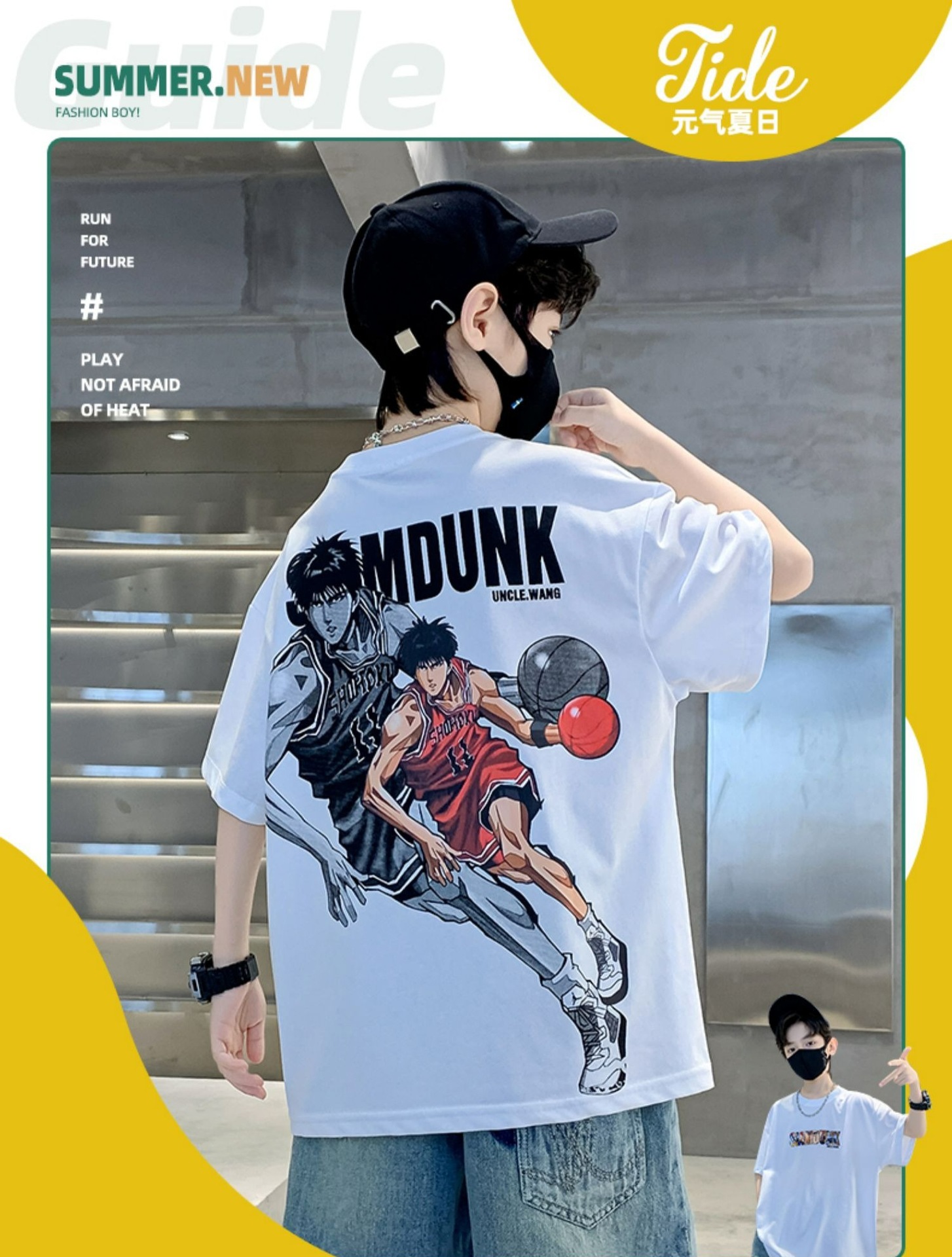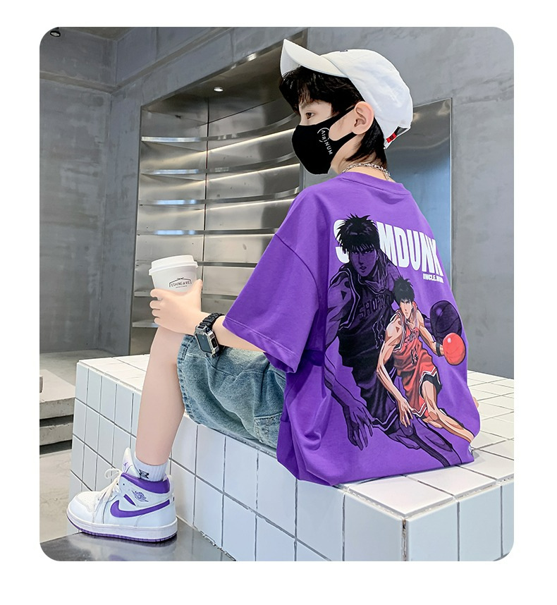 [면 100%] 아동복 남아 티셔츠 반소매 여름 어린이 중간 및 큰 소년 셔츠 반 소매 여름 패션