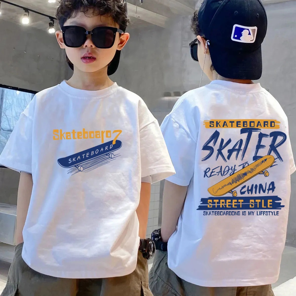 [면 100%] 아동복 남아 티셔츠 반소매 여름 어린이 중간 및 큰 소년 셔츠 반 소매 여름 패션스토어 가기