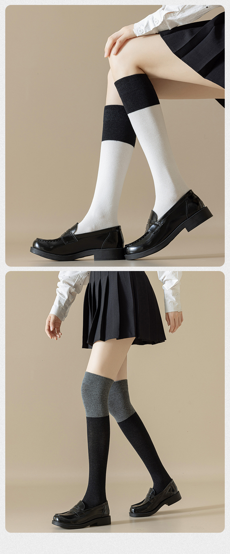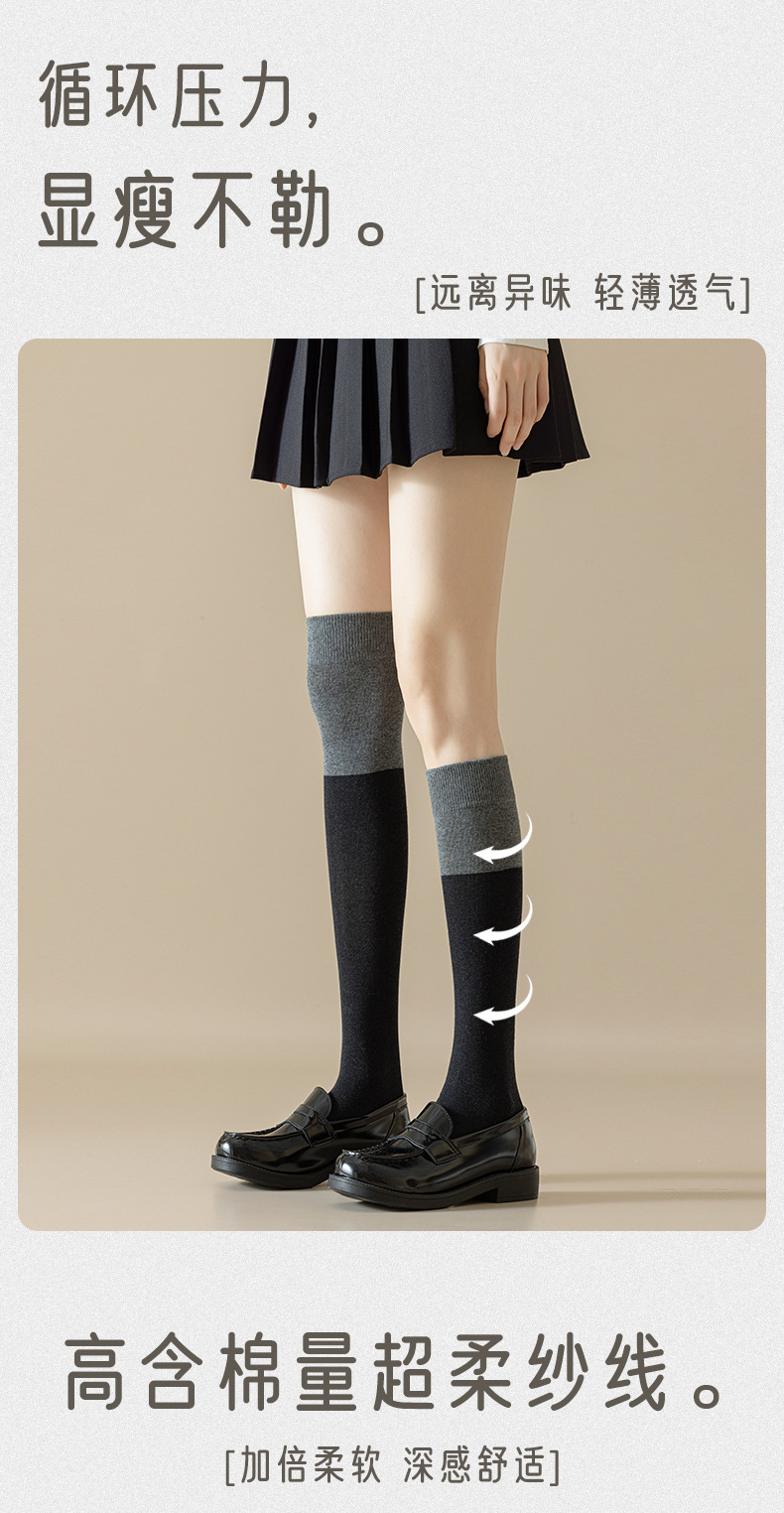 여성용 양말 봄 여름 일본 스타일 트렌디 JK 슬림핏 종아리 양말 인터넷 인기 컬러 블록 롱삭스 스포츠 면 양말스토어 가기