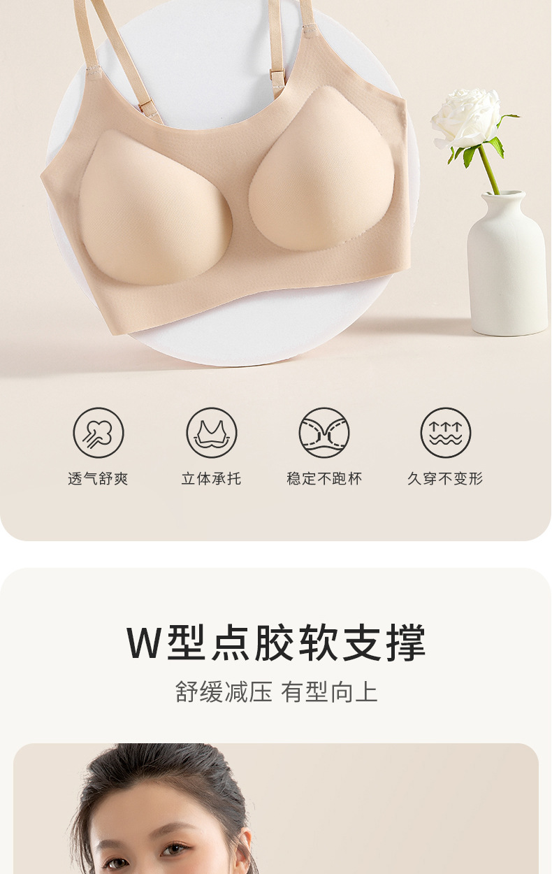 작은 가슴을 가진 여성을 위한 고정 컵 심리스 백 뷰티 브라, 푸쉬업 및 보조 가슴 조절 조끼 스타일, 와이어가 없는 스포츠 브라로 더 작아 보입니다.