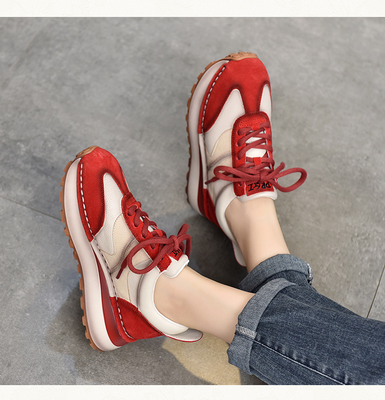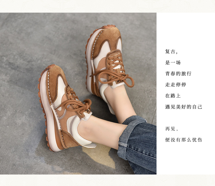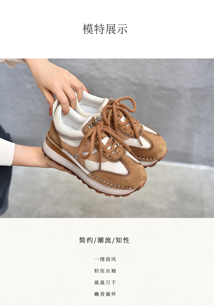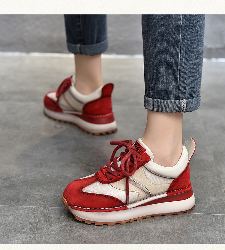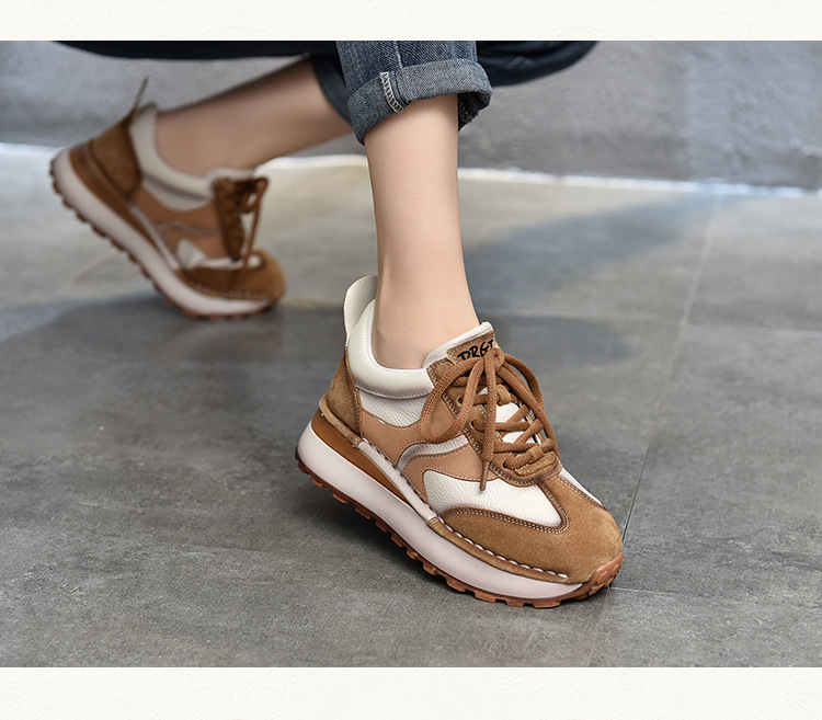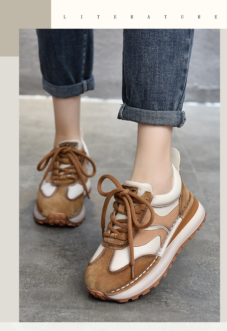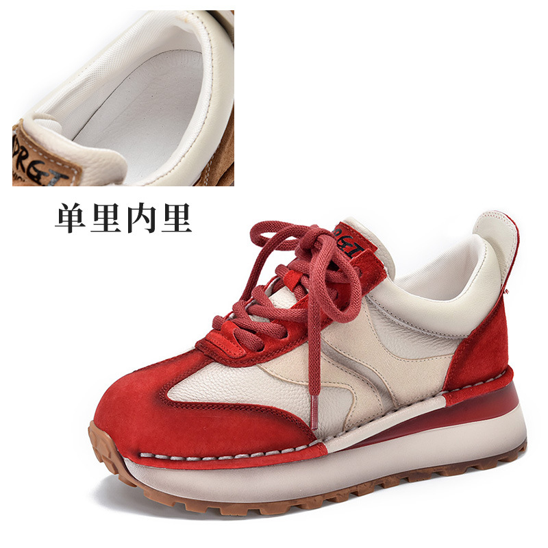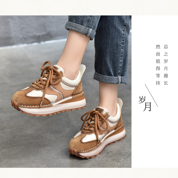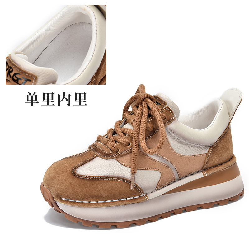 여성 캐주얼 슈즈 트렌디 슈즈 천연 가죽 중간 굽 끈 묶는 로우탑 슈즈 라운드 토 다용도 스포츠 캐주얼 슈즈스토어 가기