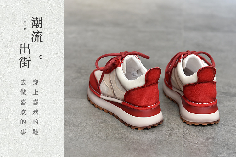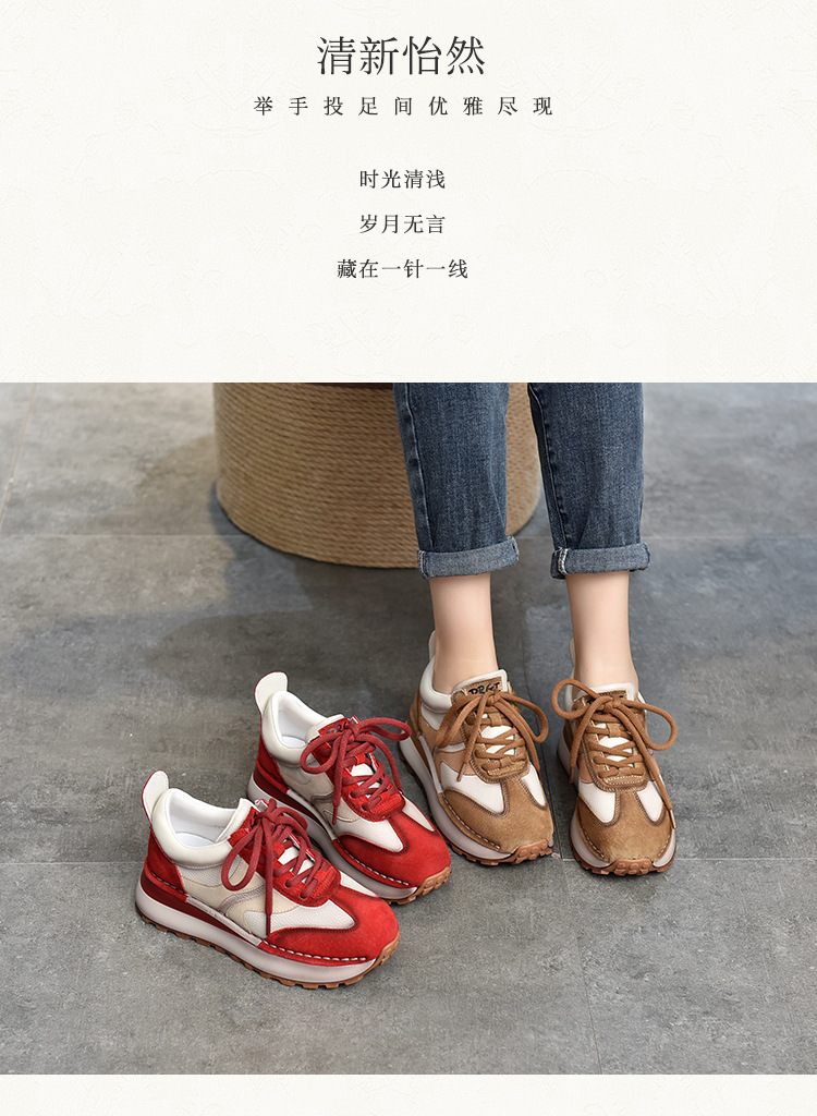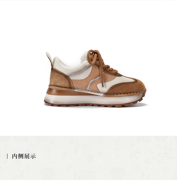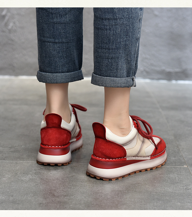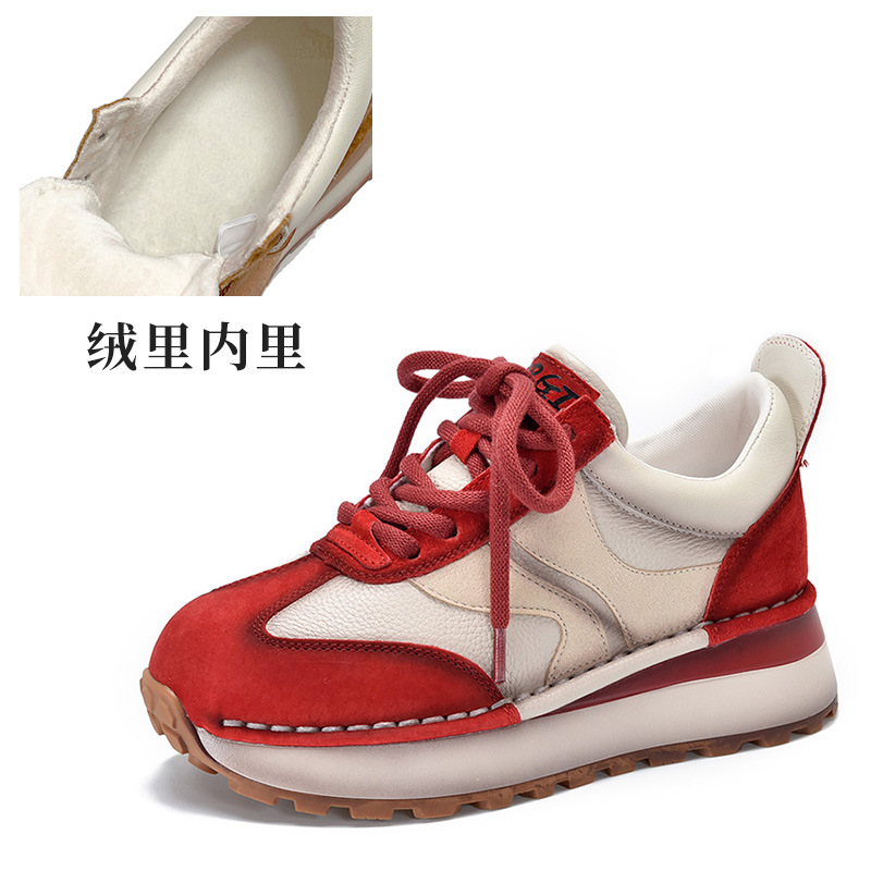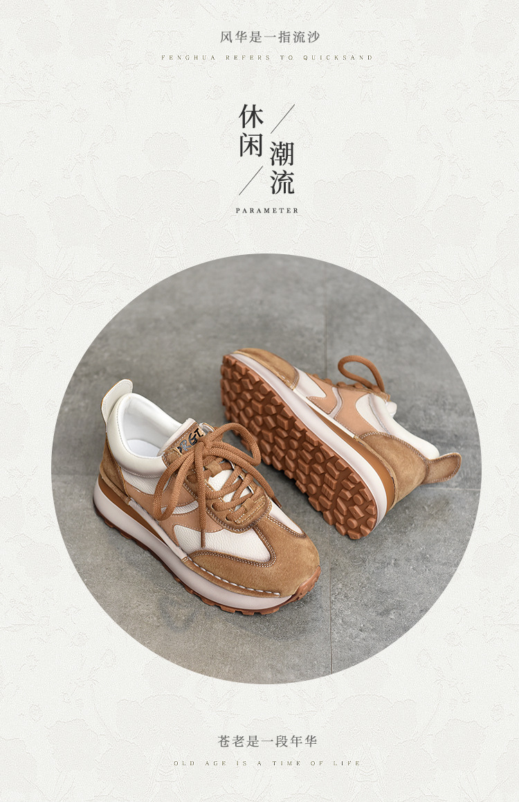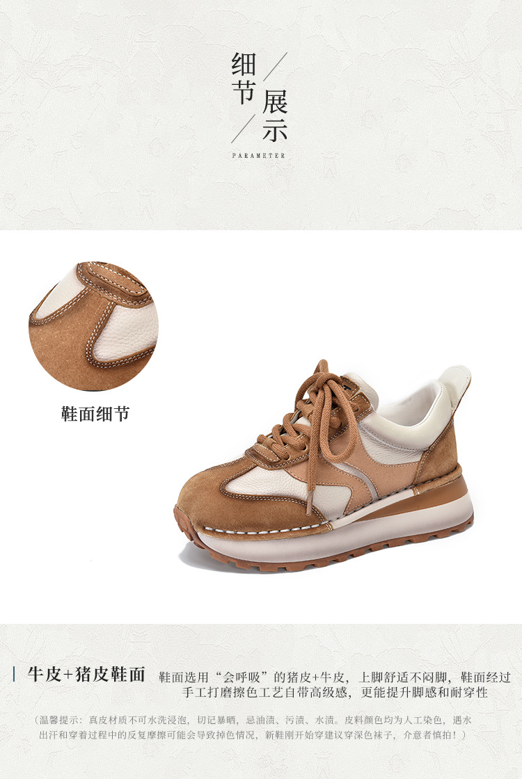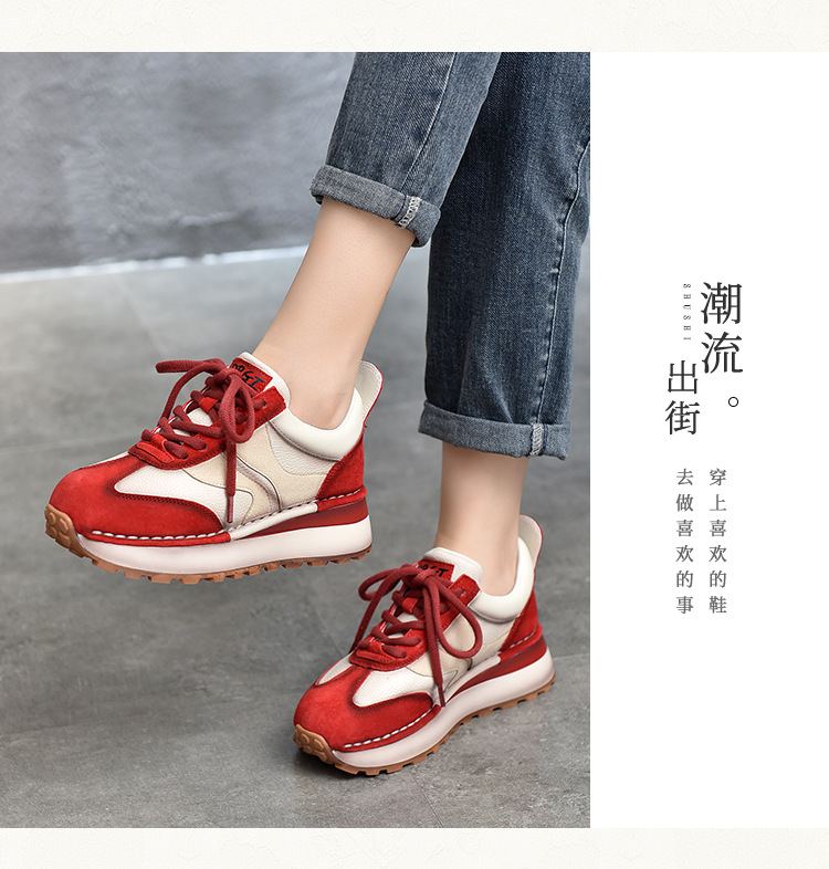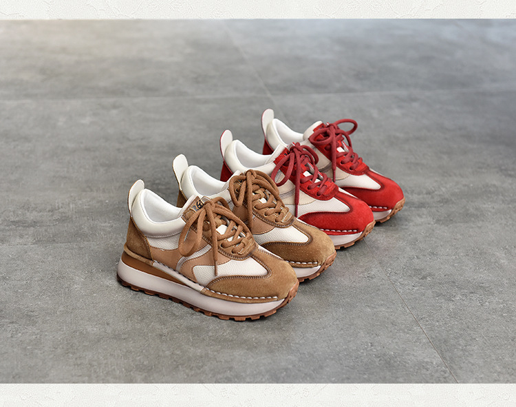여성 캐주얼 슈즈 트렌디 슈즈 천연 가죽 중간 굽 끈 묶는 로우탑 슈즈 라운드 토 다용도 스포츠 캐주얼 슈즈스토어 가기