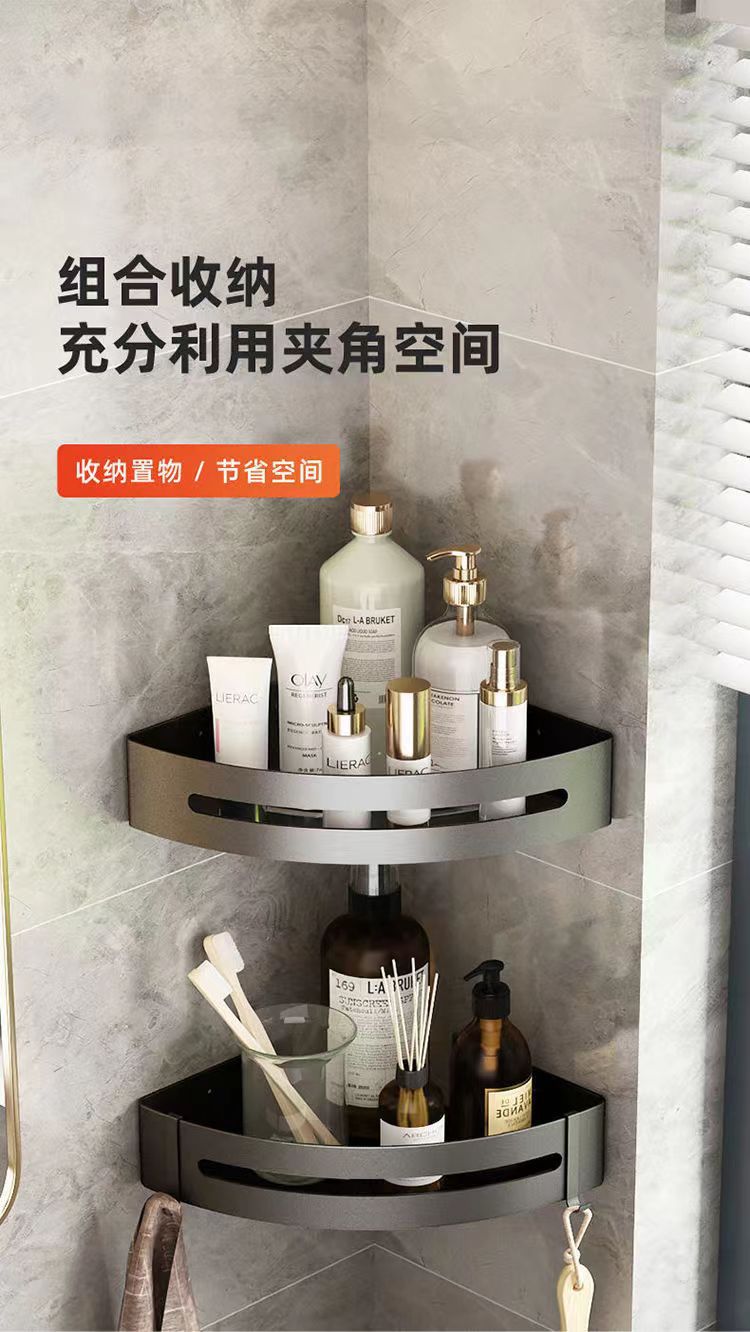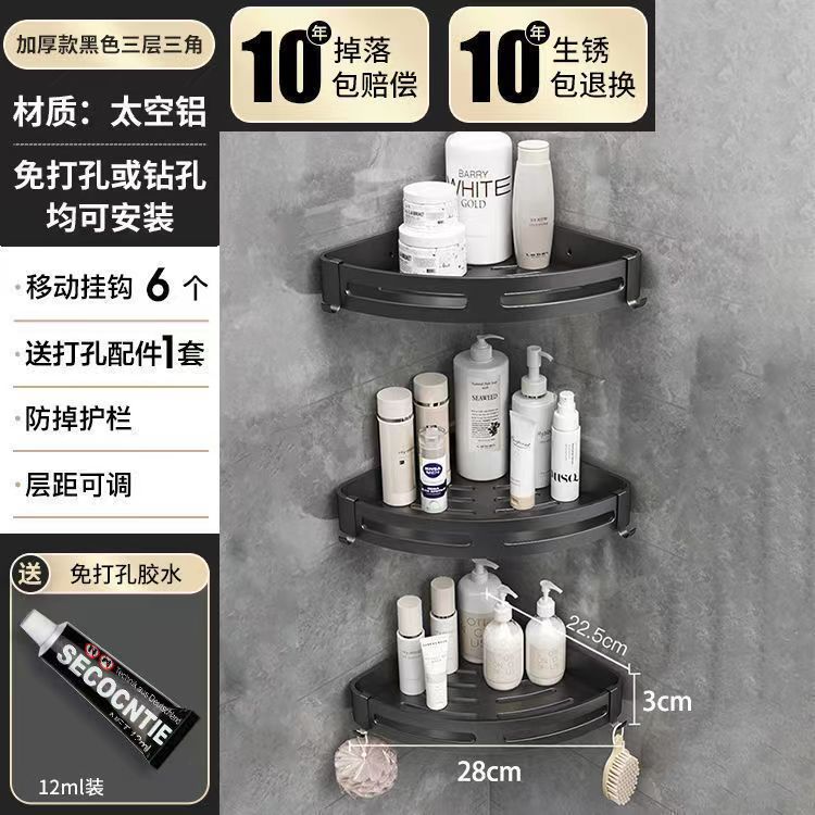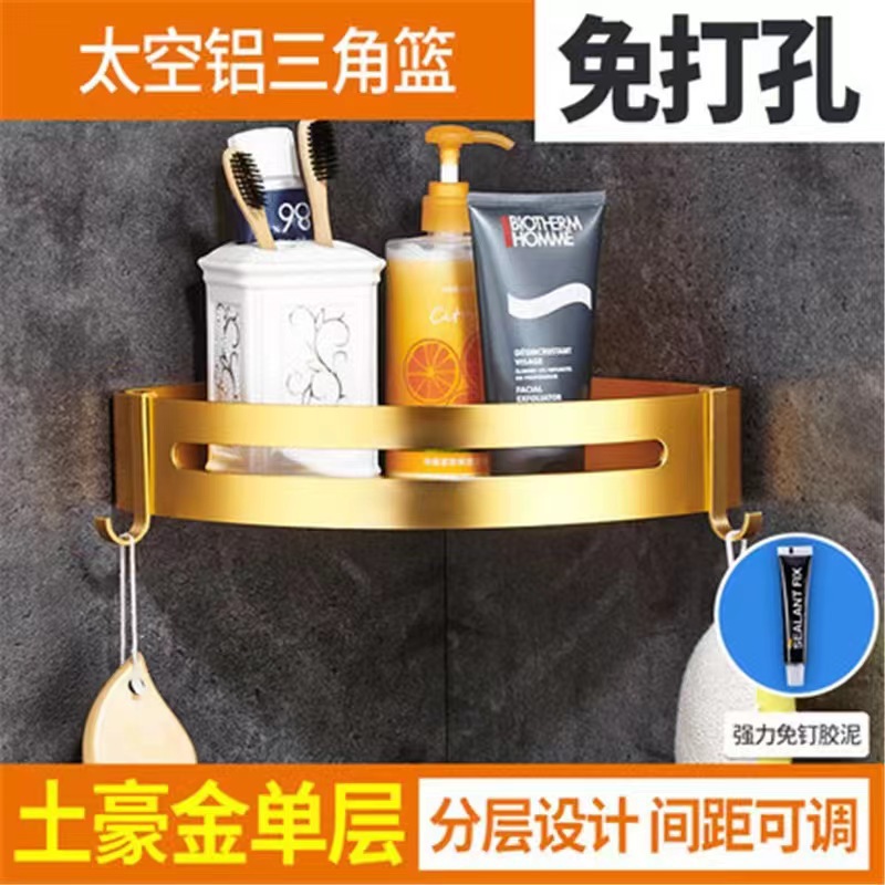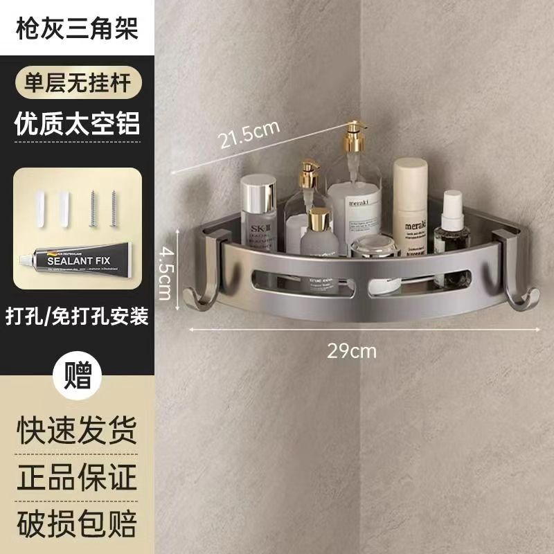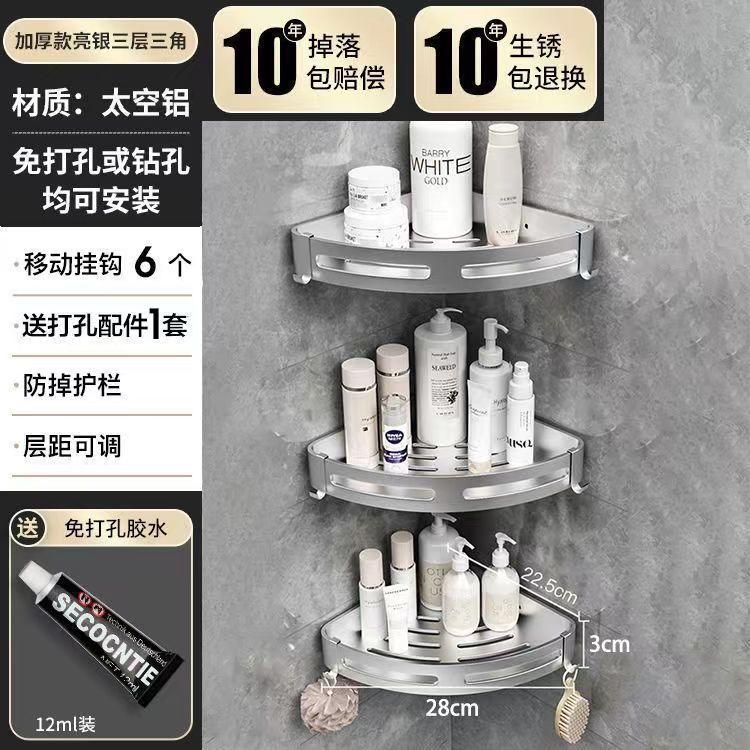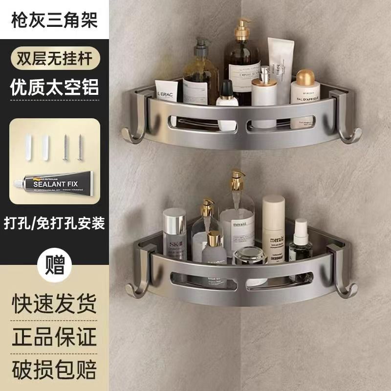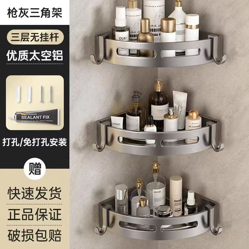 펀치 없는 공간 알루미늄 수납 랙 화장실 화장실 삼각대 욕실 수납 랙 벽걸이 형 화장실 코너 랙스토어 가기
