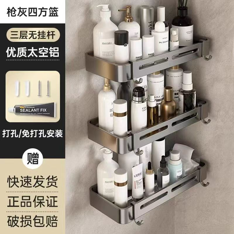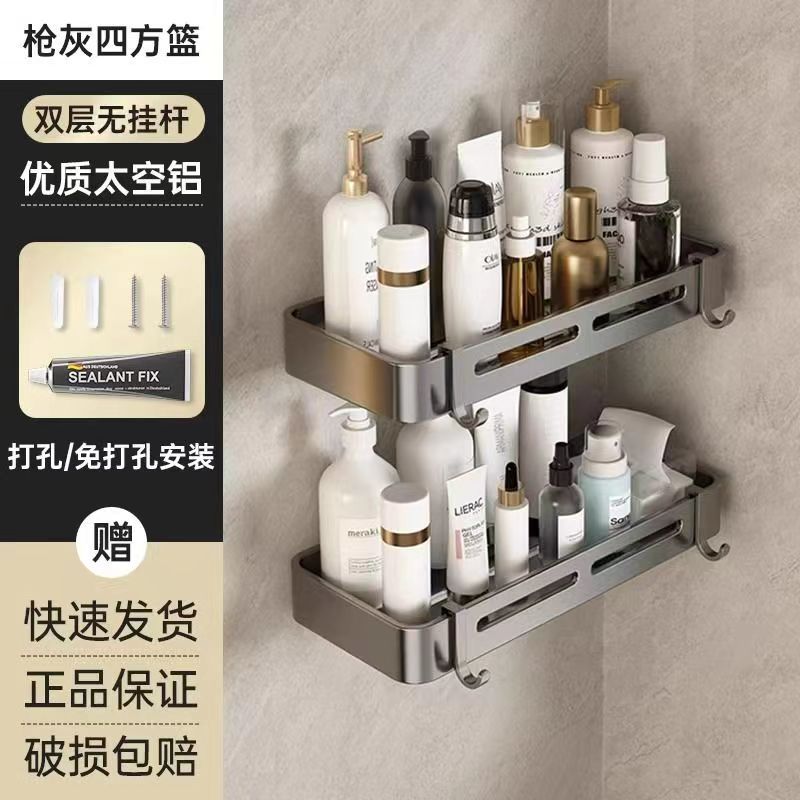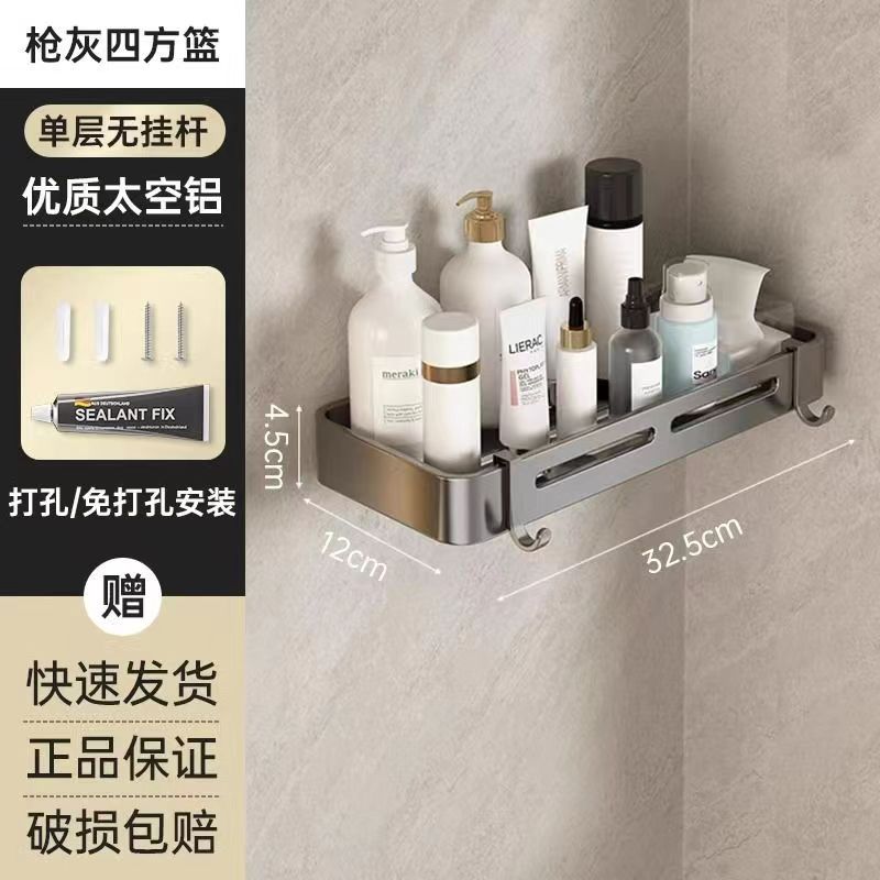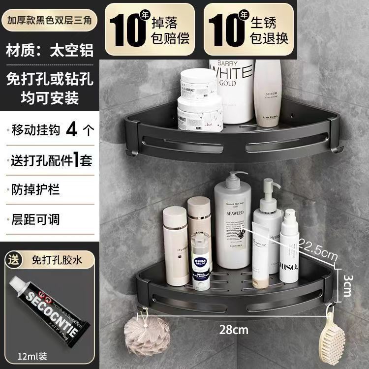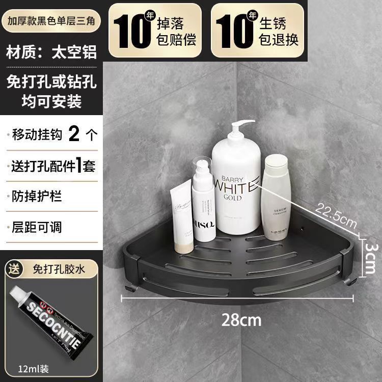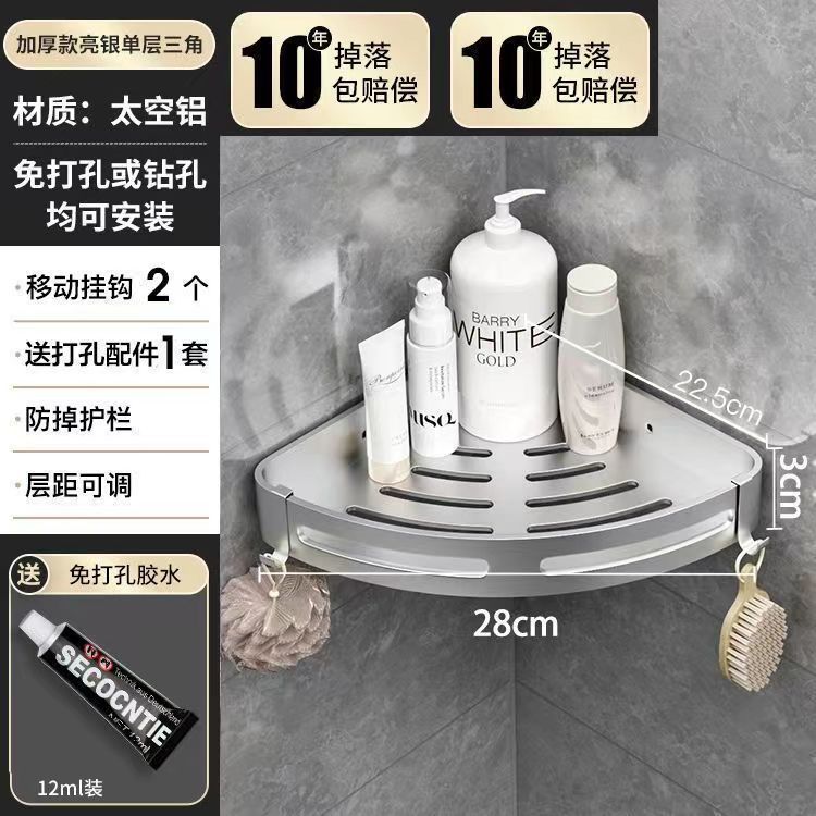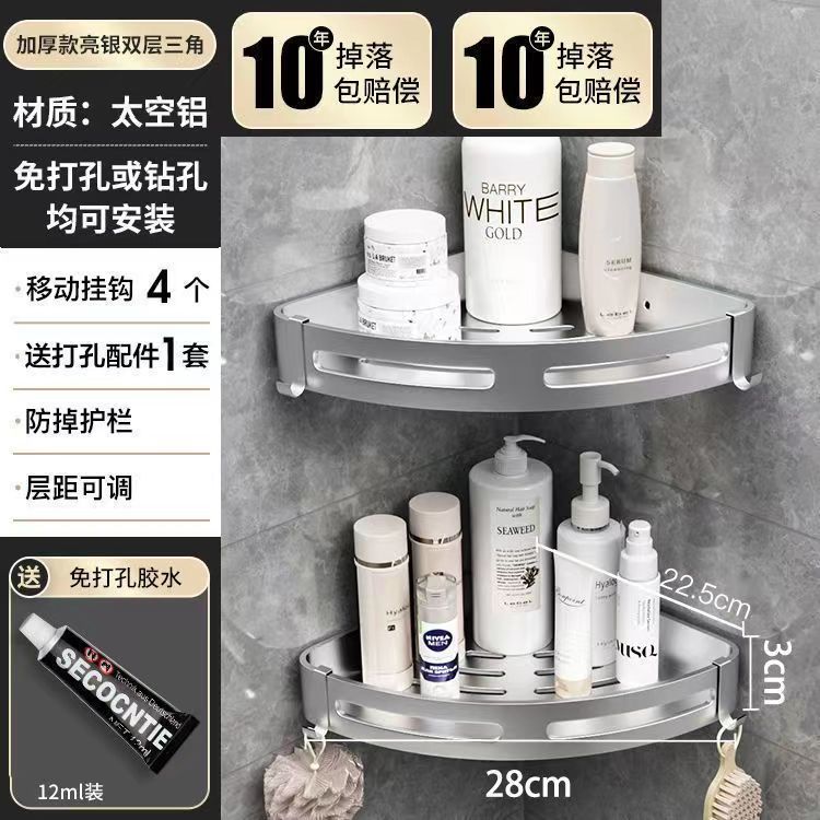 펀치 없는 공간 알루미늄 수납 랙 화장실 화장실 삼각대 욕실 수납 랙 벽걸이 형 화장실 코너 랙스토어 가기