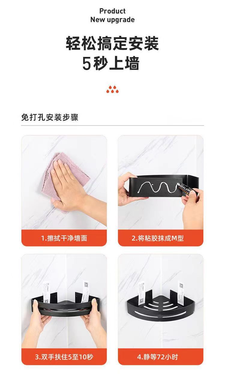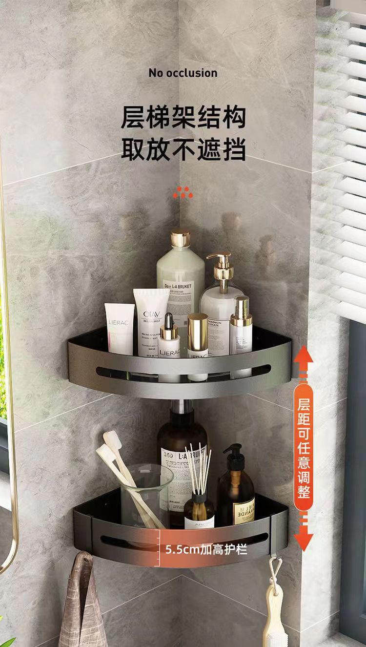 펀치 없는 공간 알루미늄 수납 랙 화장실 화장실 삼각대 욕실 수납 랙 벽걸이 형 화장실 코너 랙