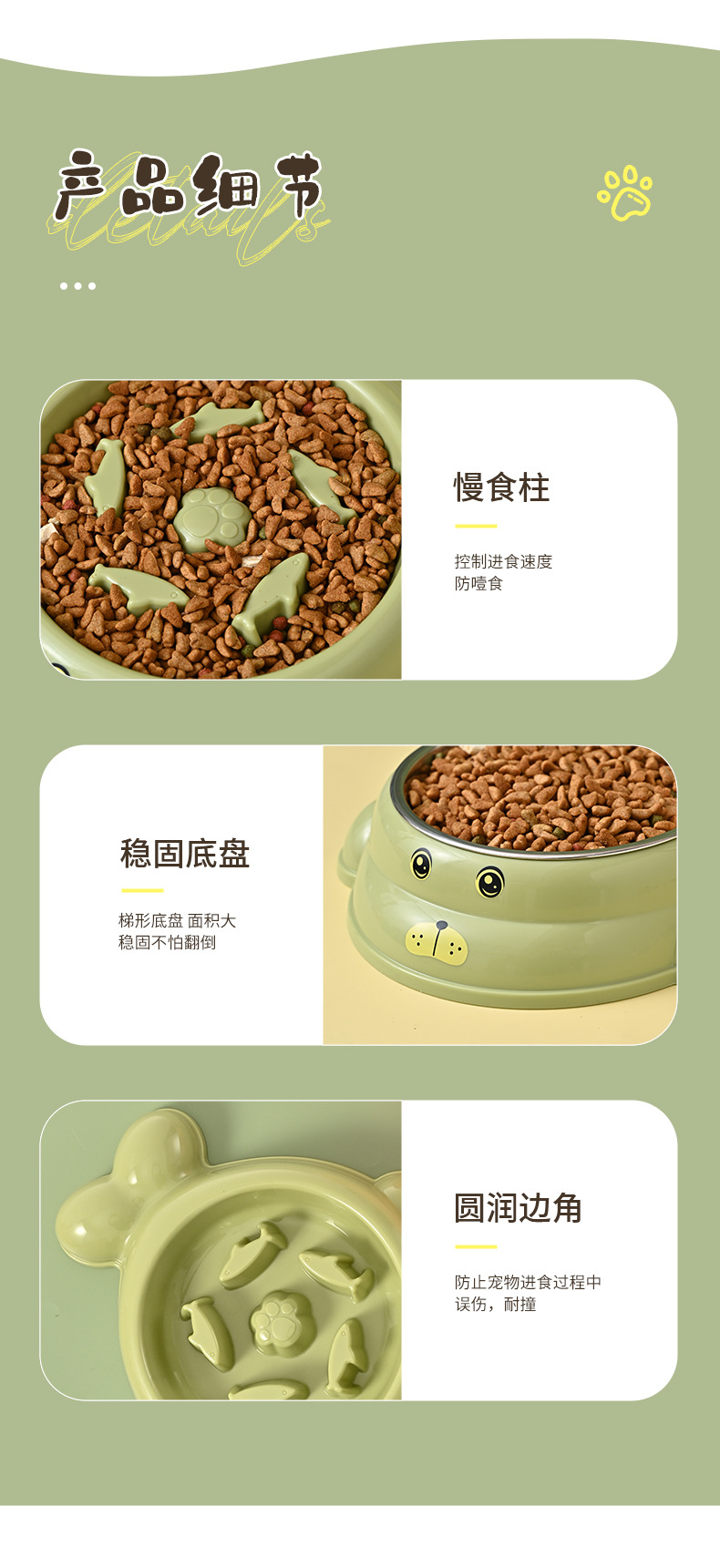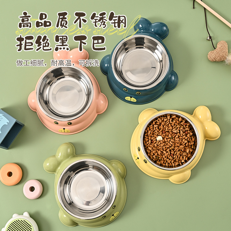 스테인레스 스틸 고양이 식기 애완 동물 개 그릇 만화 발자국 애완 동물 개 분지 식기 고양이 그릇 마시는 고양이 용품 물 그릇