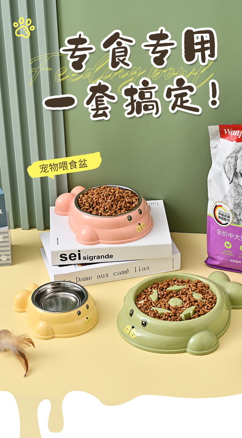 스테인레스 스틸 고양이 식기 애완 동물 개 그릇 만화 발자국 애완 동물 개 분지 식기 고양이 그릇 마시는 고양이 용품 물 그릇스토어 가기