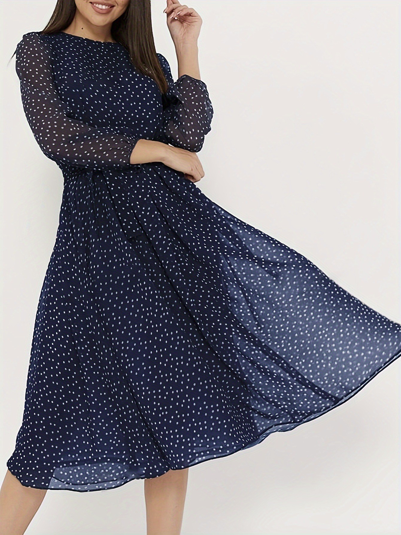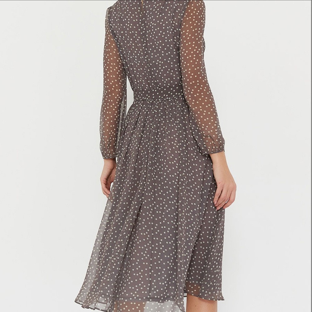 아마존 AliExpress 2023 봄과 여름 쉬폰 원피스 긴 소매 다크 브라운 블랙 물방울 무늬 원피스