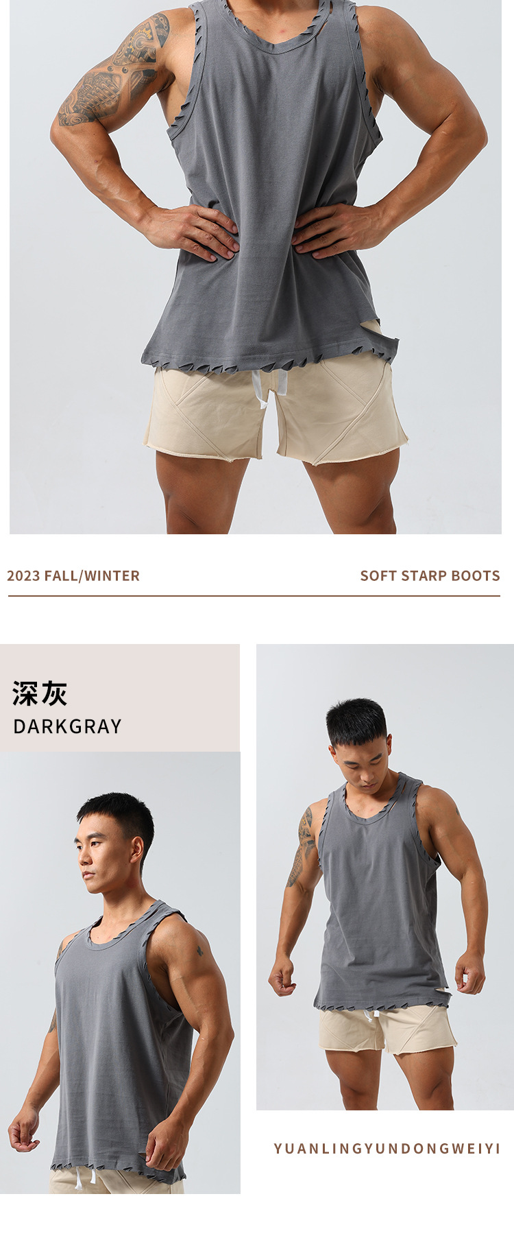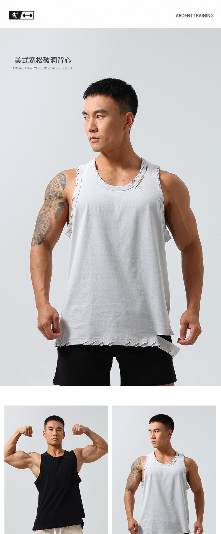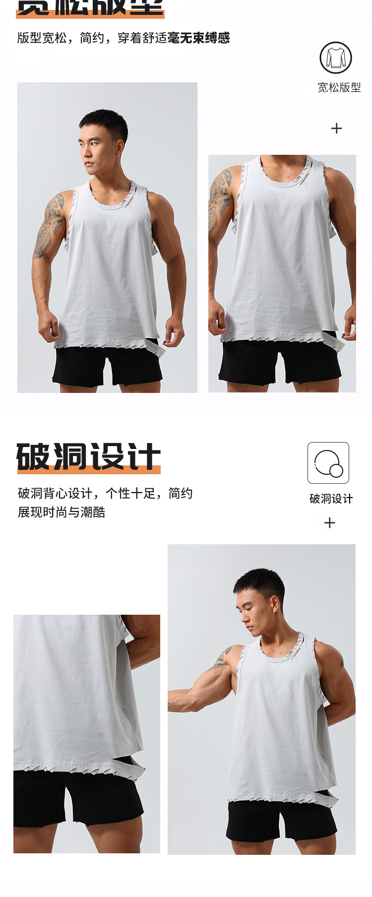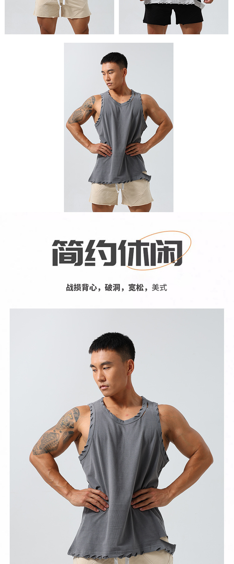 남성 스포츠 속건 탄성 조끼 민소매 농구 찢어진 느슨한 여름 야외 달리기 레저 피트니스 트렌디 브랜드스토어 가기