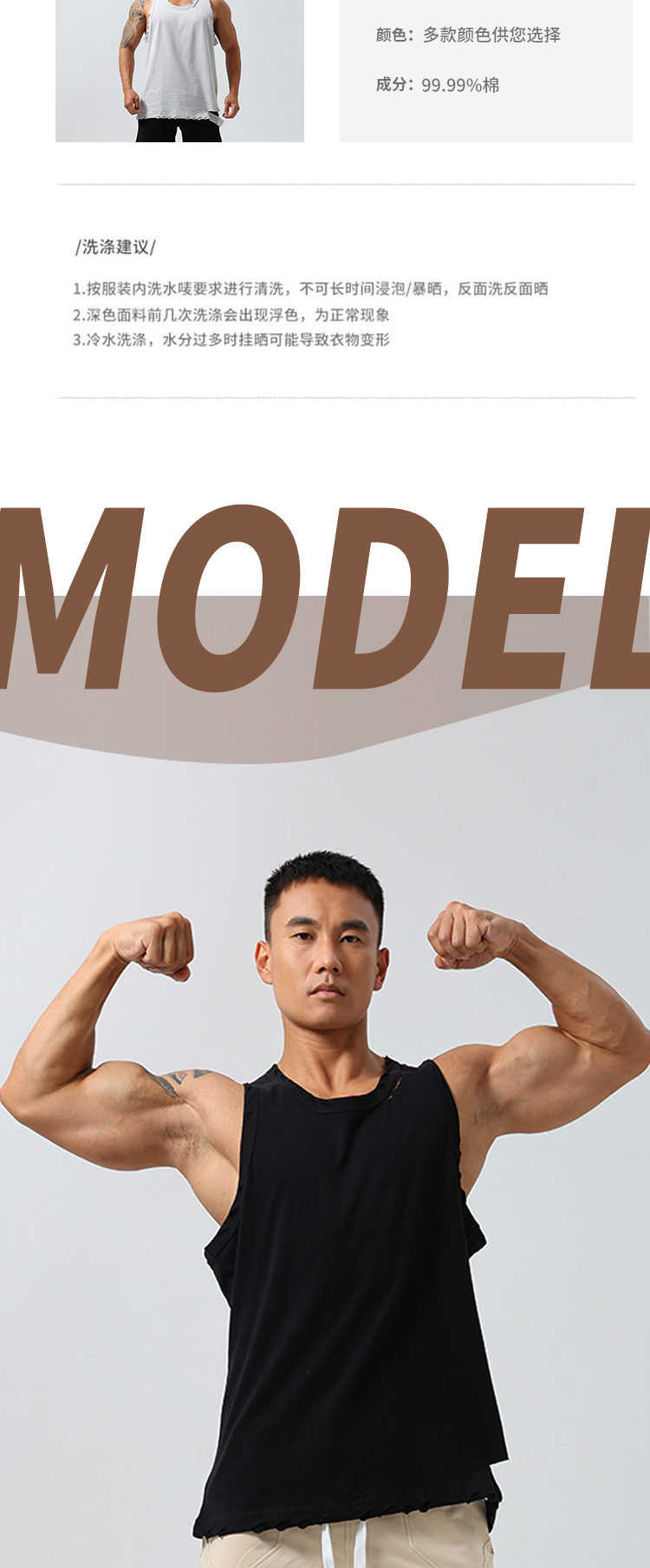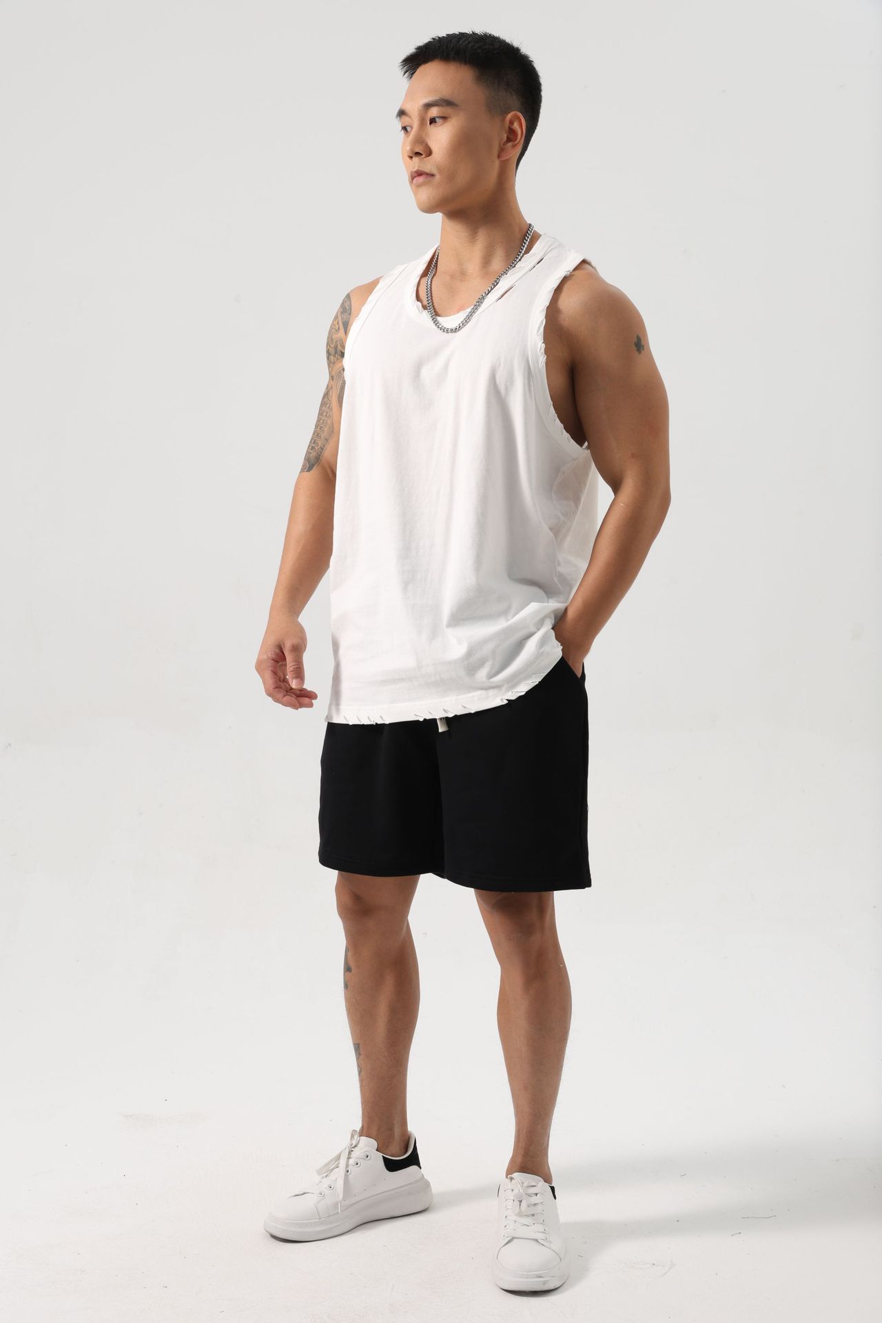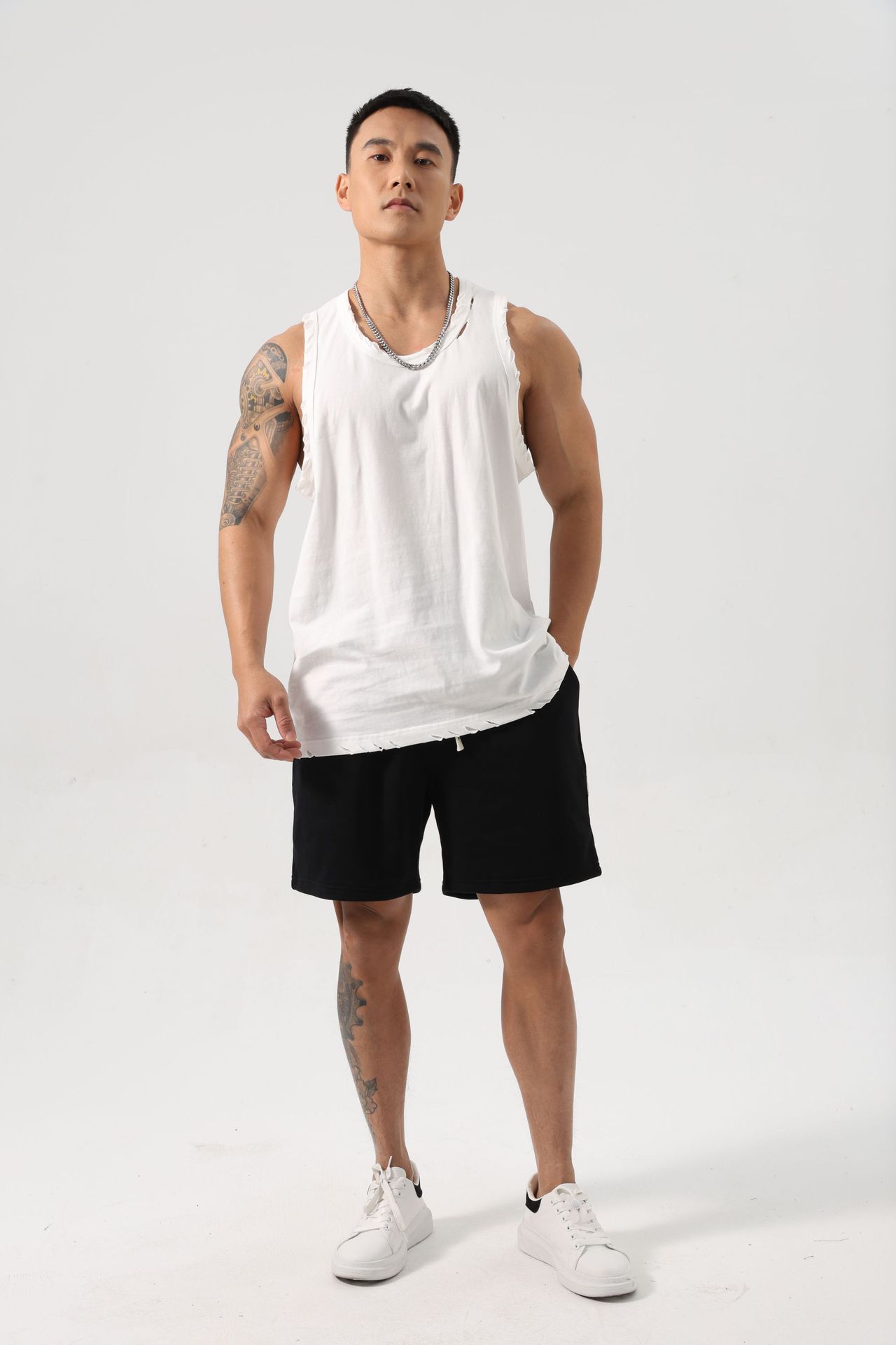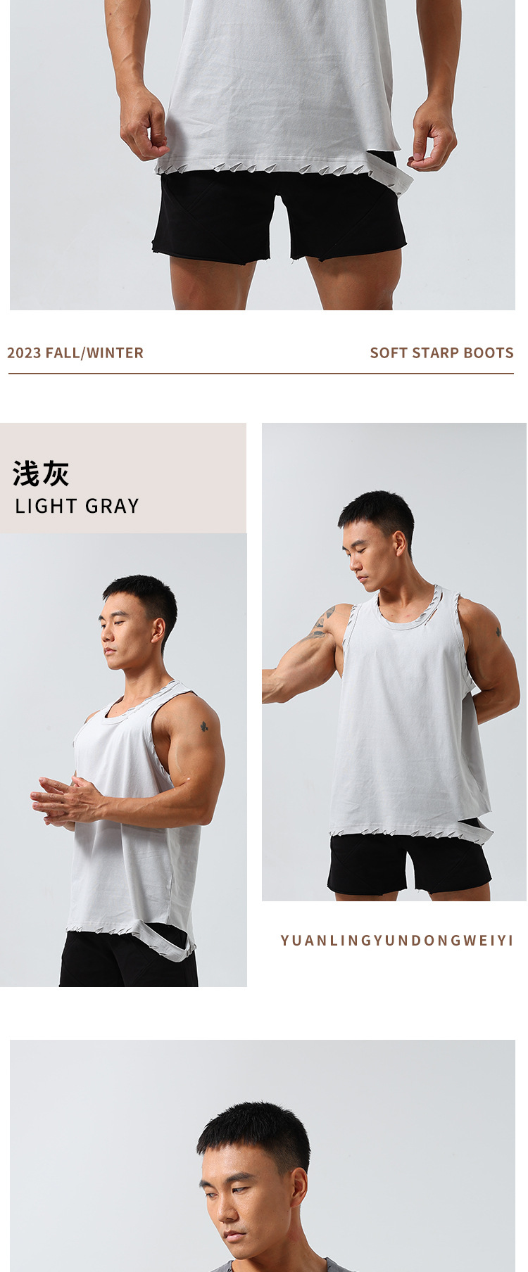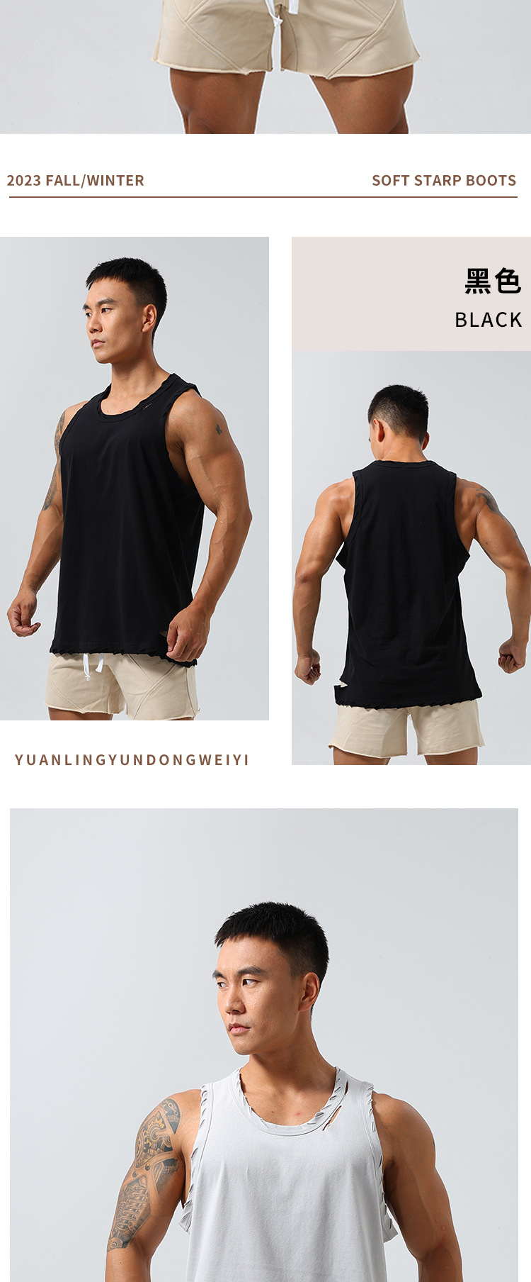 남성 스포츠 속건 탄성 조끼 민소매 농구 찢어진 느슨한 여름 야외 달리기 레저 피트니스 트렌디 브랜드스토어 가기