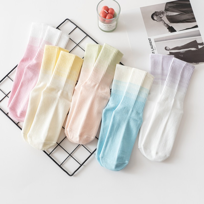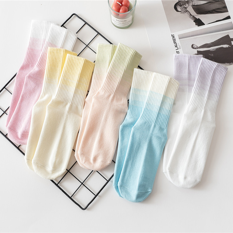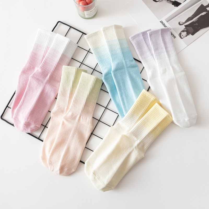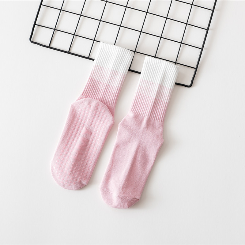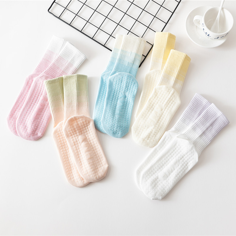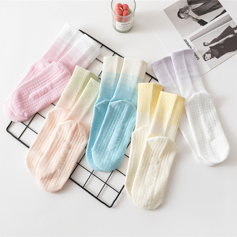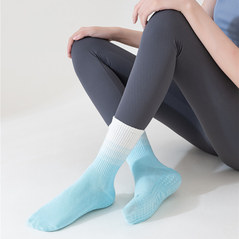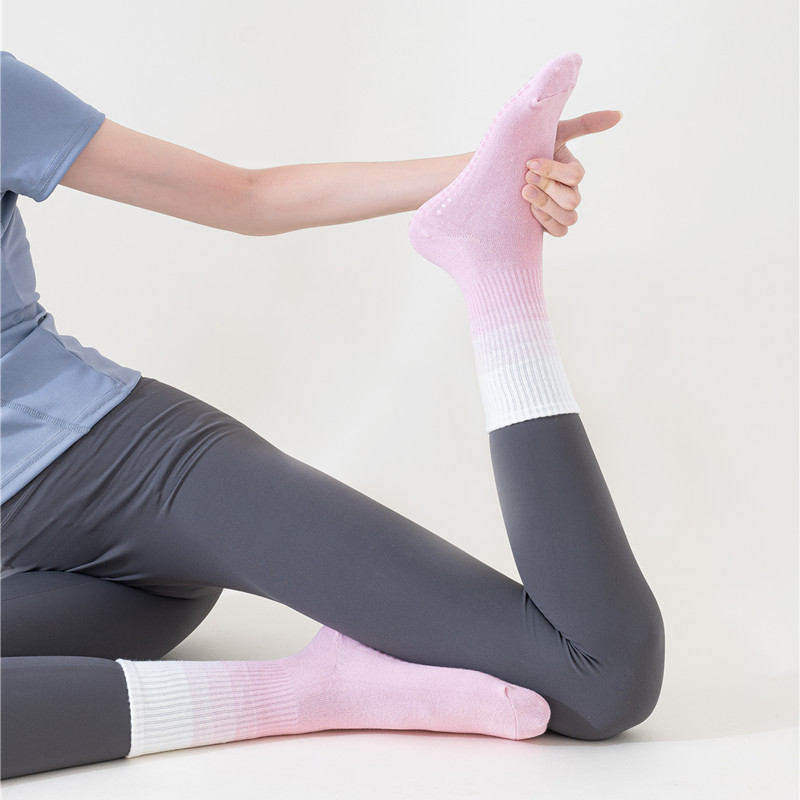요가 양말 여성용 중간 길이 양말 개별 포장 그라데이션 색상 실내 피트니스 필라테스 여성용 긴 양말 스포츠 면 양말스토어 가기