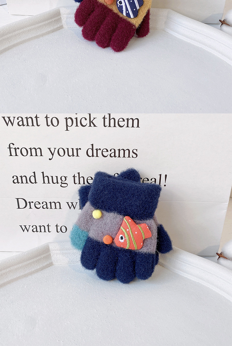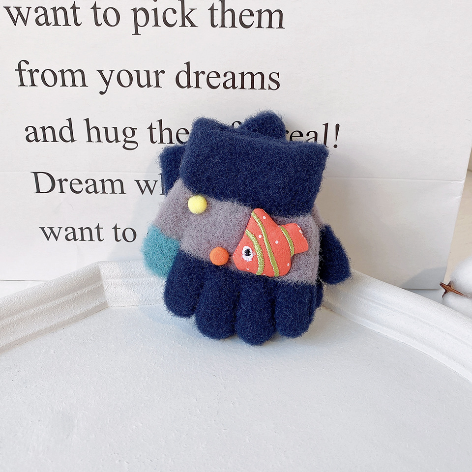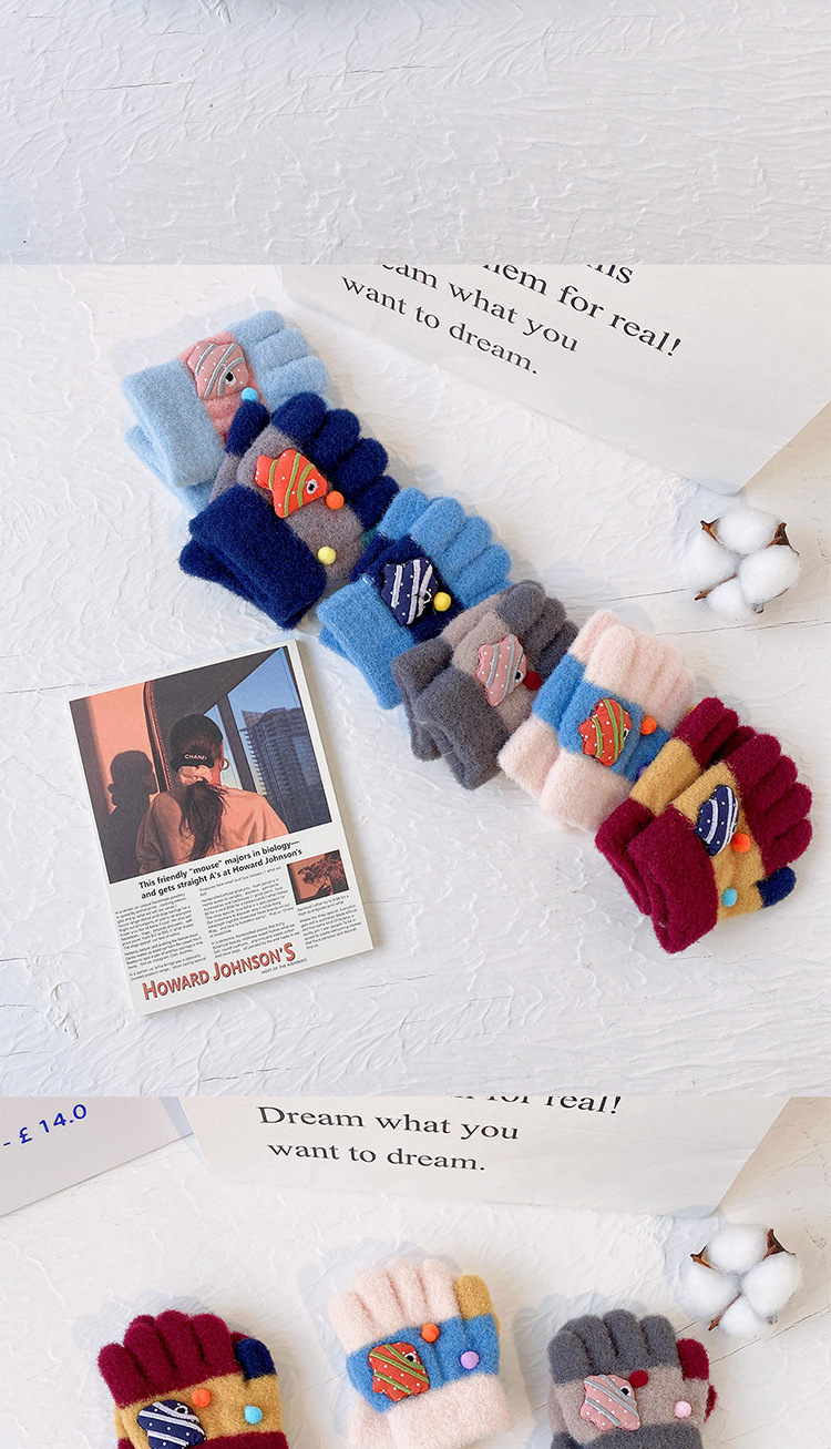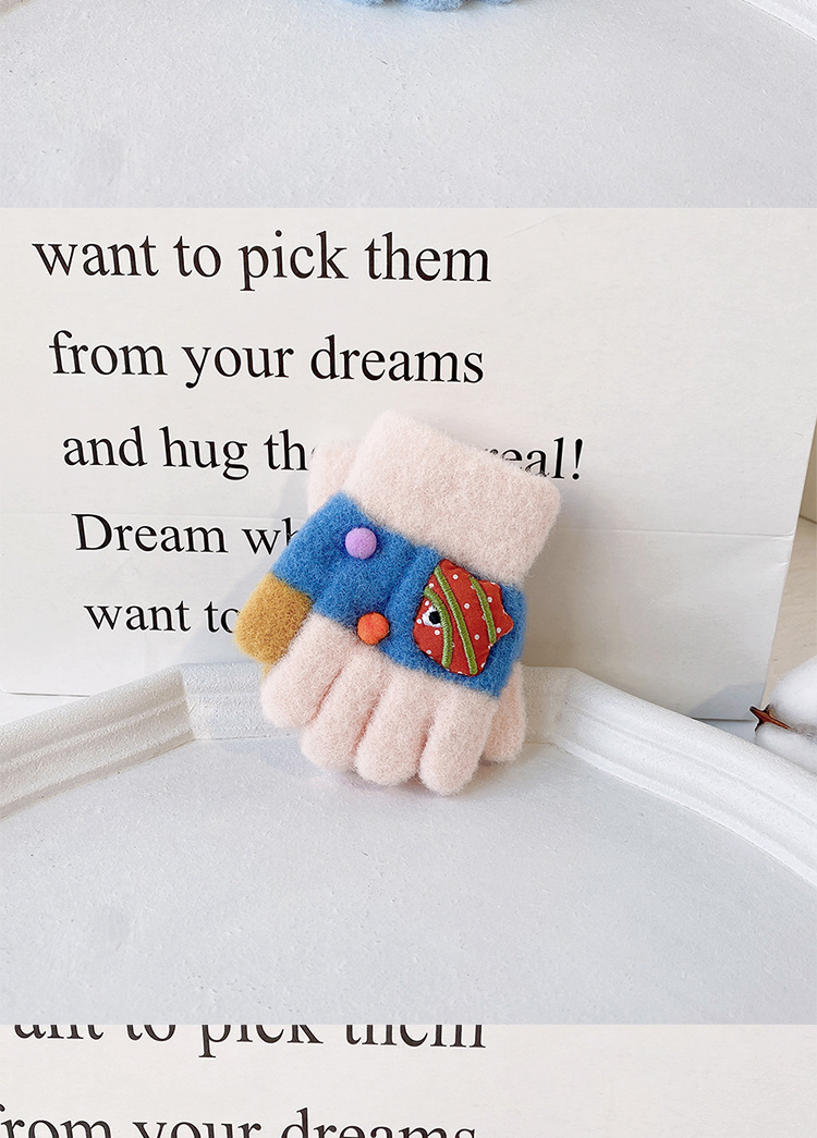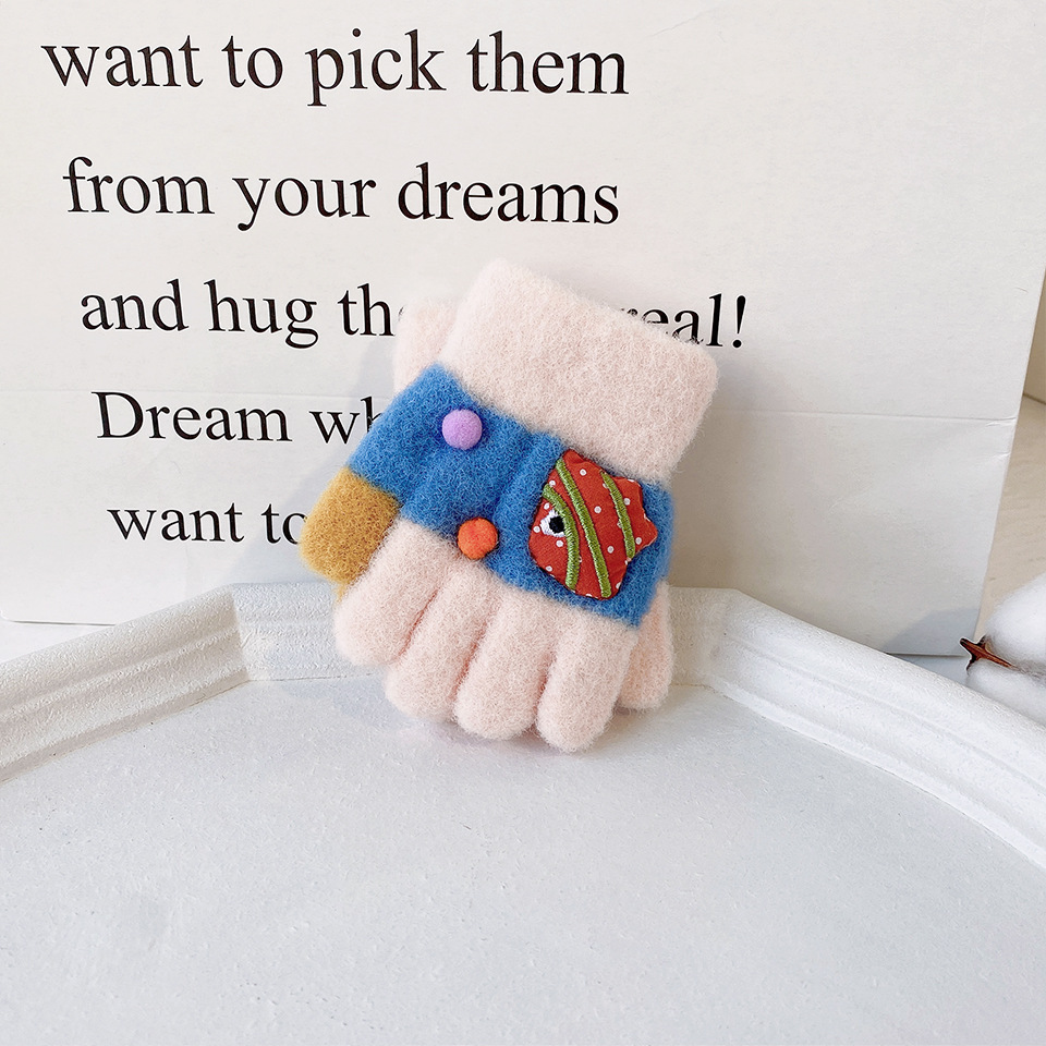 새로운 한국 스타일 귀여운 금붕어 어린이 따뜻한 장갑 아기 소년과 소녀를위한 겨울 방한 두꺼운 쓰기 봉제 다섯 손가락
