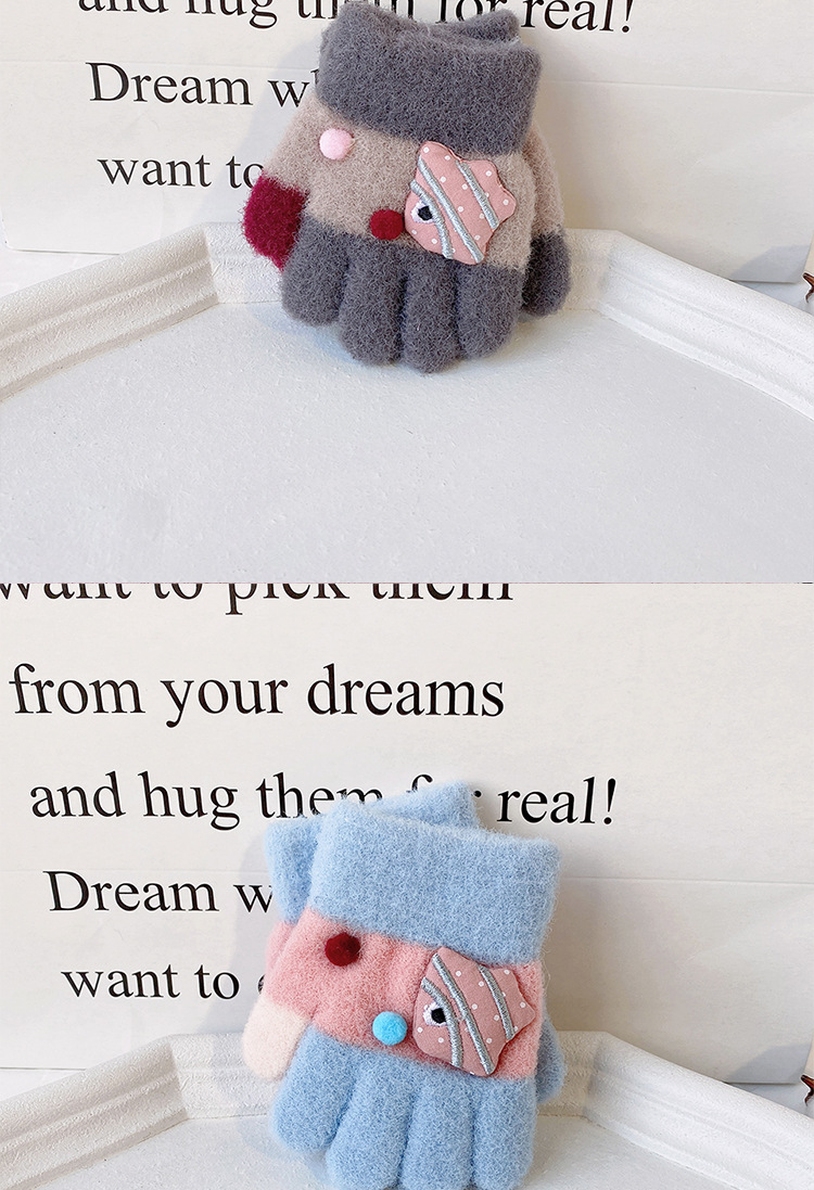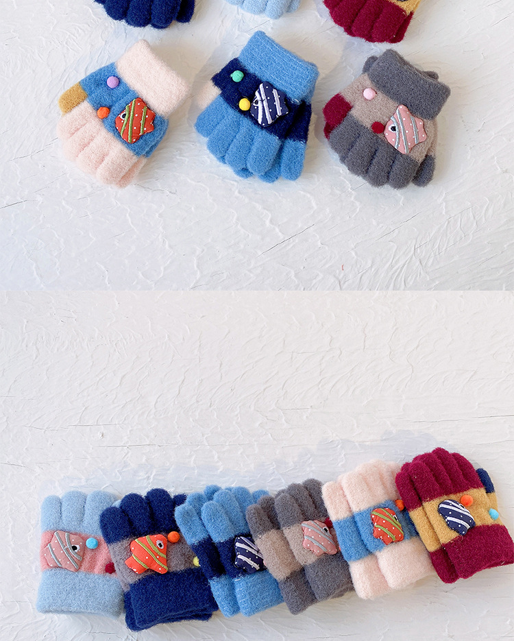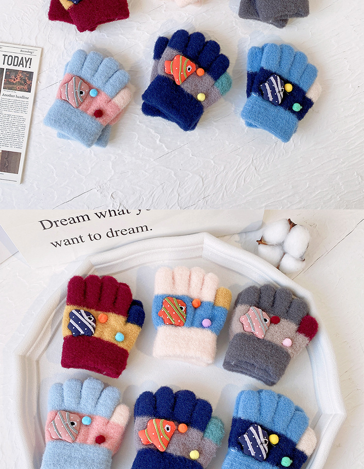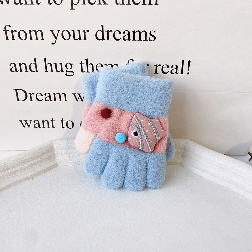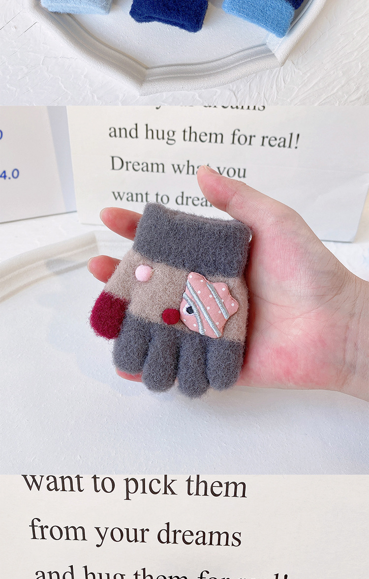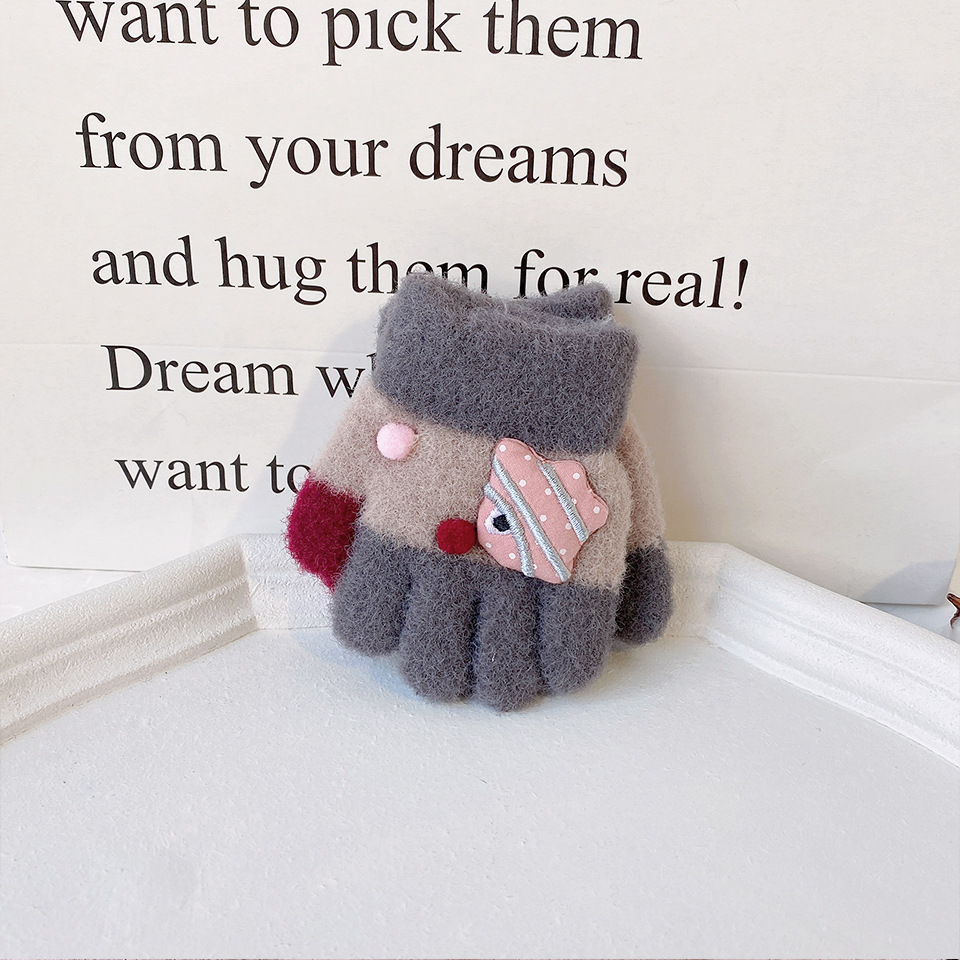 새로운 한국 스타일 귀여운 금붕어 어린이 따뜻한 장갑 아기 소년과 소녀를위한 겨울 방한 두꺼운 쓰기 봉제 다섯 손가락
