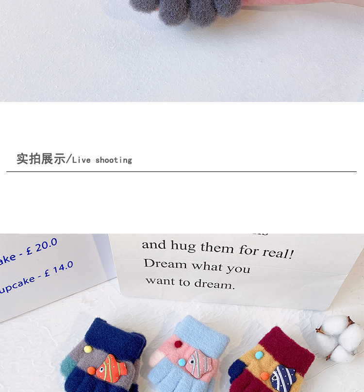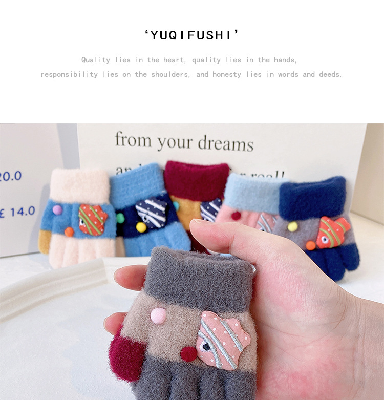 새로운 한국 스타일 귀여운 금붕어 어린이 따뜻한 장갑 아기 소년과 소녀를위한 겨울 방한 두꺼운 쓰기 봉제 다섯 손가락스토어 가기