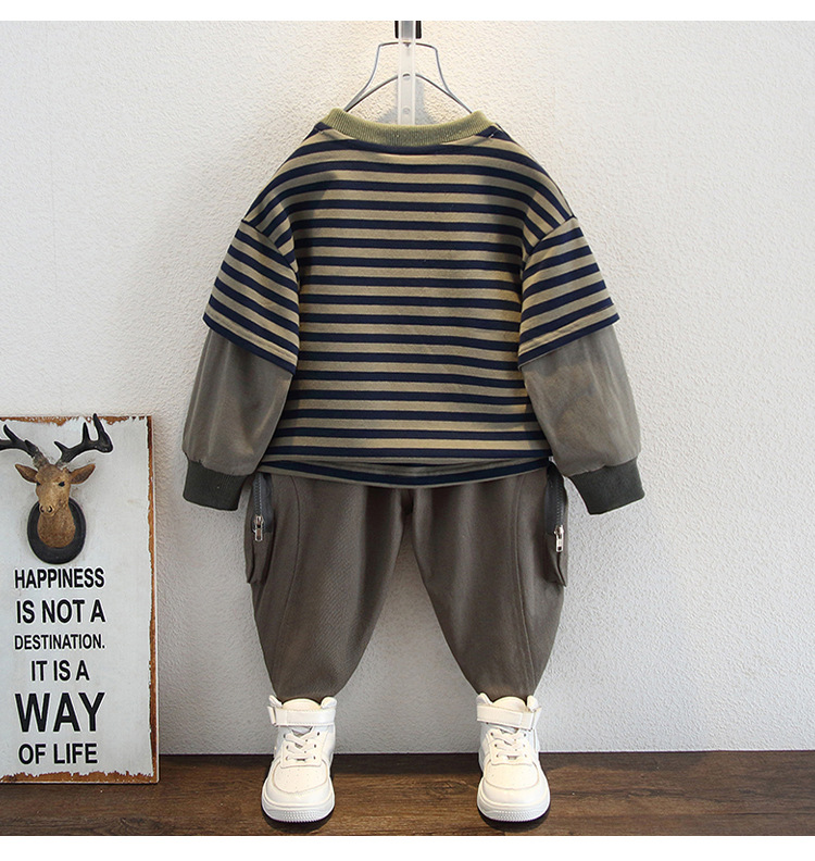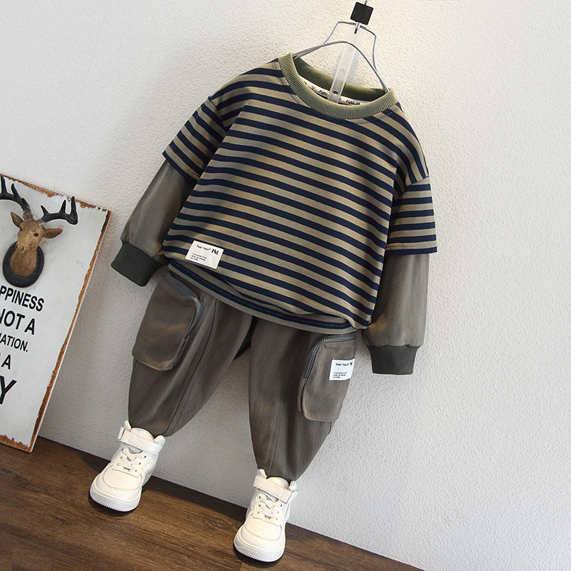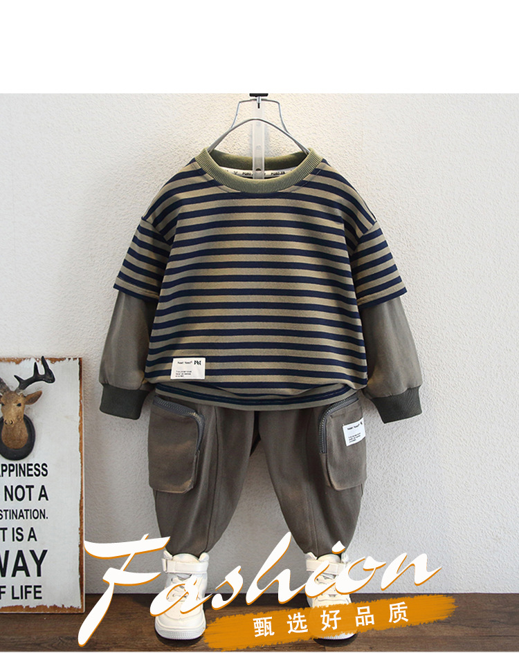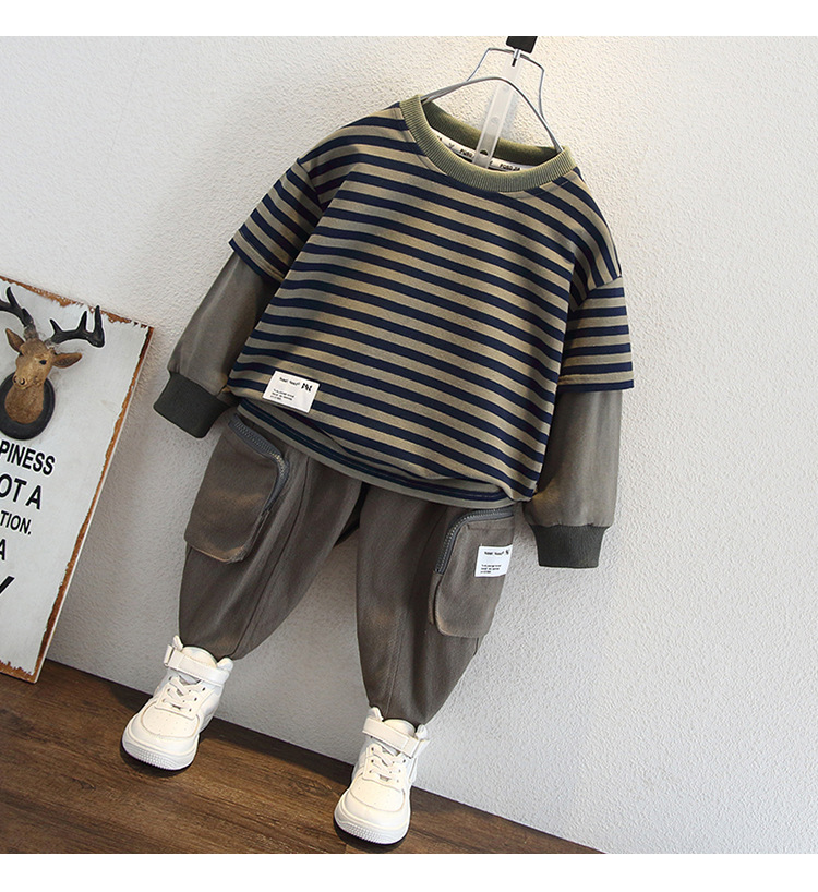 아동복 소년 가을 옷 세트 2023 새로운 아기 온라인 연예인 거리 옷 트렌디 소년 잘생긴 옷 투피스 세트