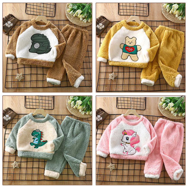 가을과 겨울 어린이 기모 두꺼운 잠옷 아기 소년과 소녀 팔레 이넬 따뜻한 가정 옷 어린이 따뜻한 벨벳 잠옷스토어 가기