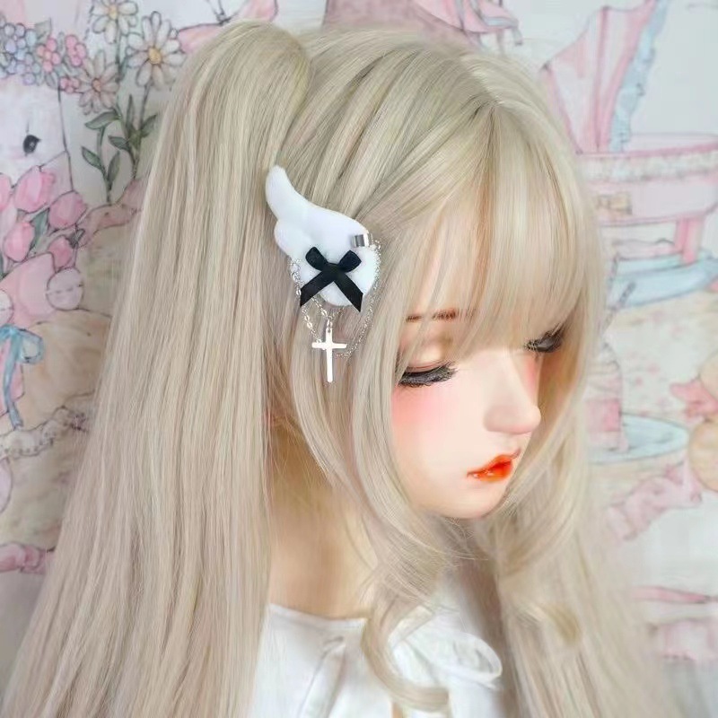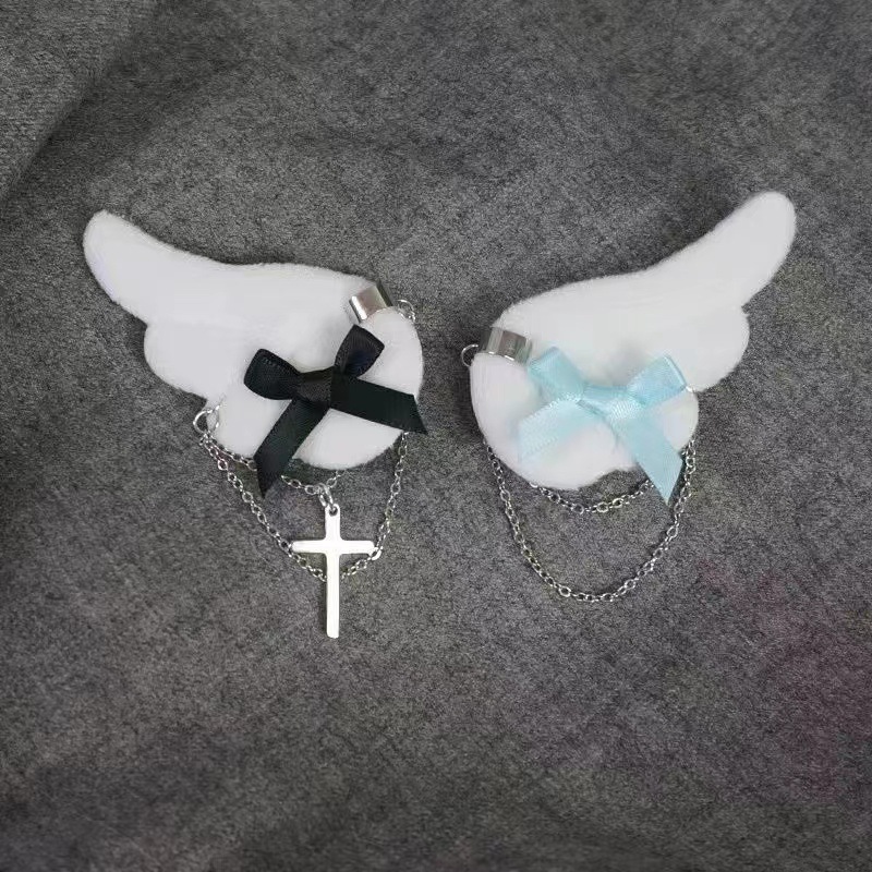 할로윈 어두운 날개 활 머리핀 체인 십자가 귀여운 가리 모자 하위 문화 클립