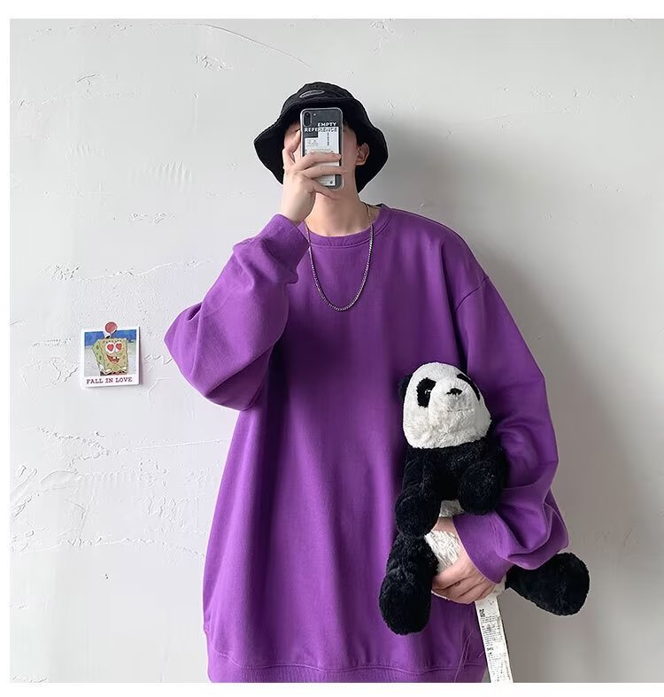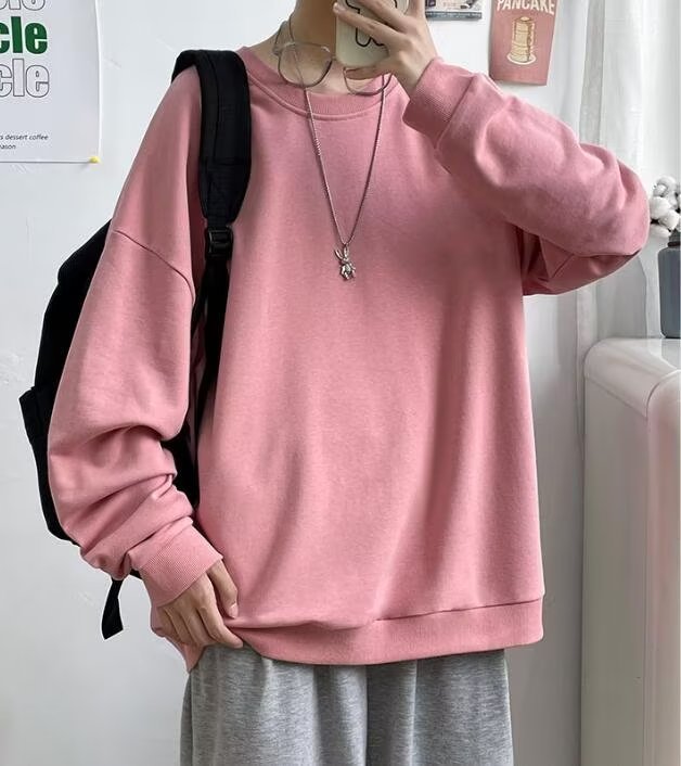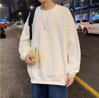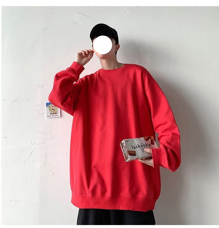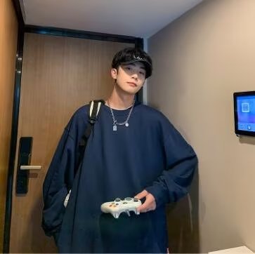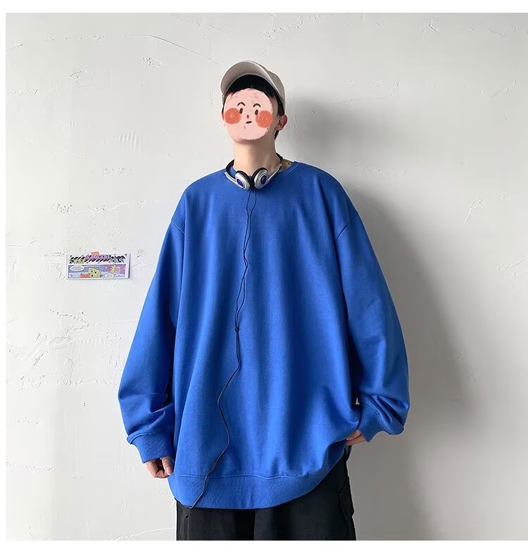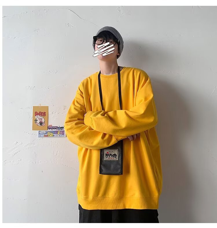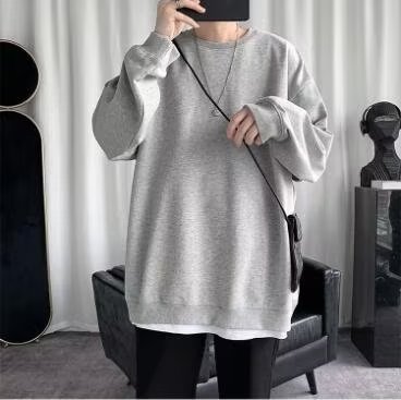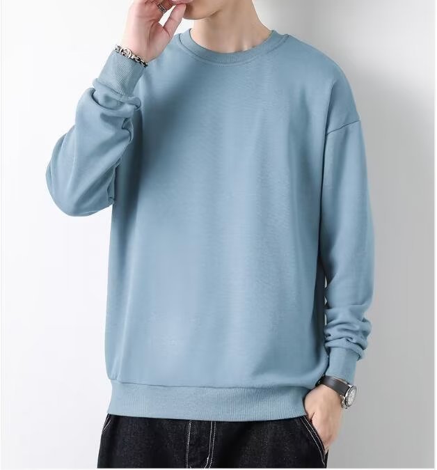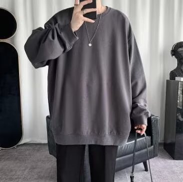 얇은 잘 생긴 단색 스웨터 새로운 남자의 스웨터 칼라없는 캐주얼 봄과 가을 재킷 느슨한 긴 소매 티셔츠스토어 가기