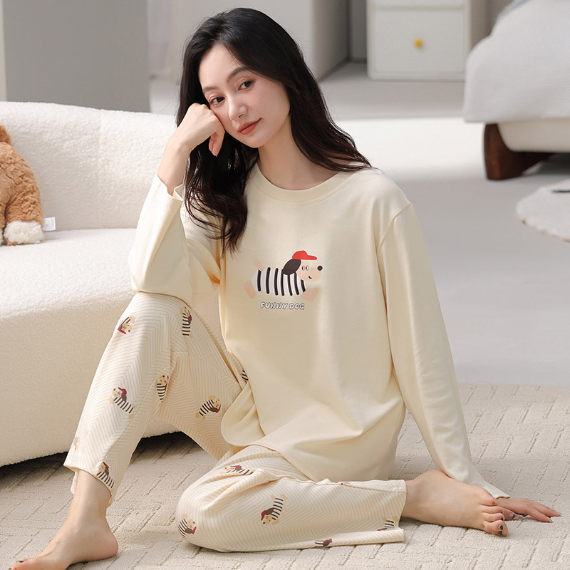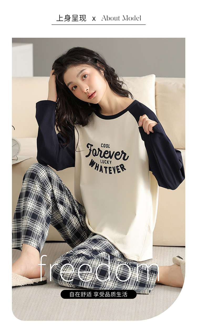 잠옷 여성 봄 · 가을 면화 긴소매 세트 한국 레저 여성의 가을 큰 사이즈는 집 옷 도매 밖에서 입을 수 있습니다스토어 가기
