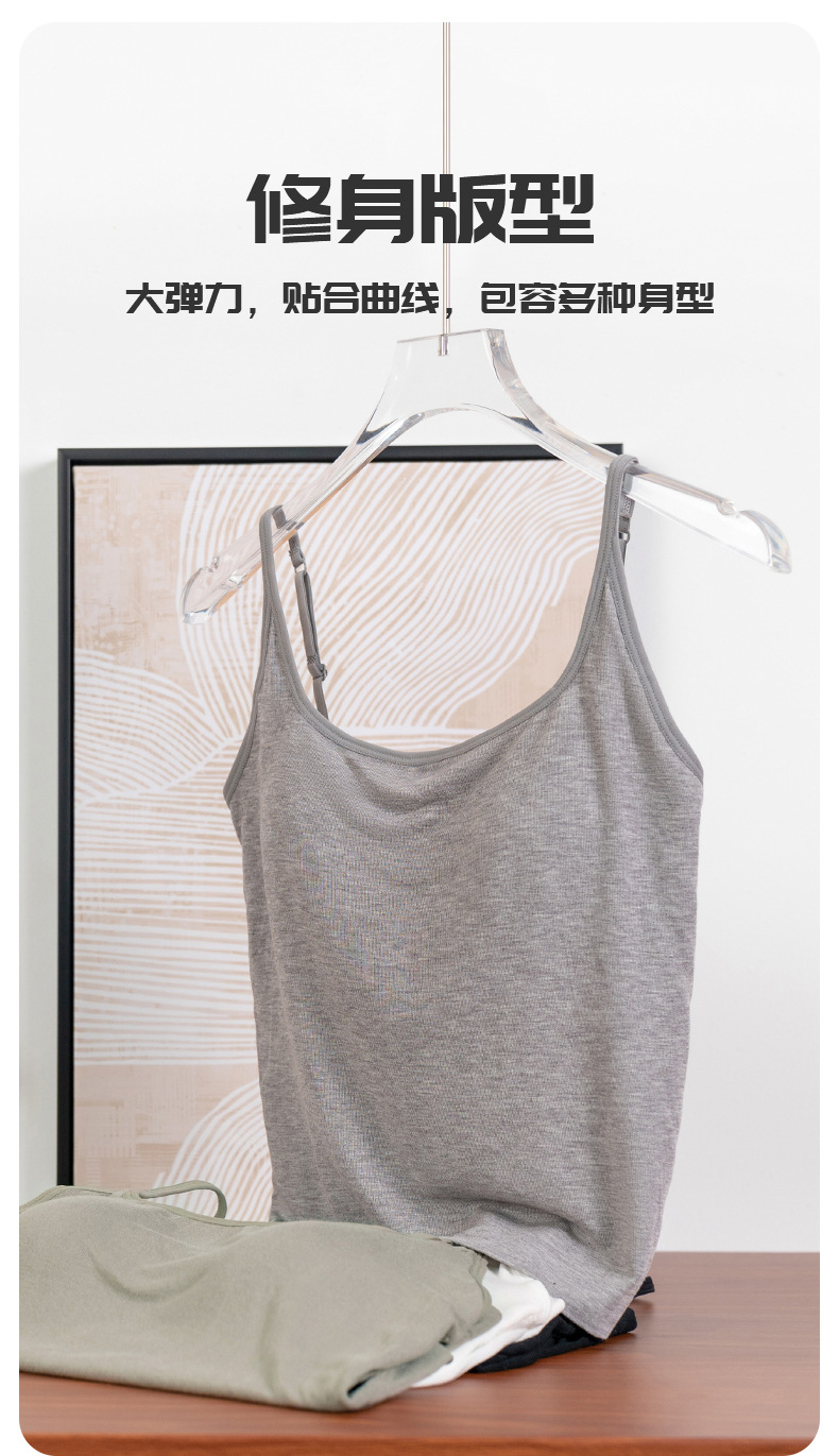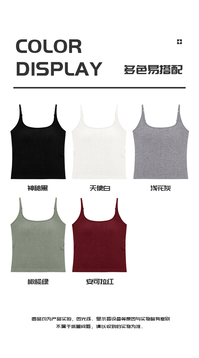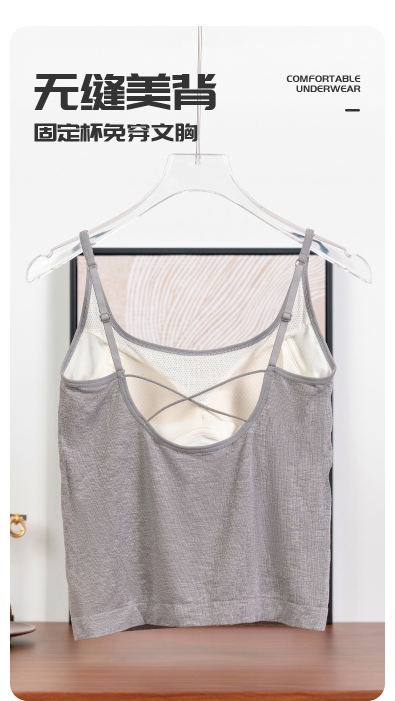 34060 새로운 올인원 컵 조끼 가슴 패드 모달 대형 U 백 탄성 겉옷 내부 단색 여성용 슬링