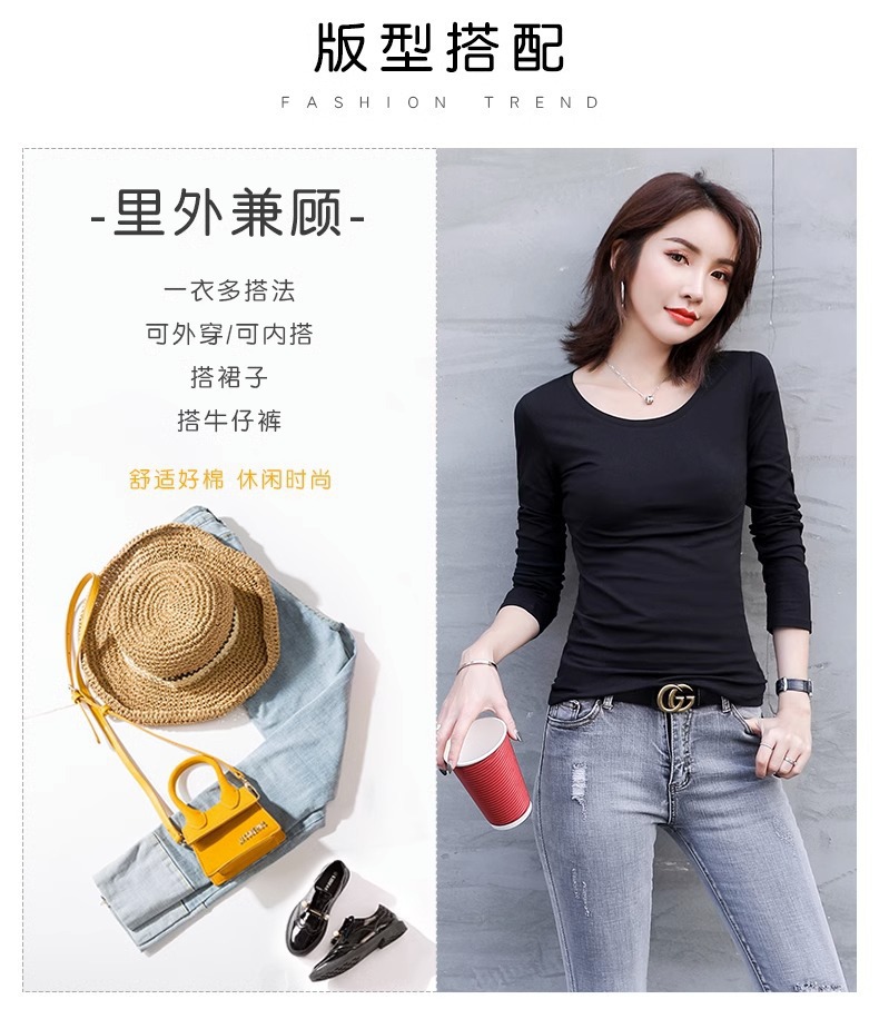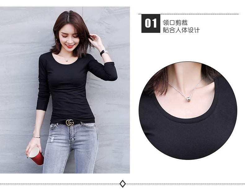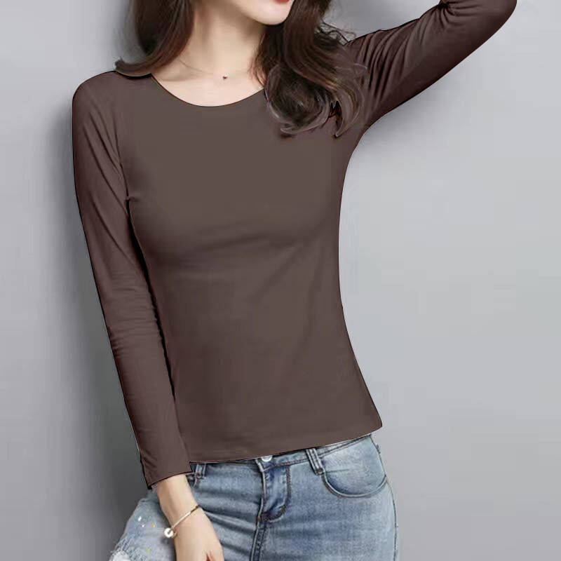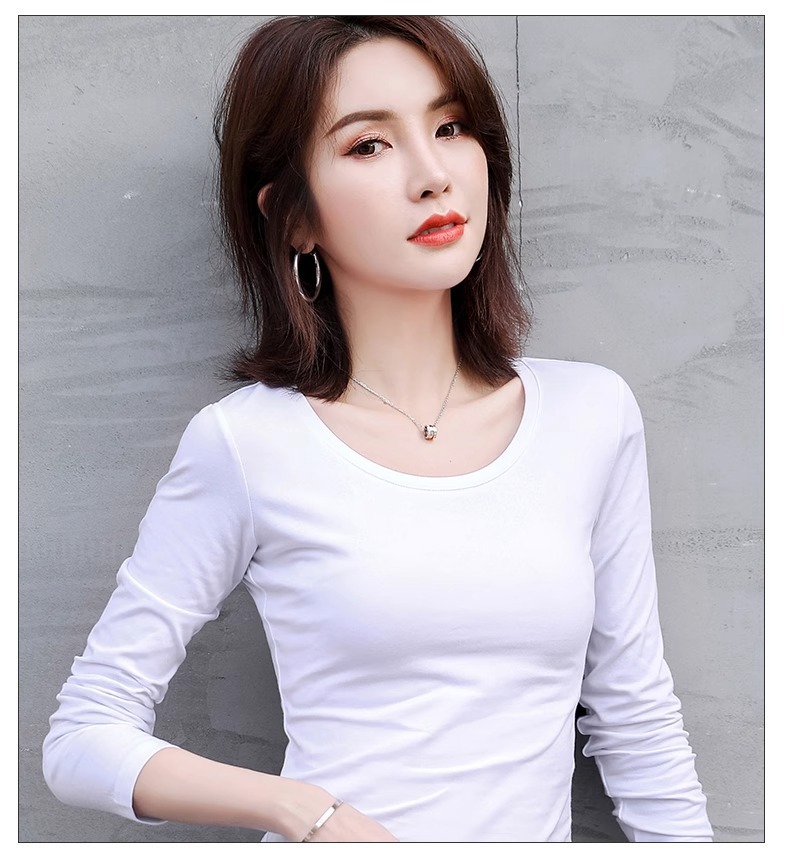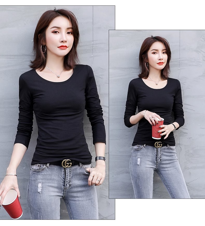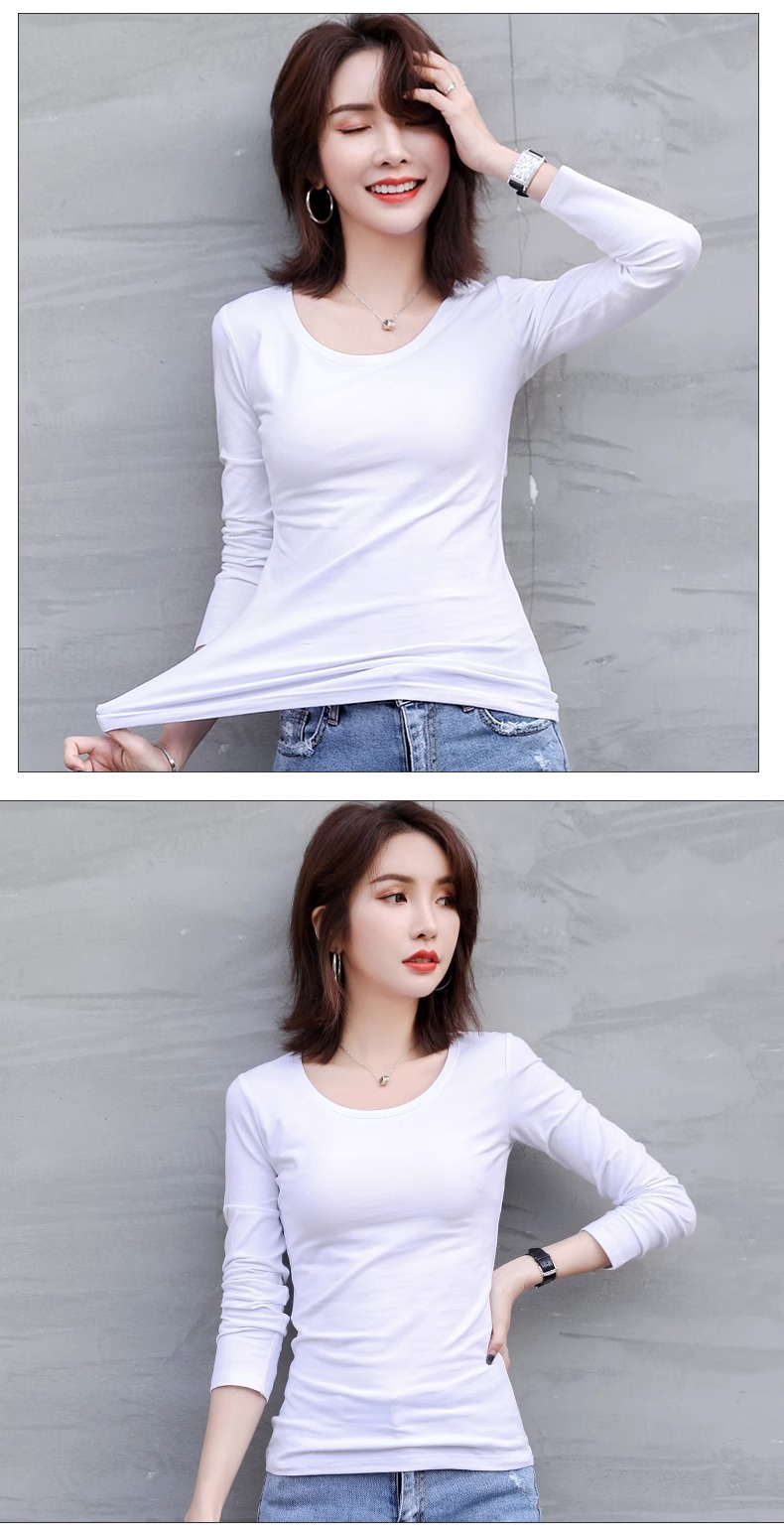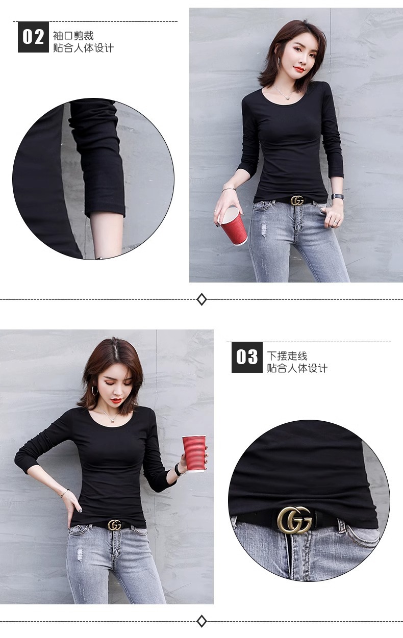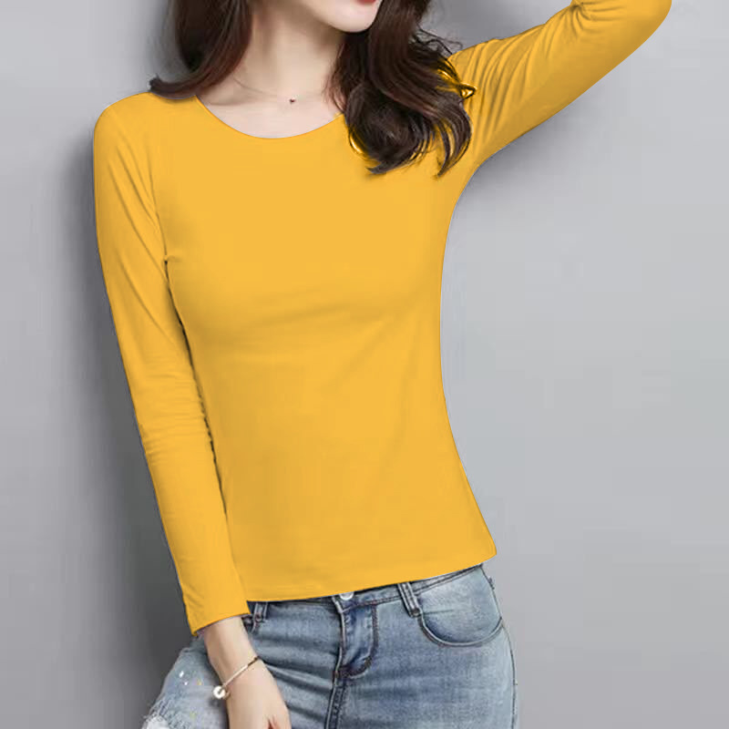 공장 도매 바닥 셔츠 여자의 봄과 가을 원피스 슬림 한 긴 소매 티셔츠 가을 옷 조커 단색 탑 라운드 넥 여성스토어 가기