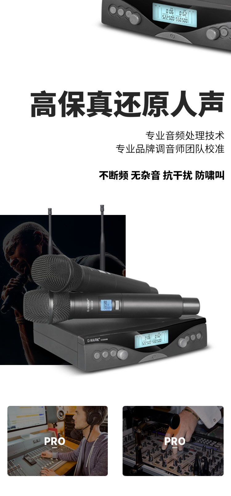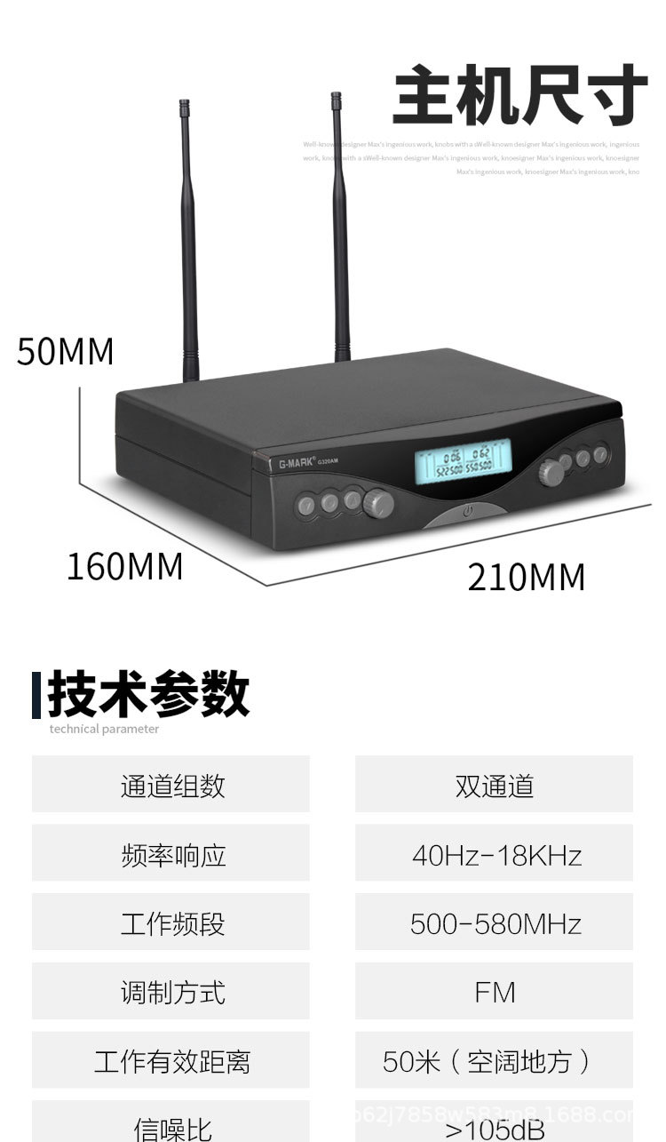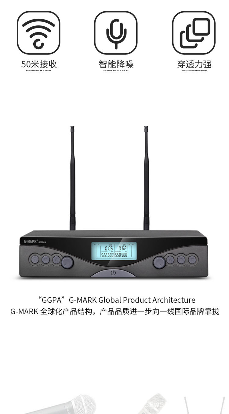G-MARK 무선 마이크 1대2 무대 노래방 라이브 방송 KTV 전문 마이크 수출 인기상품 G320AM