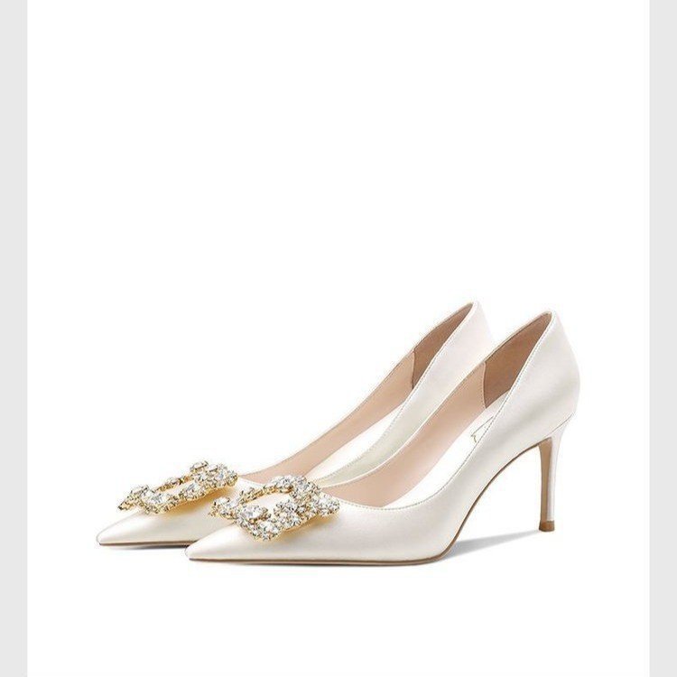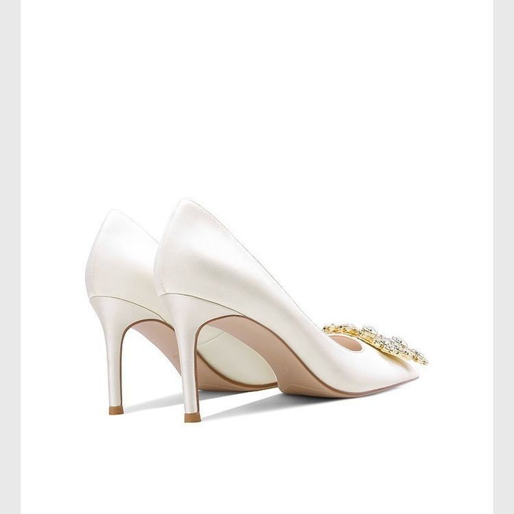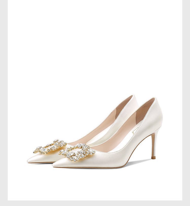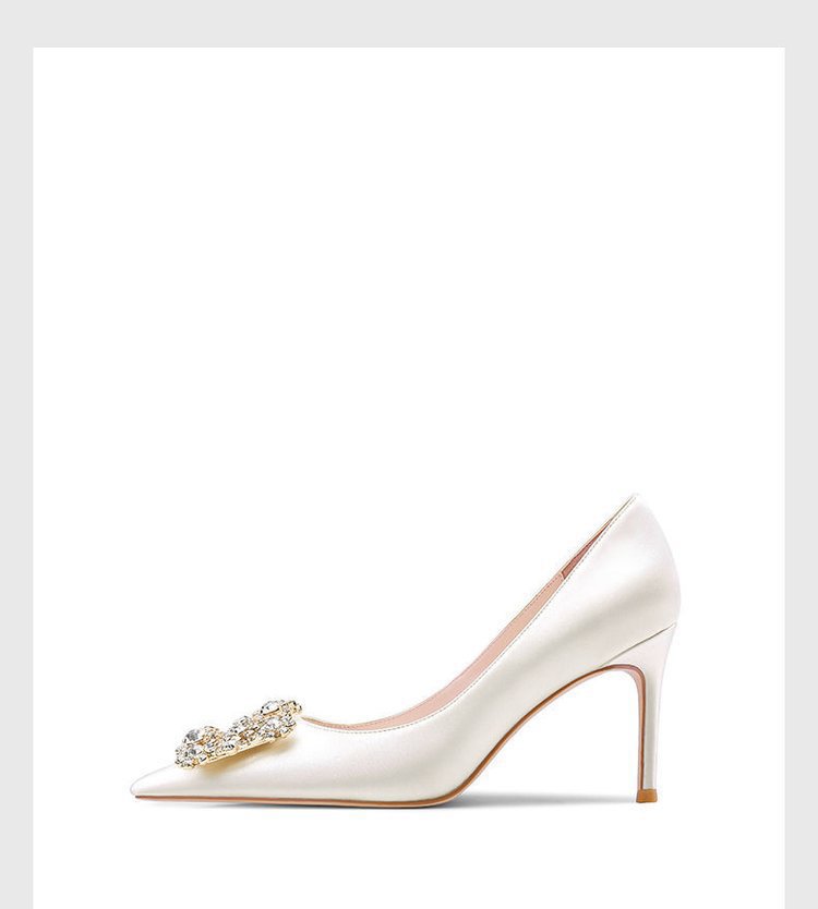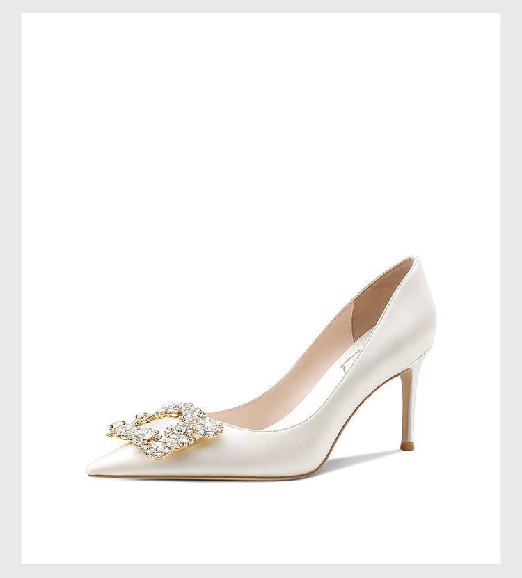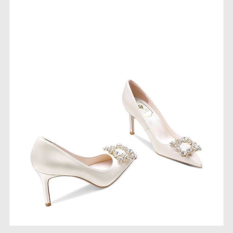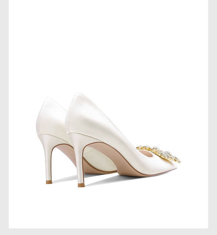 화이트 하이힐 여성 2022 새로운 뾰족한 스틸레토 힐 웨딩 슈즈 웨딩 슈즈 스퀘어 버클 원피스 연회 신부 신발 도매스토어 가기