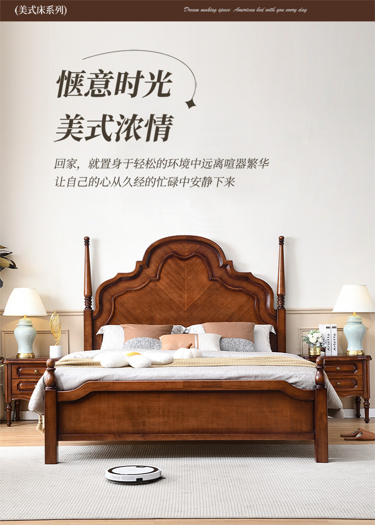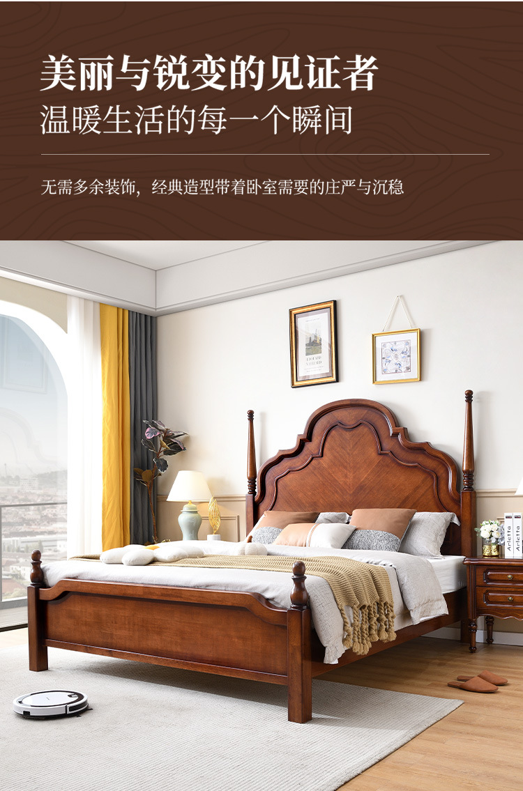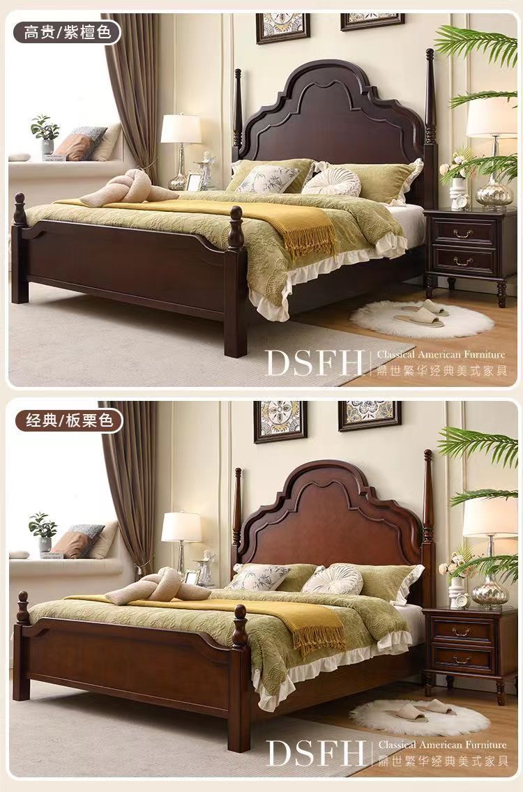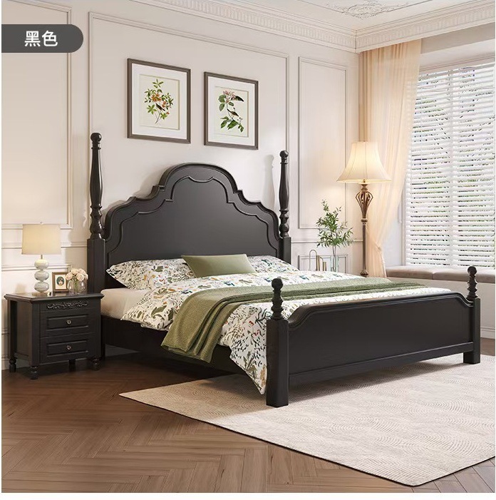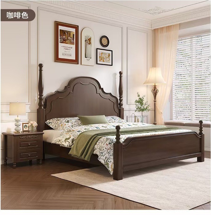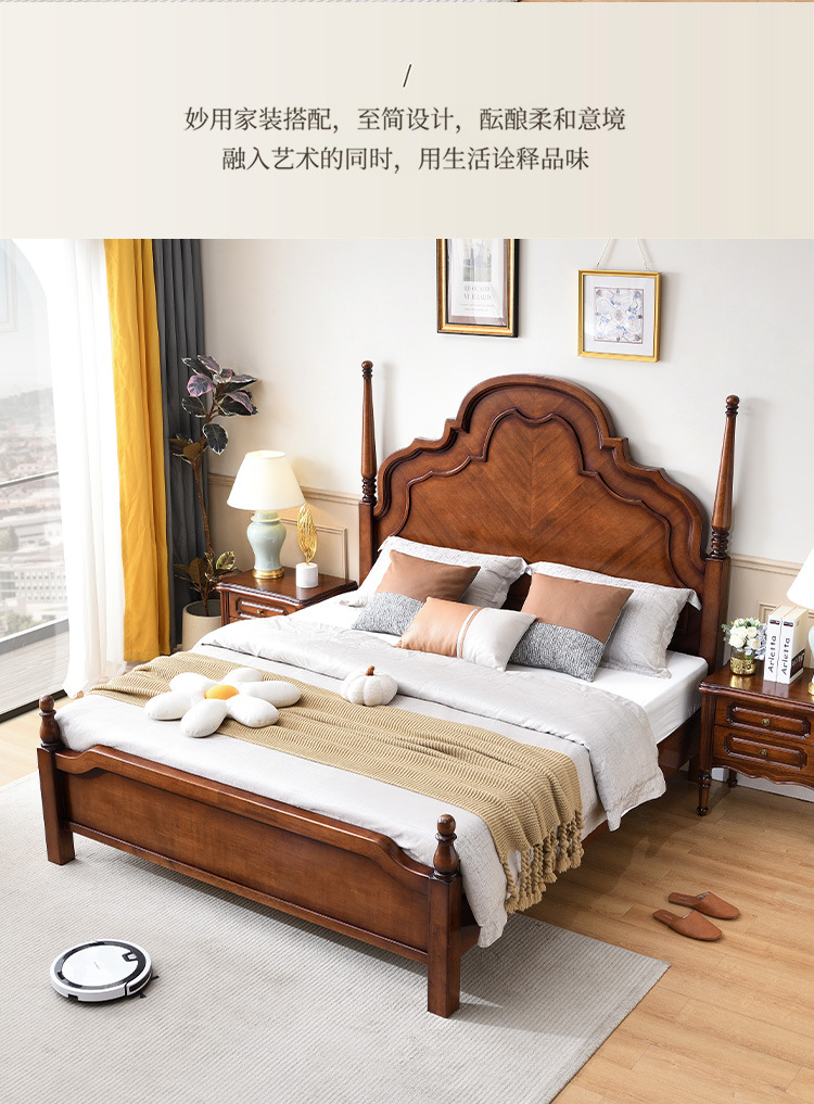 미국 단단한 나무 침대 1.8 m 더블 침대 마스터 침실 웨딩 침대 조각 복고풍 골동품 아나 침대 로마 기둥 보관 침대스토어 가기