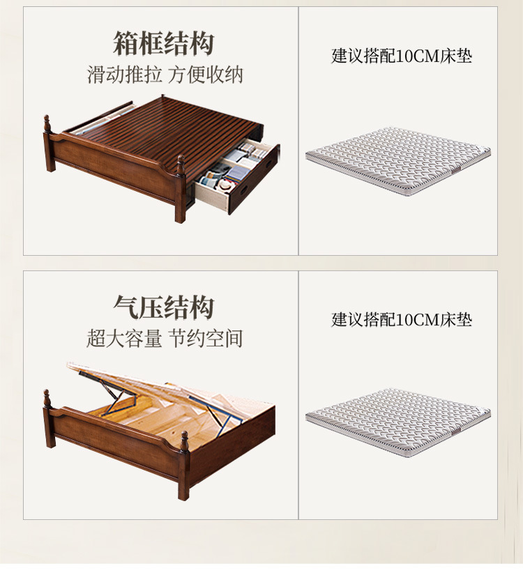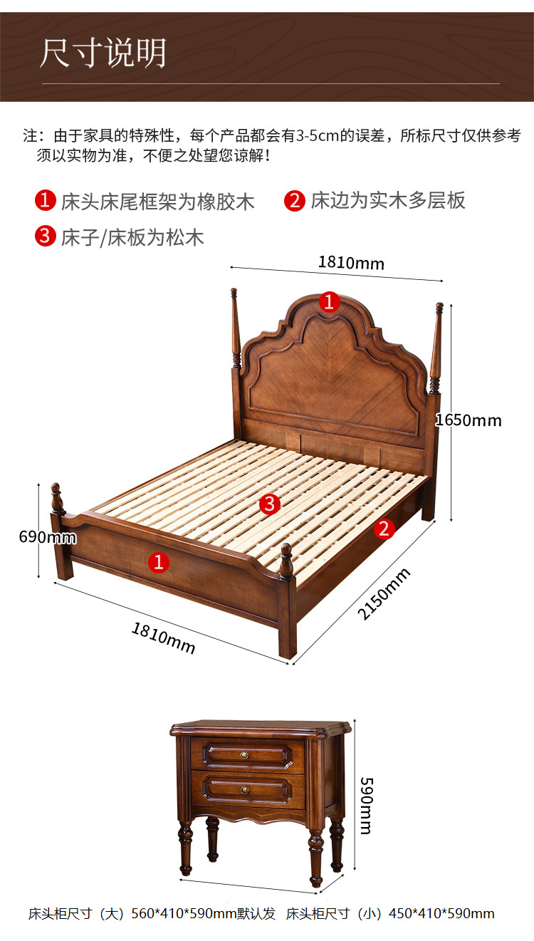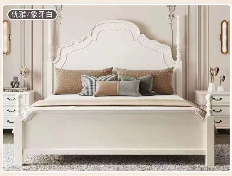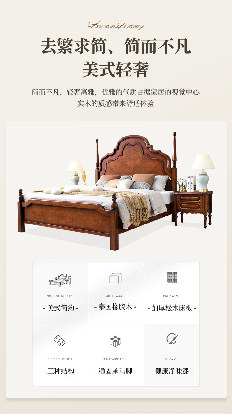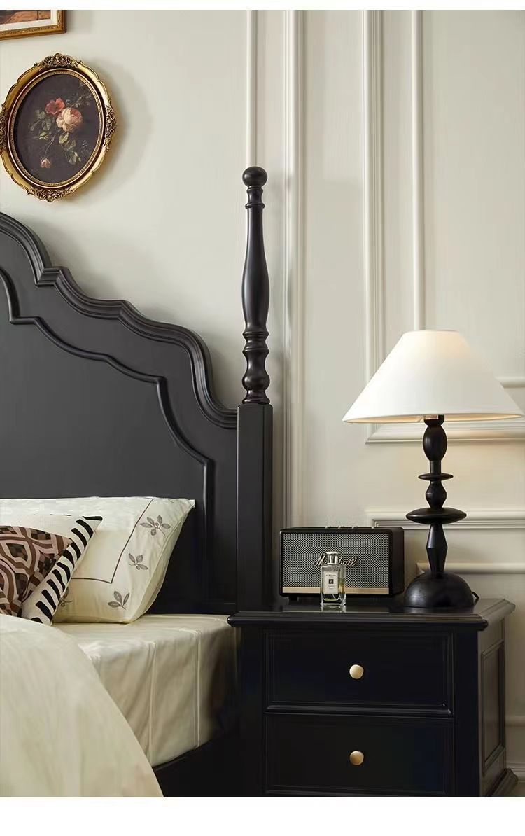 미국 단단한 나무 침대 1.8 m 더블 침대 마스터 침실 웨딩 침대 조각 복고풍 골동품 아나 침대 로마 기둥 보관 침대스토어 가기