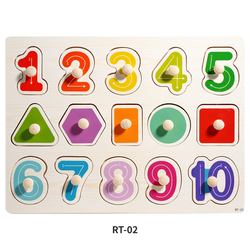 첸카이 나무 몬테소리 조기 교육 손 잡기 보드 퍼즐 빌딩 블록 어린이 디지털 모양 매칭 보드 아기 교육 완구스토어 가기
